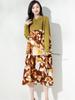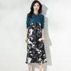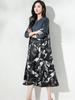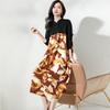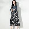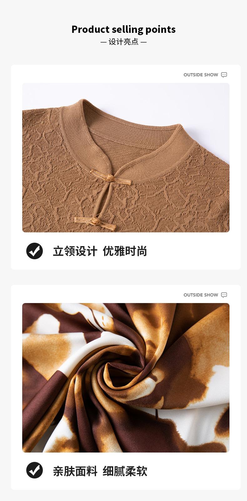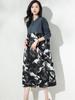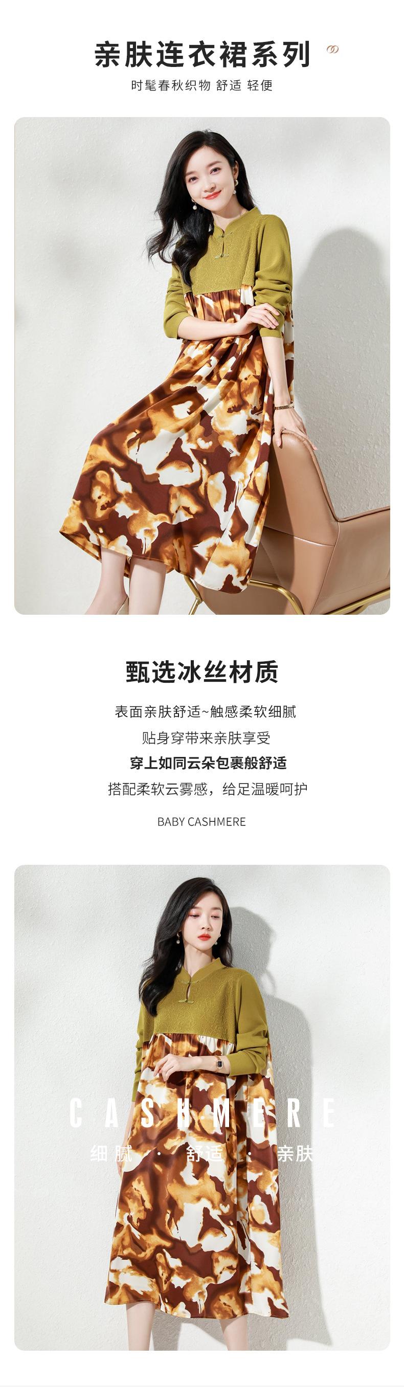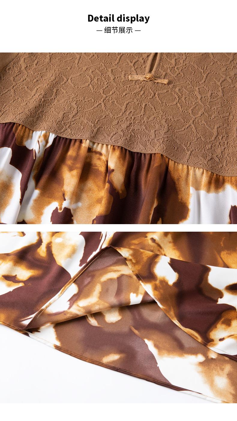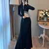Nuevo vestido de manga larga con hebilla de estilo chino, primavera y verano 2024, nuevo diseño de color contrastante, falda de punto con costura de longitud media