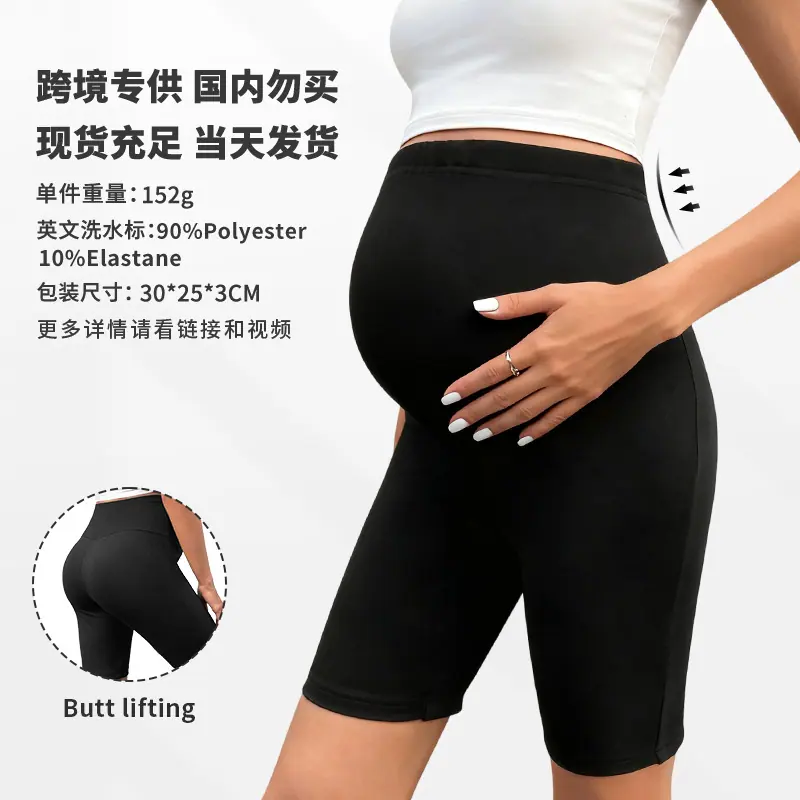 Europeo y Americano Transfronterizo Nuevo Maternidad Cinturilla Ajustable Pantalones Cortos Cinco Puntos, Ajustados y Elásticos, Verano 2024 Comercio Exterior Soporte para Vientre de Embarazo