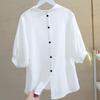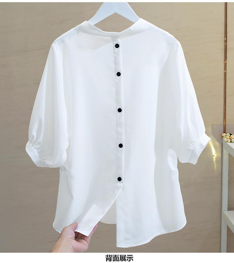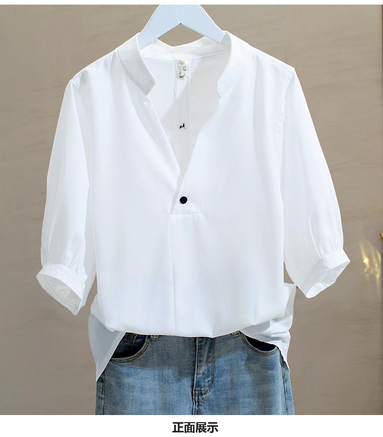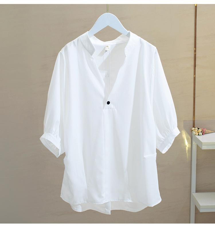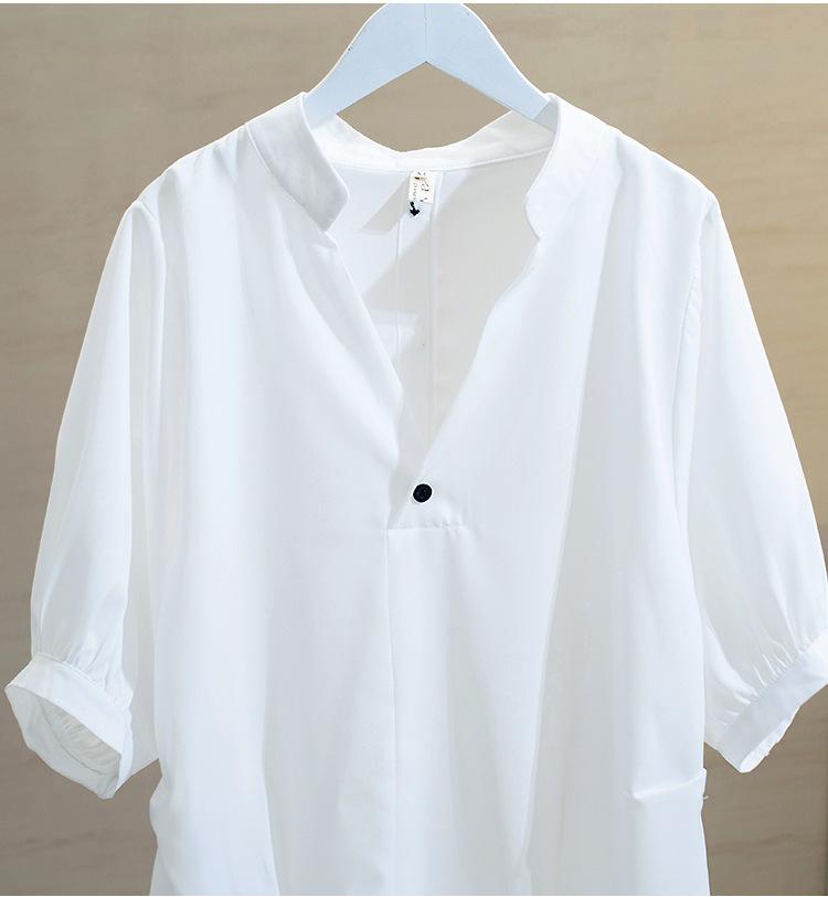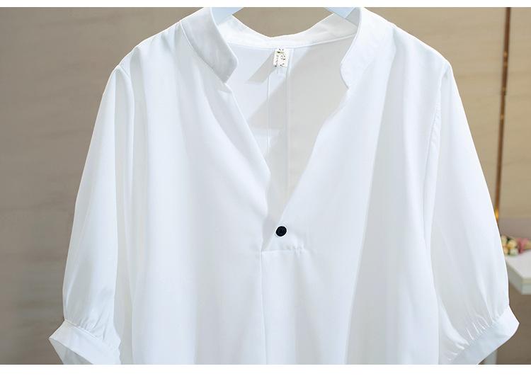 2022 Verano Nuevo Camisa de Chifón para Mujer Diseño Cauteloso Nicho Coreano Suelto Cuello en V Manga Corta