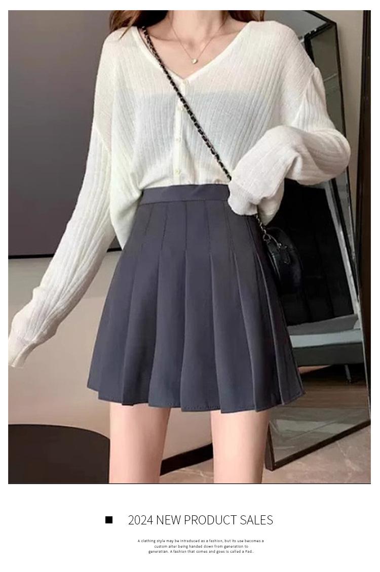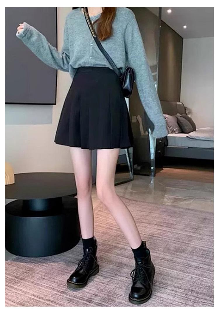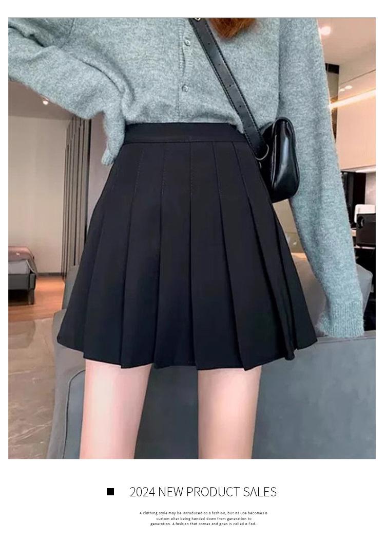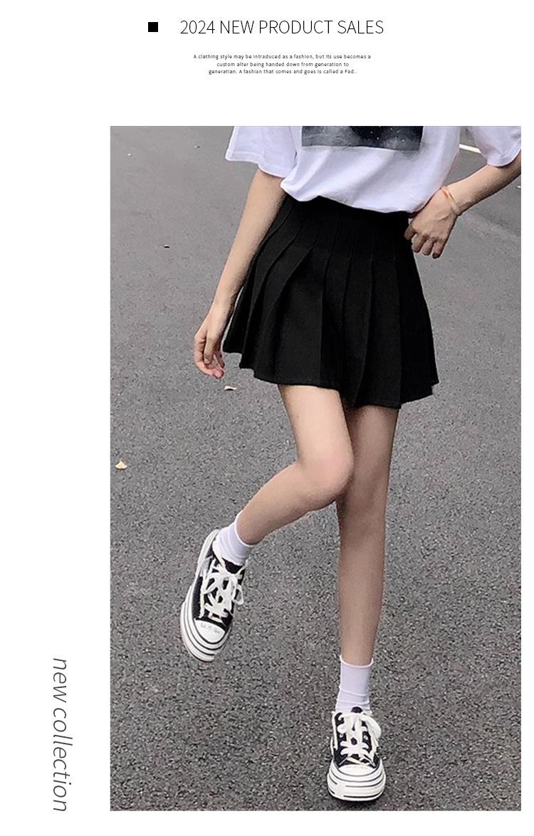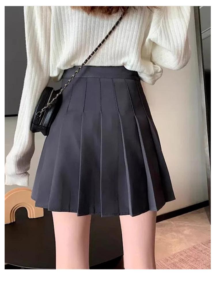 Falda plisada de traje negro para mujer, corta, nueva primavera/verano otoño 2024, estilo preppy, cintura alta, adelgazante, línea A, falda plisada