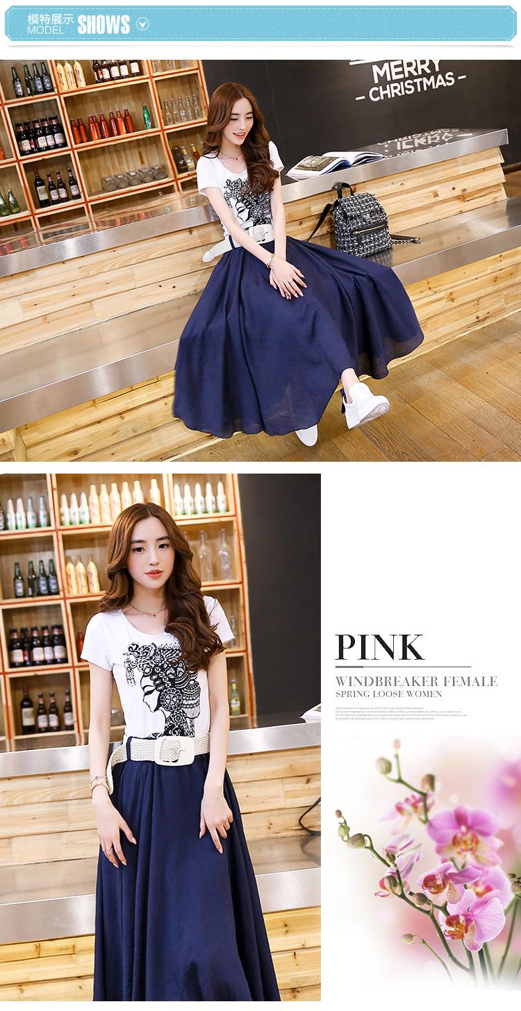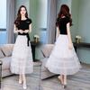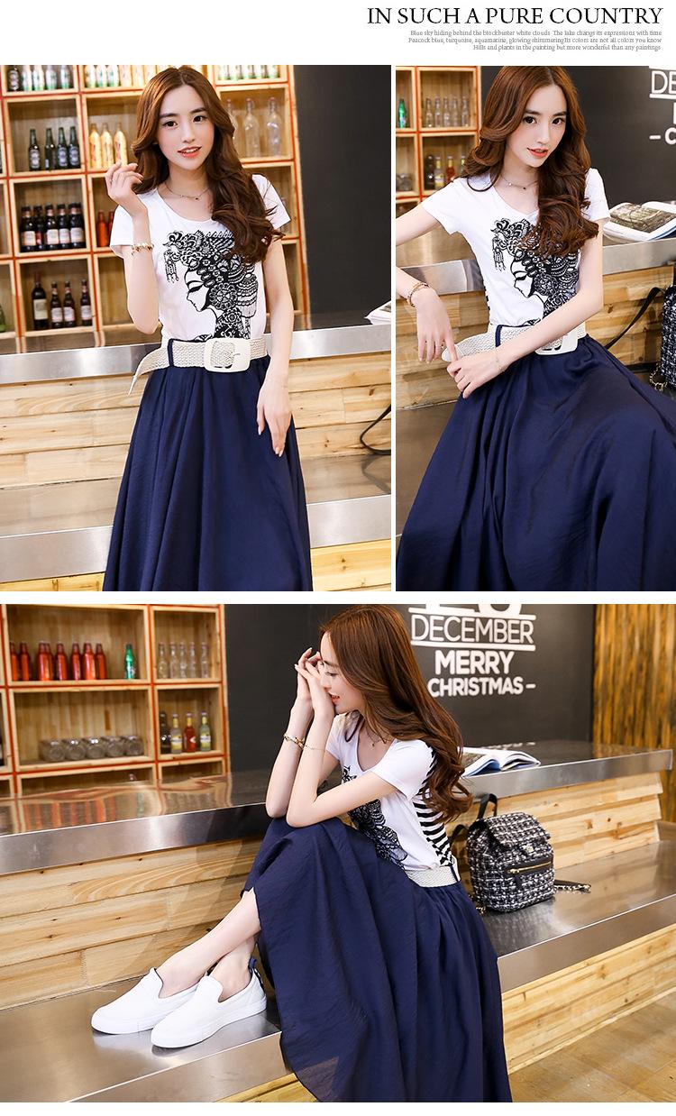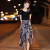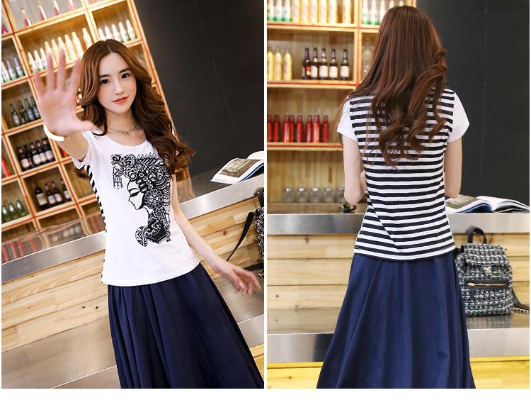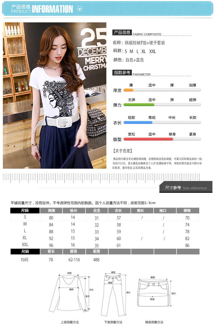 Ropa de Verano Leche de Papaya Nueva Moda Traje Casual Estilo Coreano Ajustado Adelgazante Camiseta Estampada Falda Conjunto de Dos Piezas
