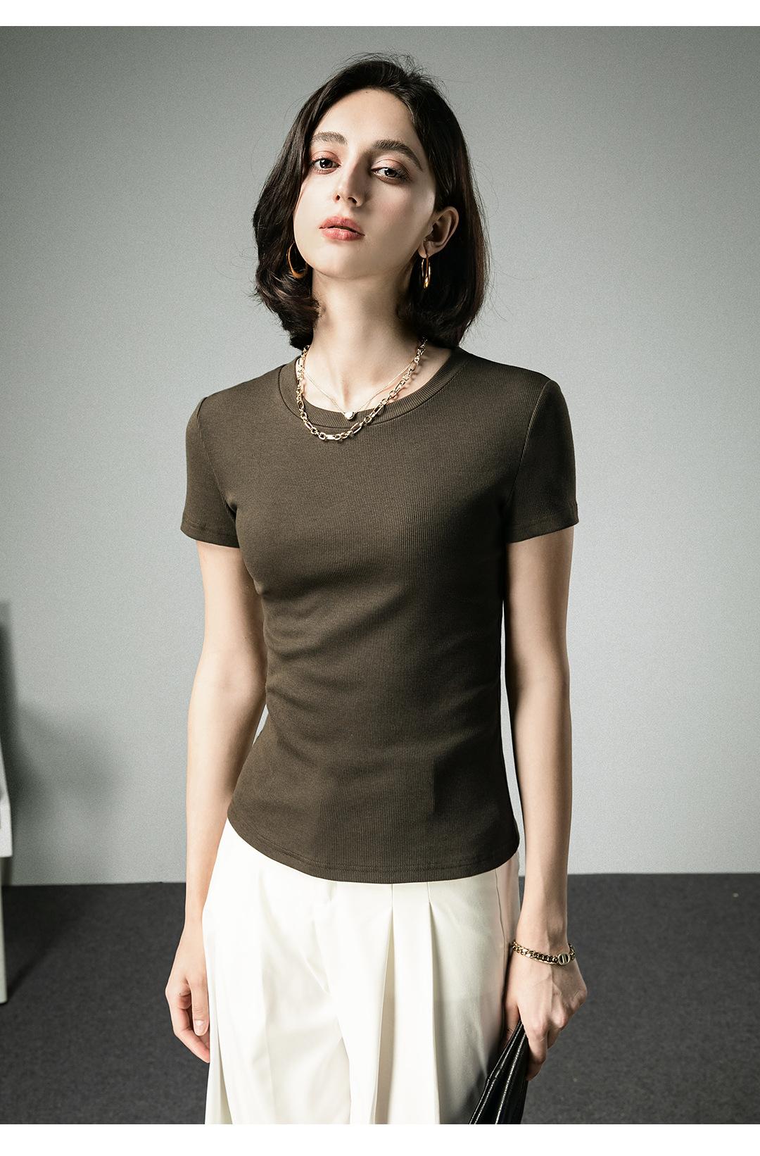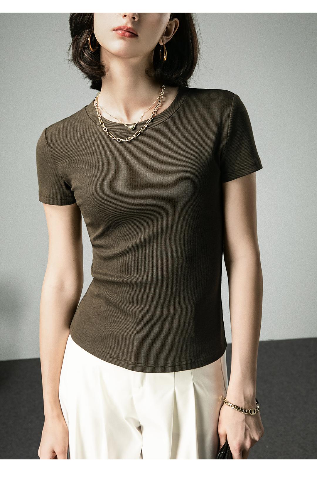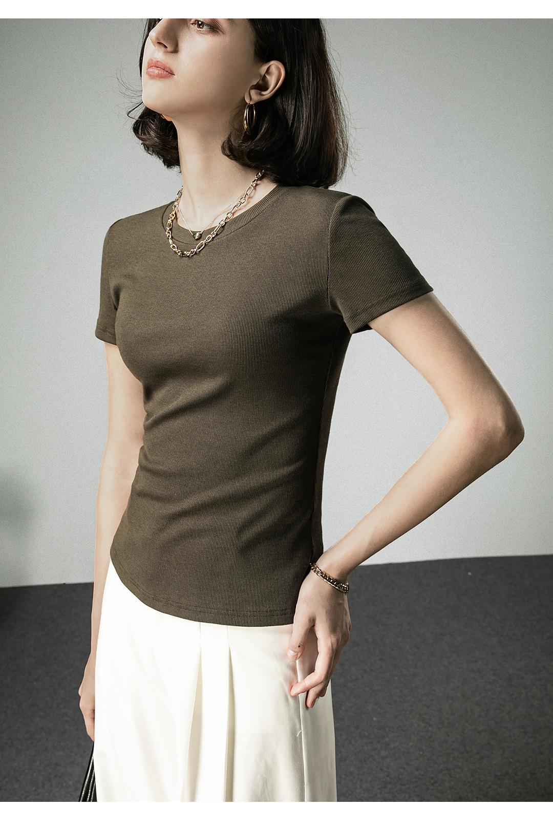 Nueva camiseta de verano de manga corta para mujer con hombros descubiertos.
