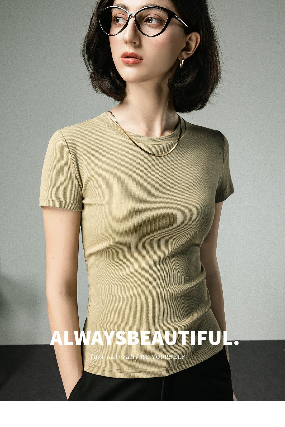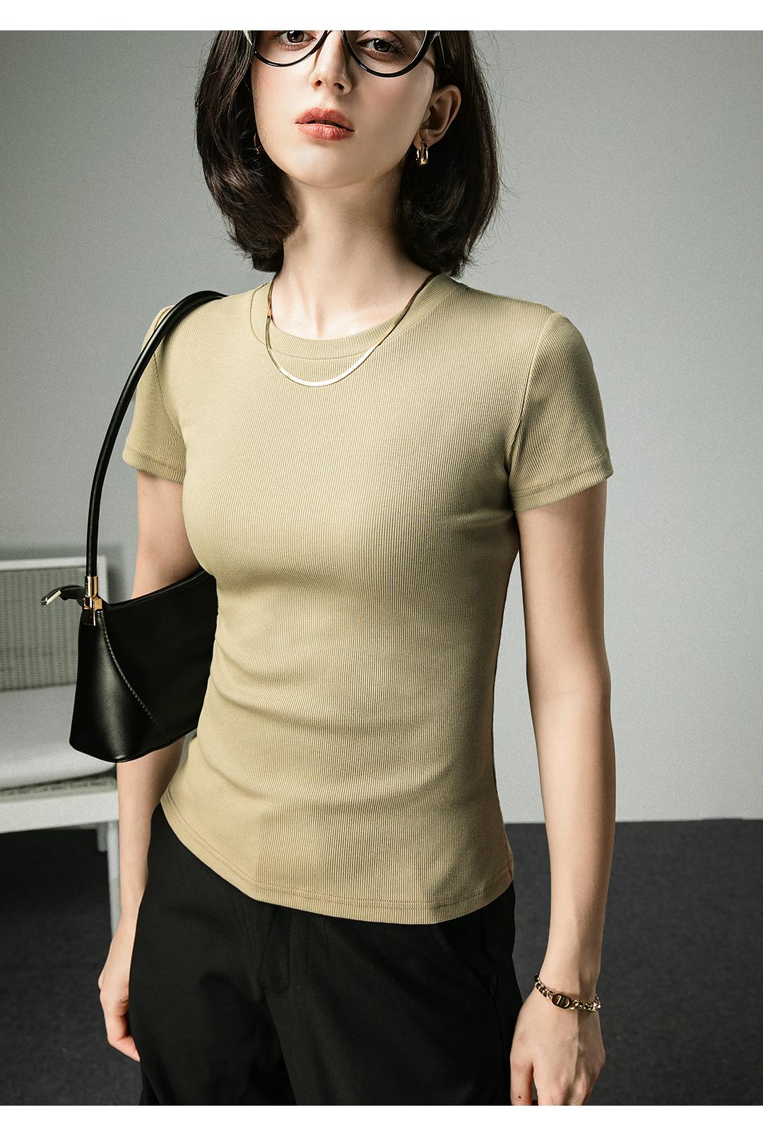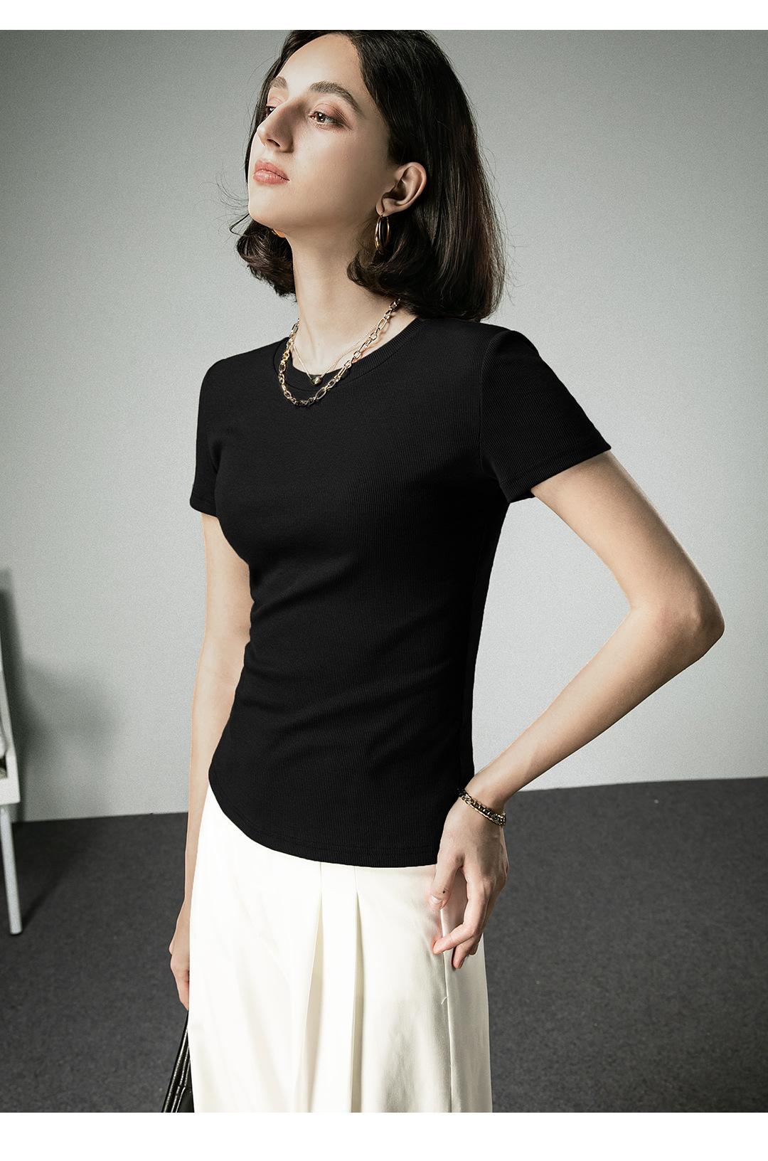 Nueva camiseta de verano de manga corta para mujer con hombros descubiertos.