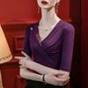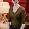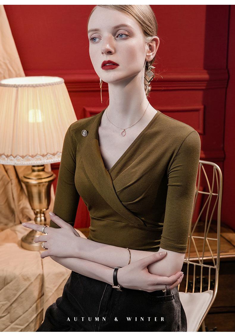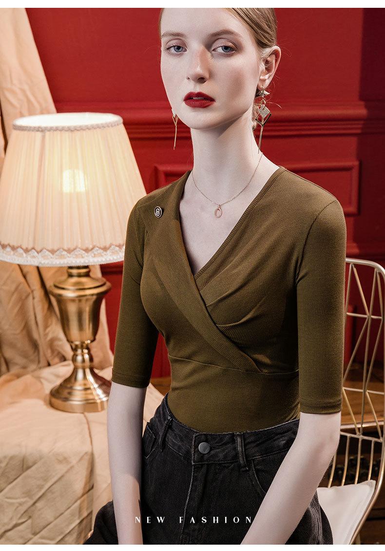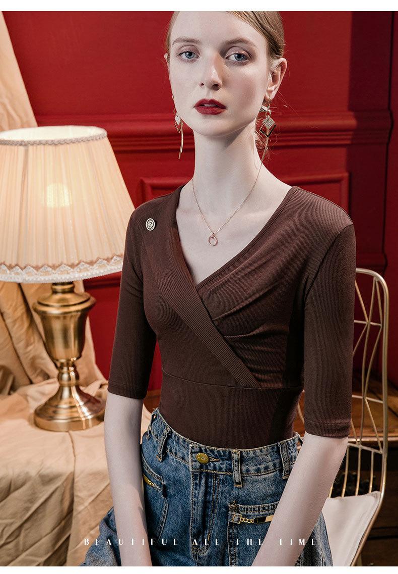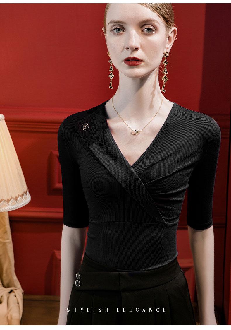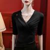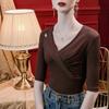 Camisa pequeña con diseño de cuello en V para mujer, manga corta, botones ajustados, decoración, otoño 2023, manga corta, estilo occidental
