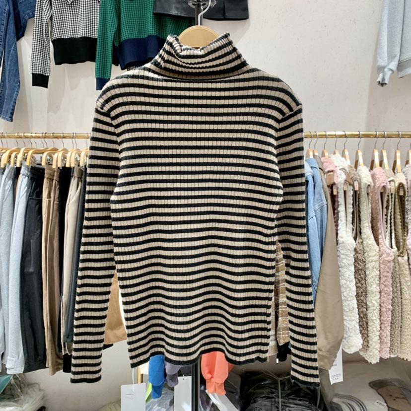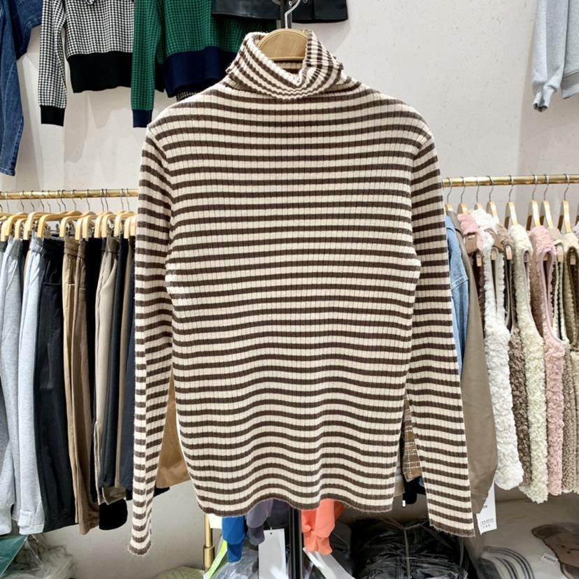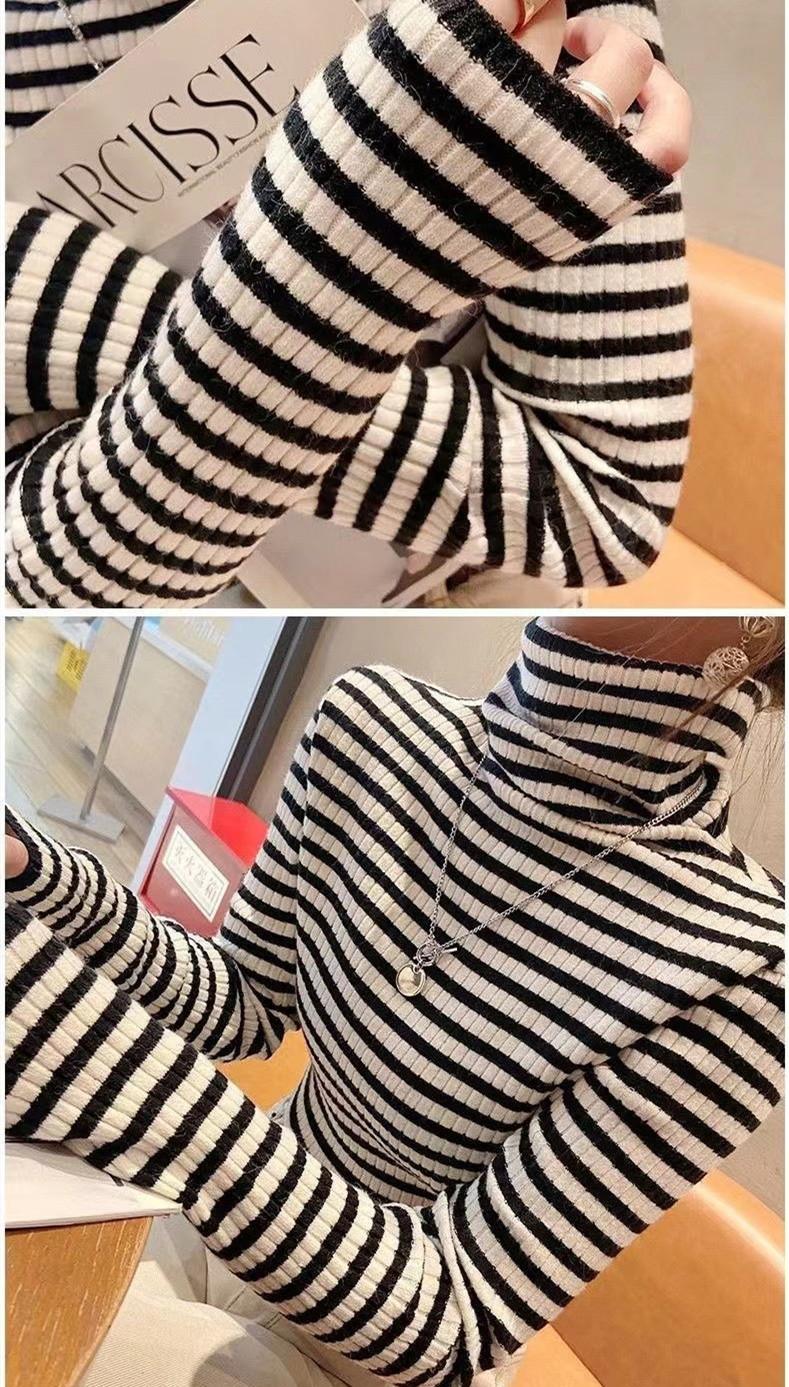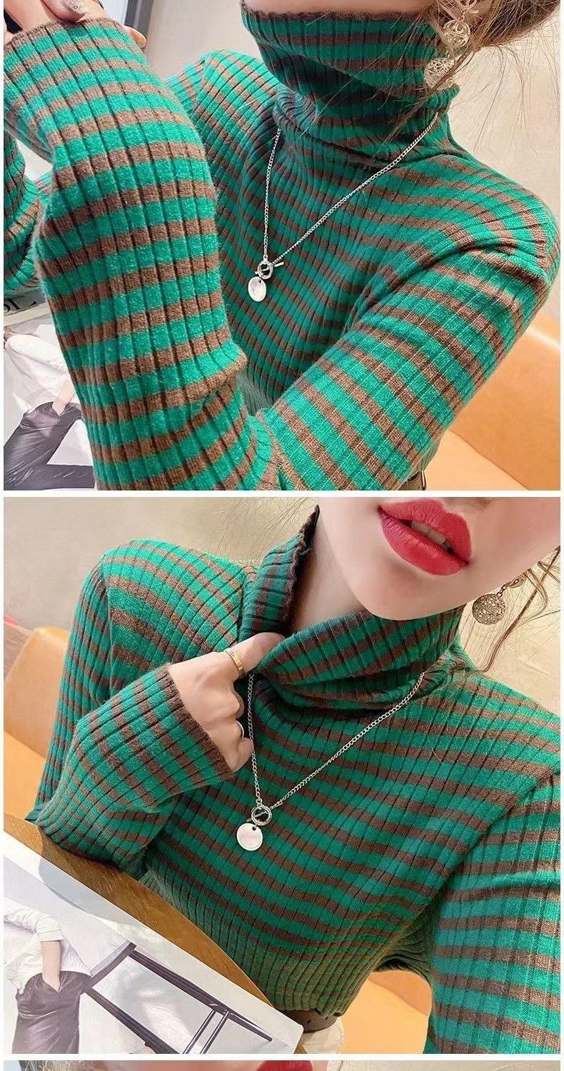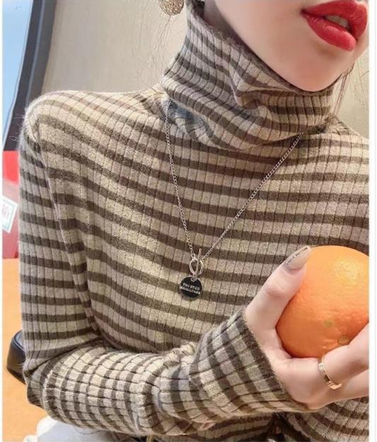 Camiseta Básica de Cuello Alto a Rayas para Mujer Nueva Primavera y Otoño 2023 Versátil Ajustada Adelgazante Suéter de Cuello Alto Top Interior