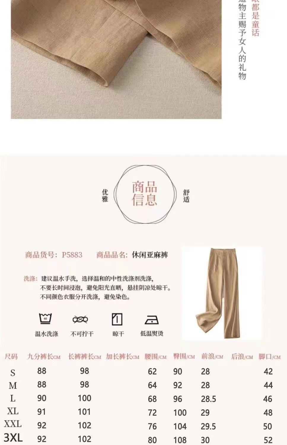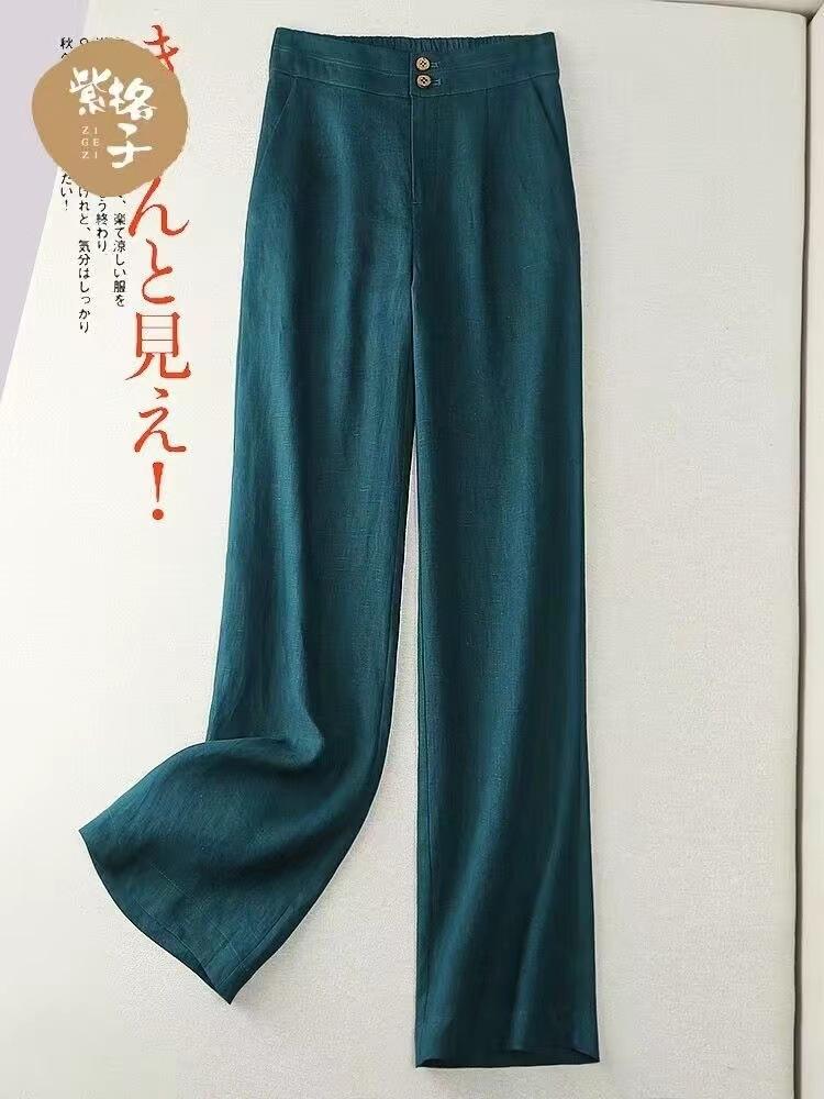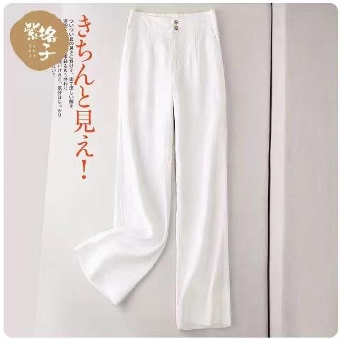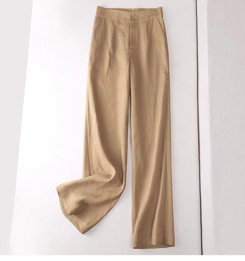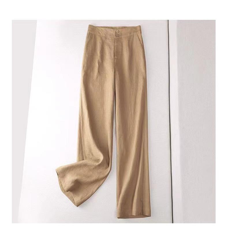 Pantalones anchos de algodón y lino para mujer, estilo informal, de cintura alta y rectos, con dosificación de nuevo estilo
