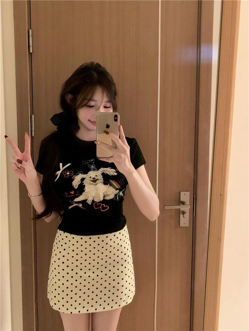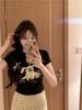 Camiseta de manga corta estampada de verano con cabello lacio de fuente de fábrica en stock para mujer, top corto ajustado a la moda que combina con todo.