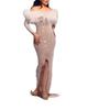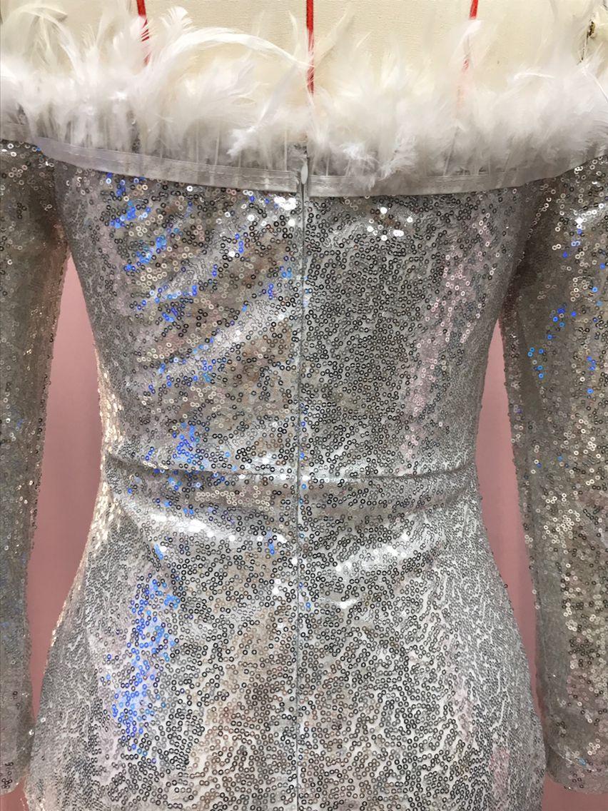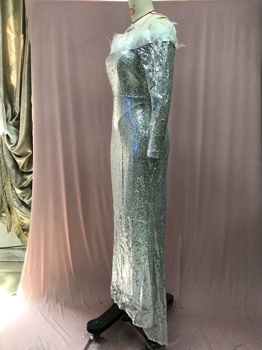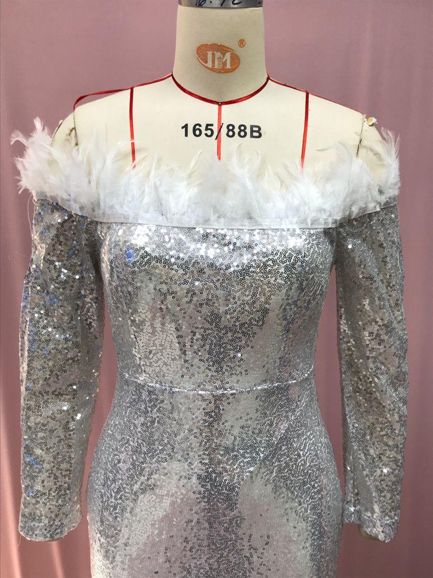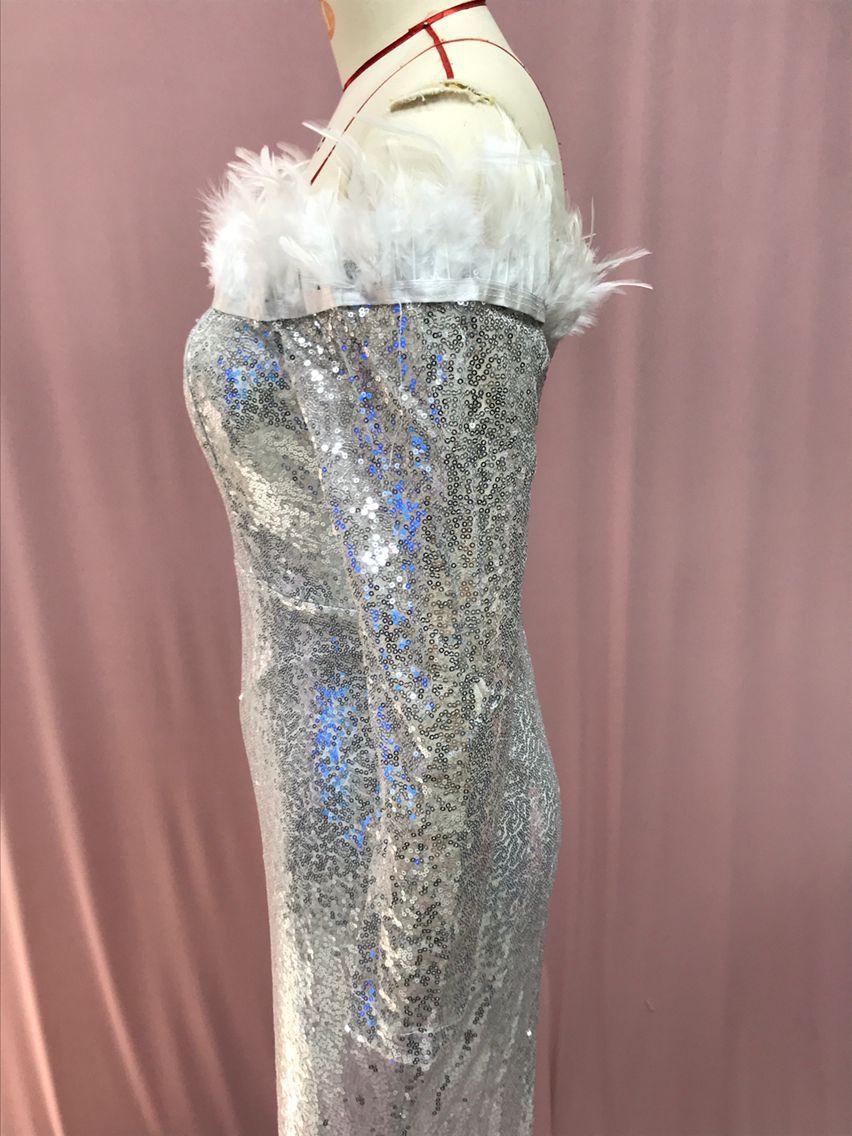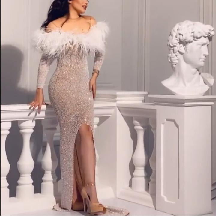 2025 Nuevo Vestido de Moda Transfronteriza Europea y Americana Ebay Sexy con Plumas Espolvoreadas de Oro, Abertura, Cubre Caderas, Banquete, Vestido de Noche