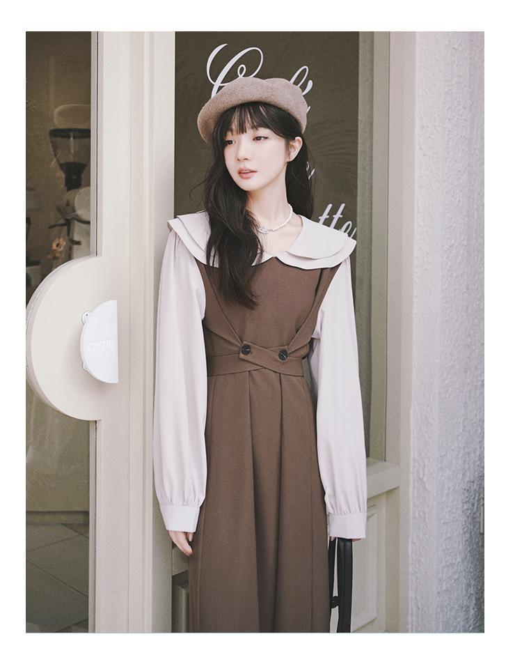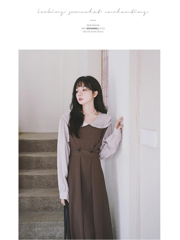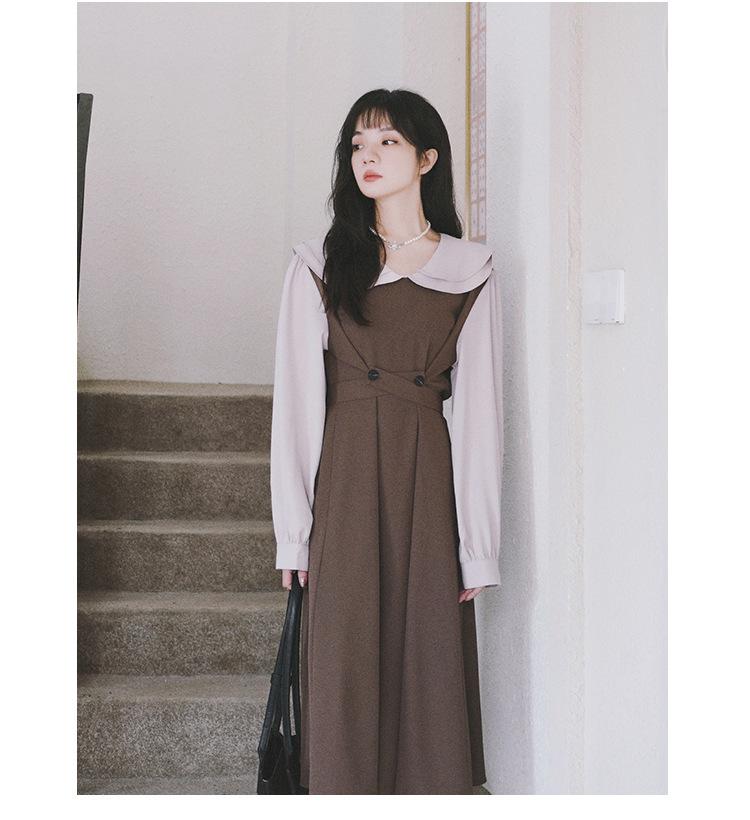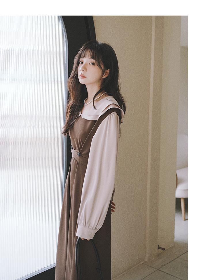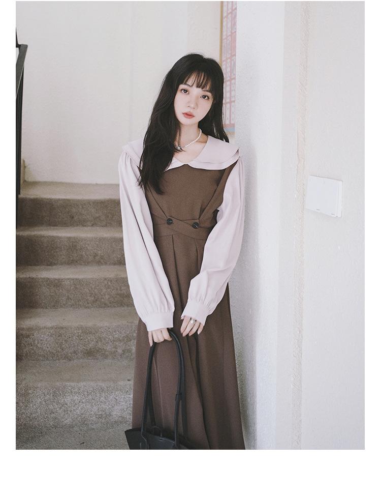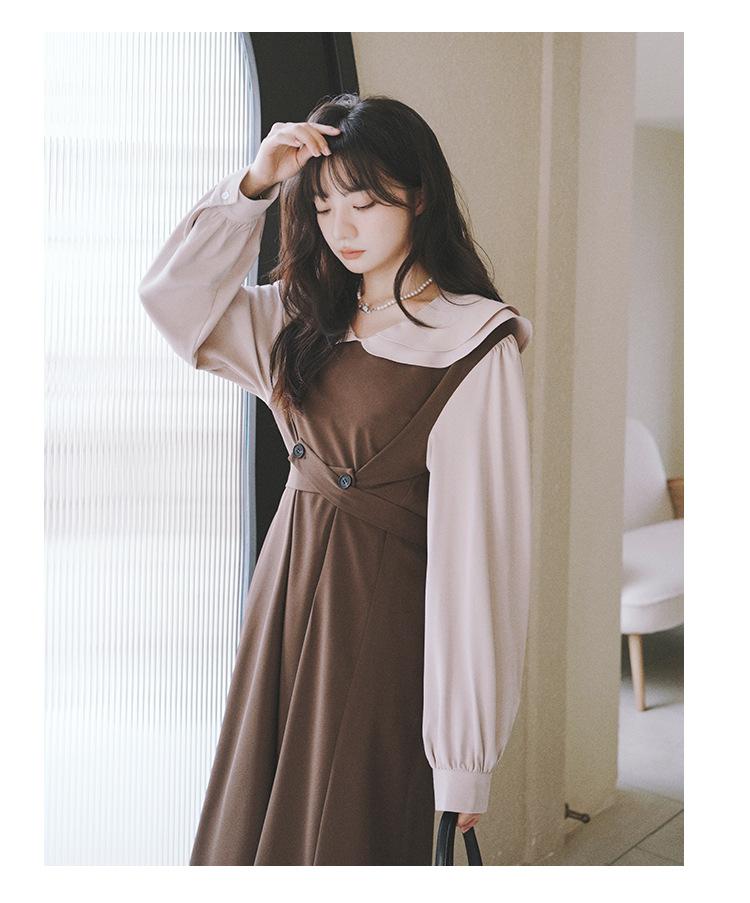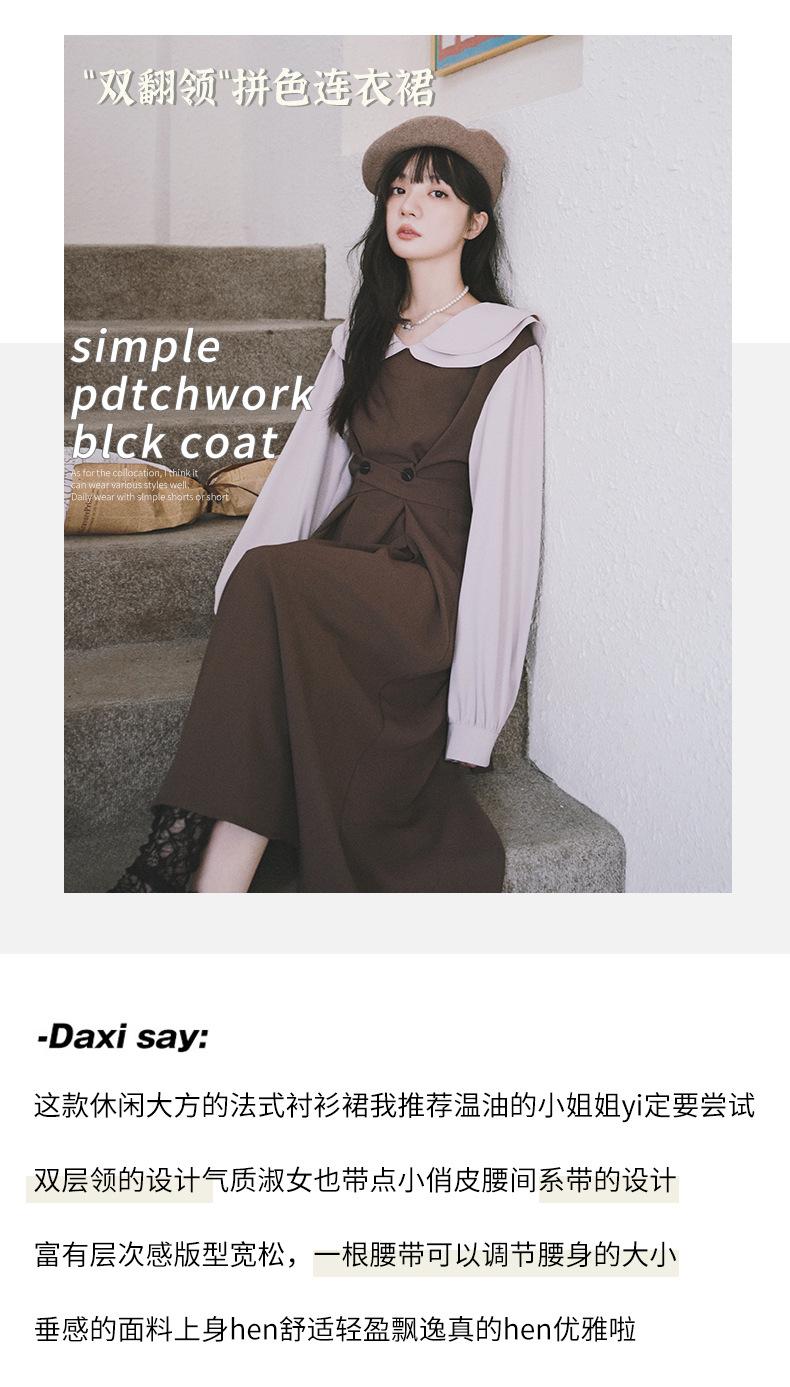 Papaya Milk Spring nueva ropa de mujer coreana casual costura manga larga doble solapa color contraste falso vestido de dos piezas moda
