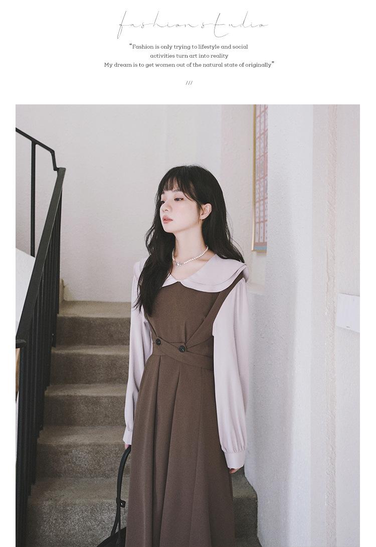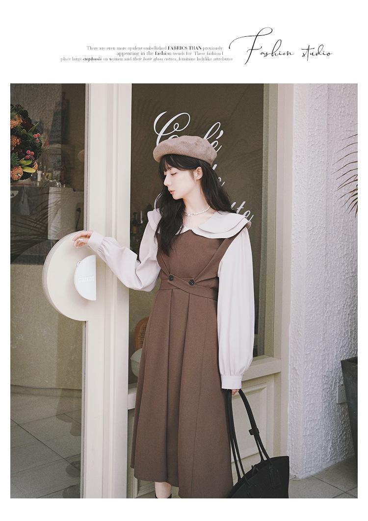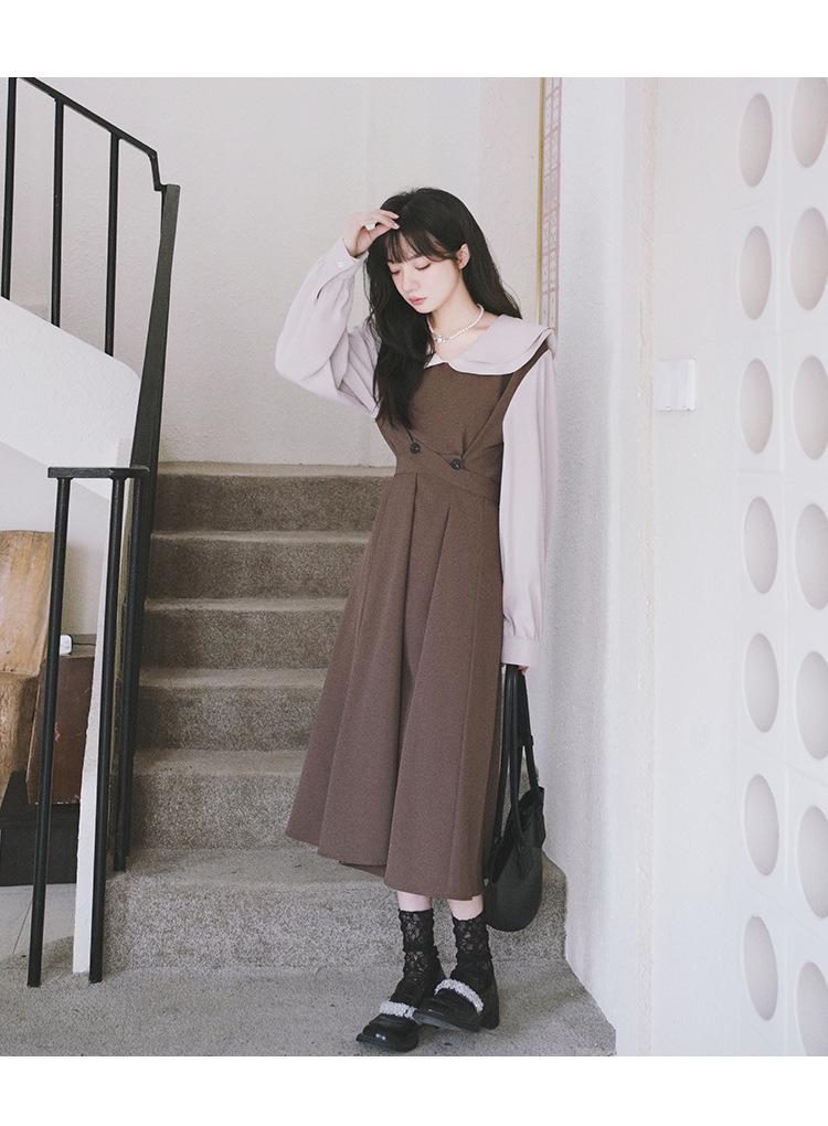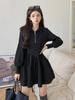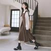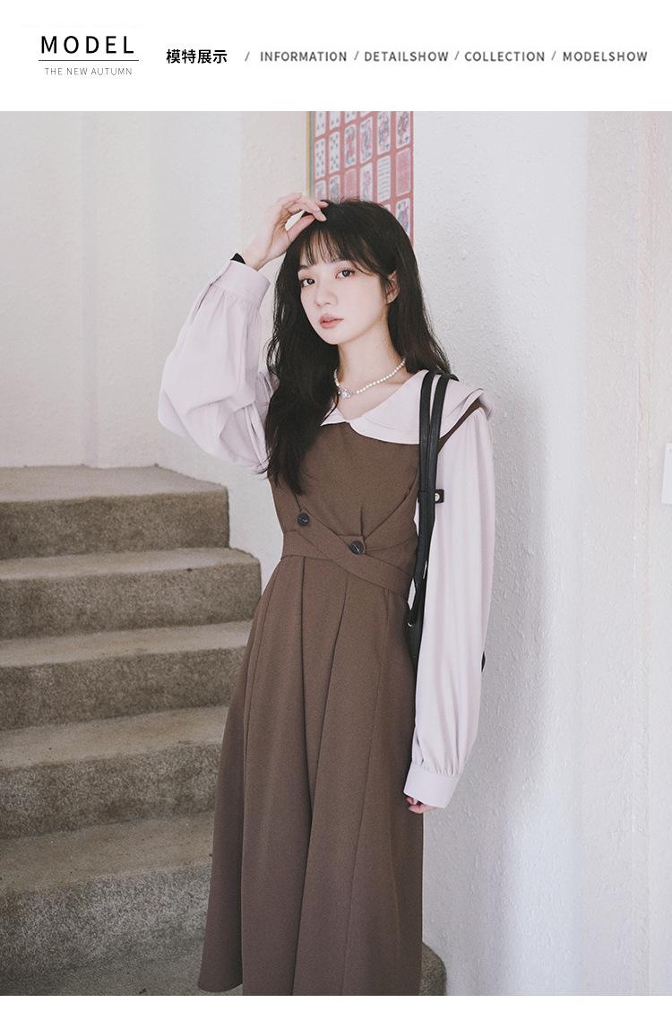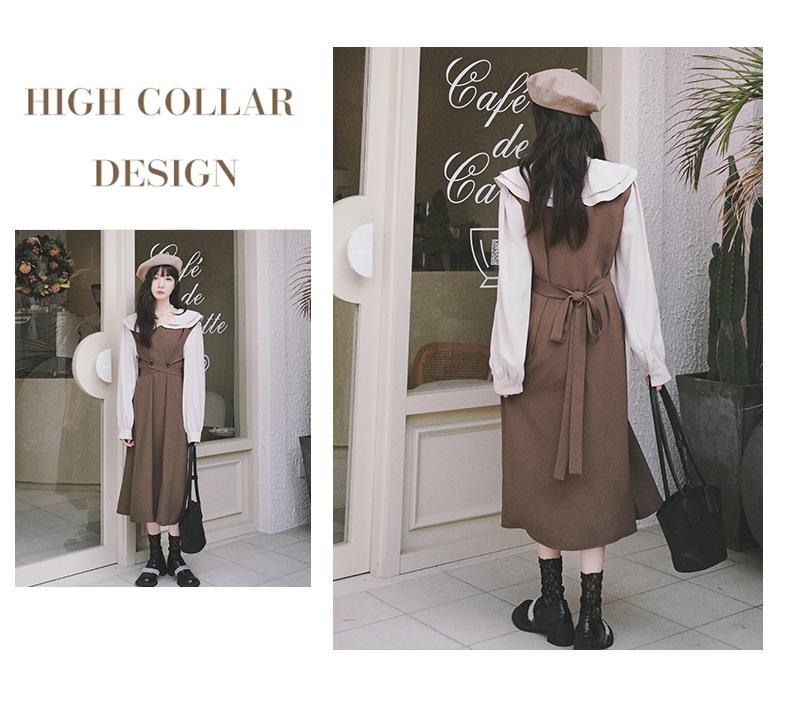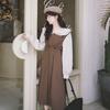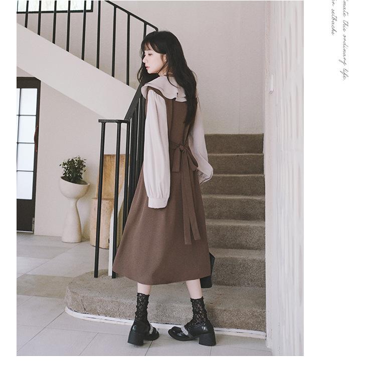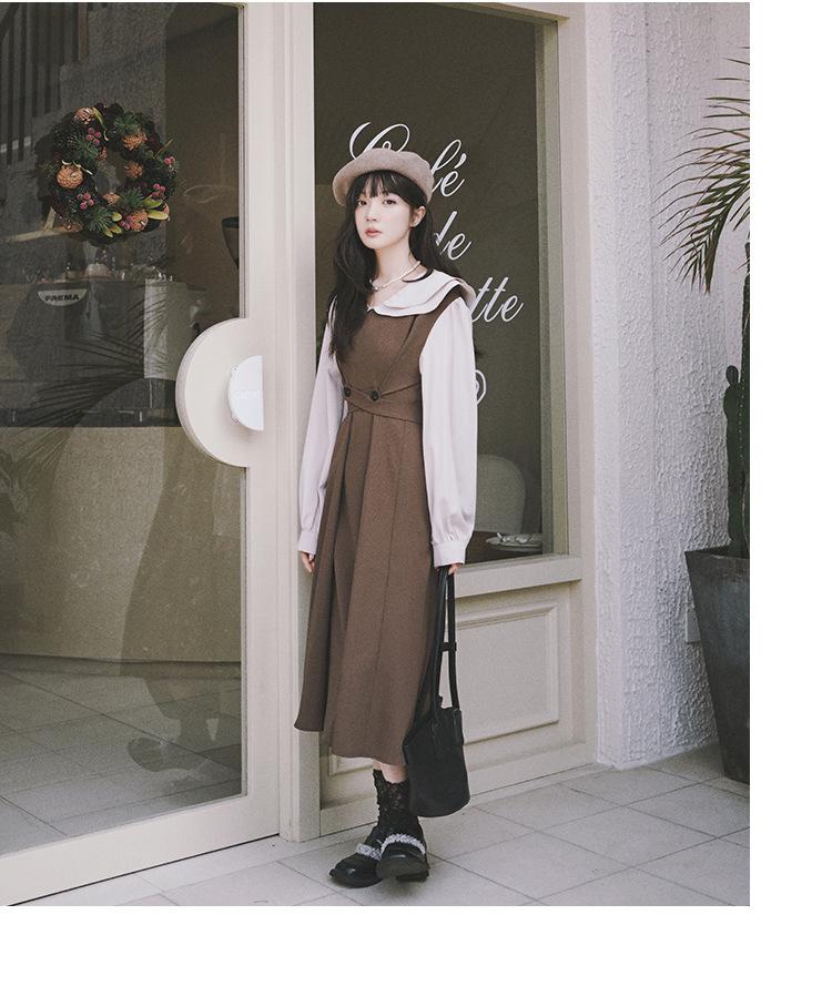 Papaya Milk Spring nueva ropa de mujer coreana casual costura manga larga doble solapa color contraste falso vestido de dos piezas moda
