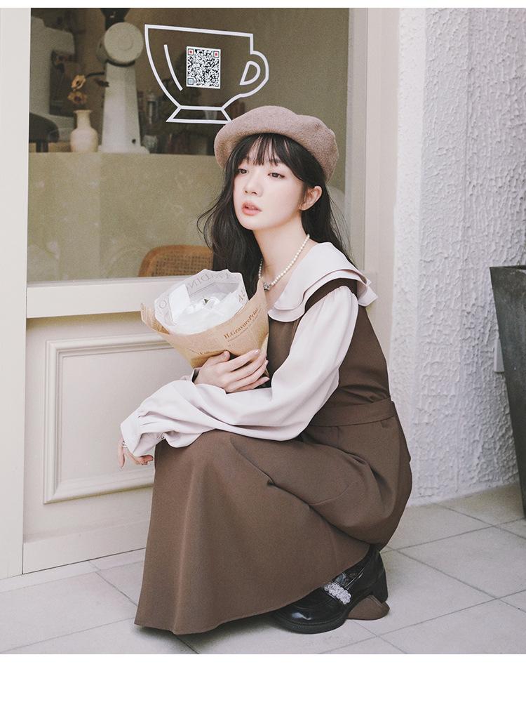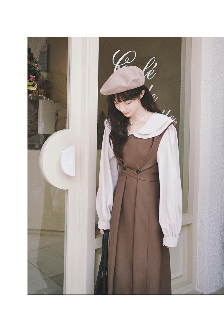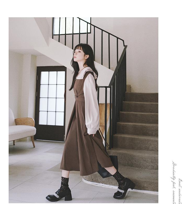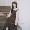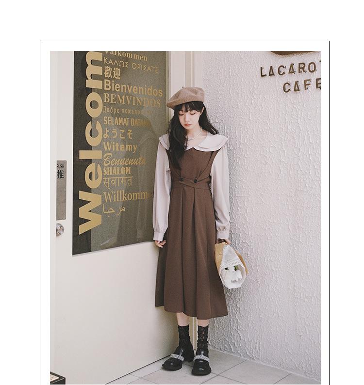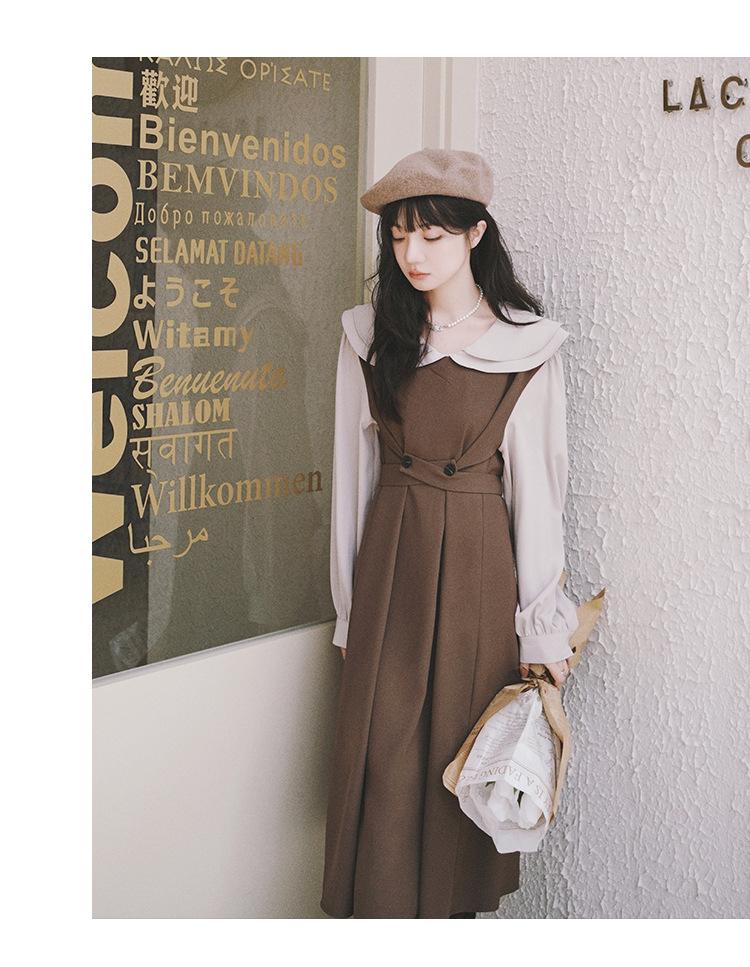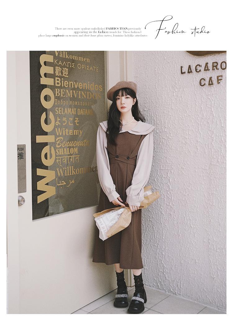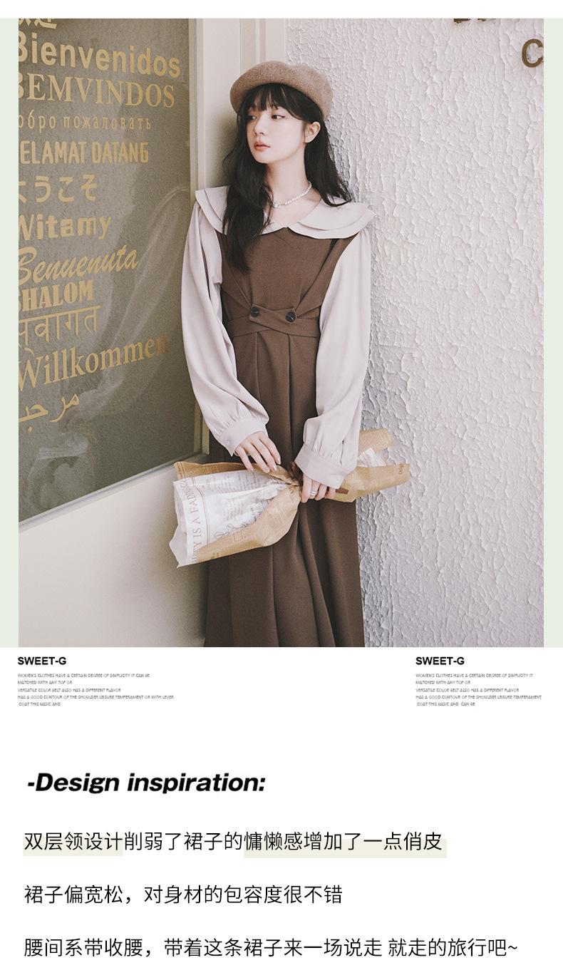 Papaya Milk Spring nueva ropa de mujer coreana casual costura manga larga doble solapa color contraste falso vestido de dos piezas moda