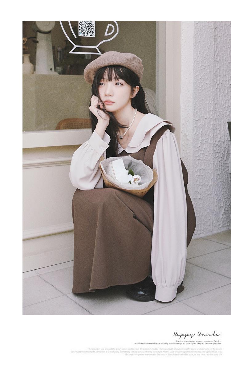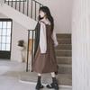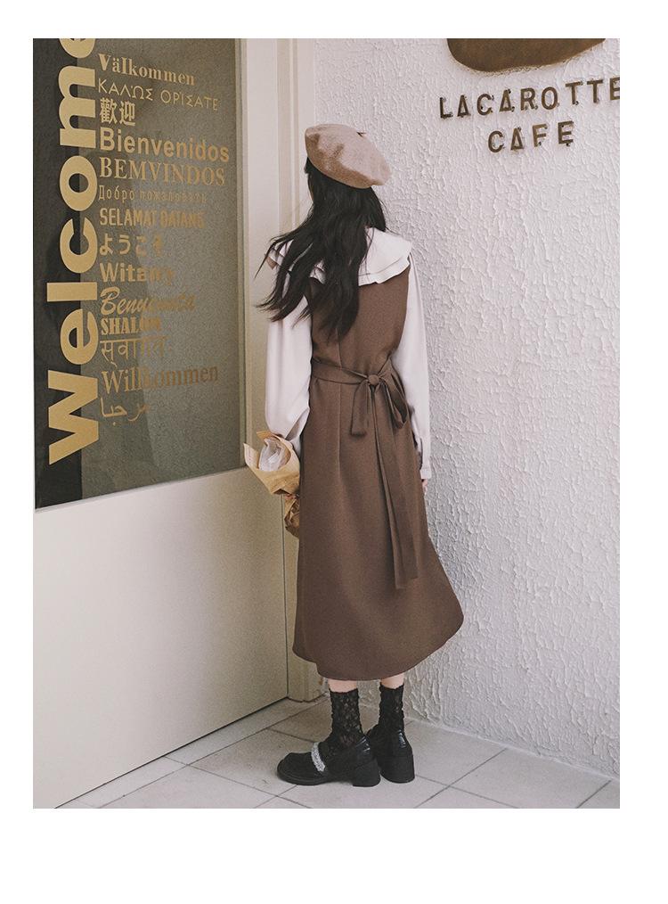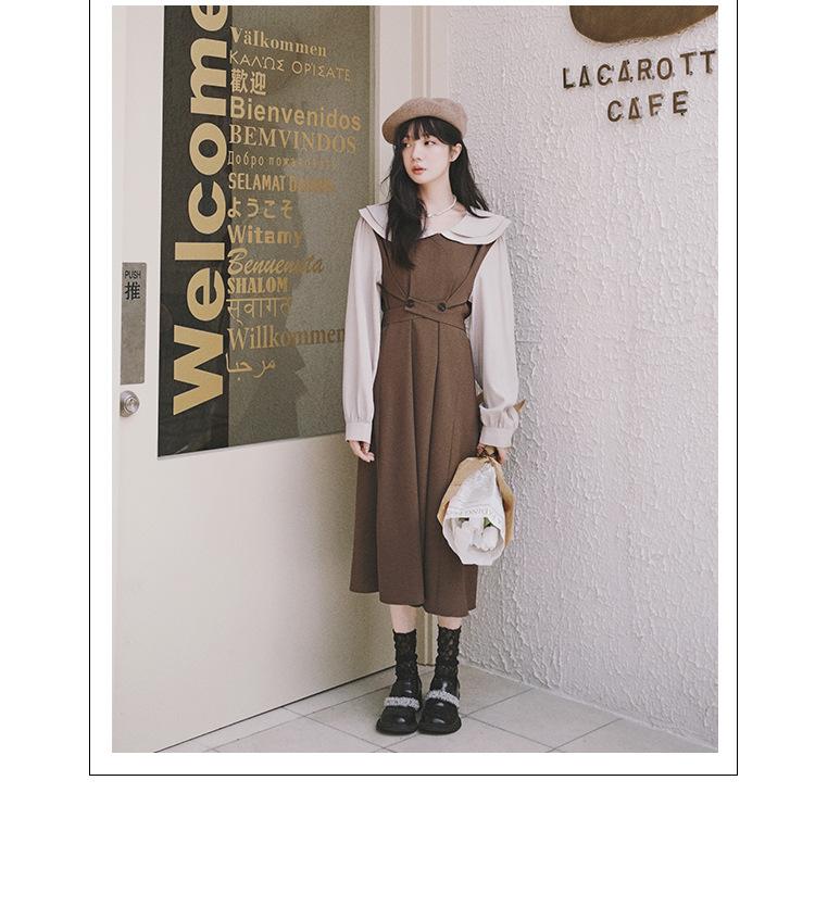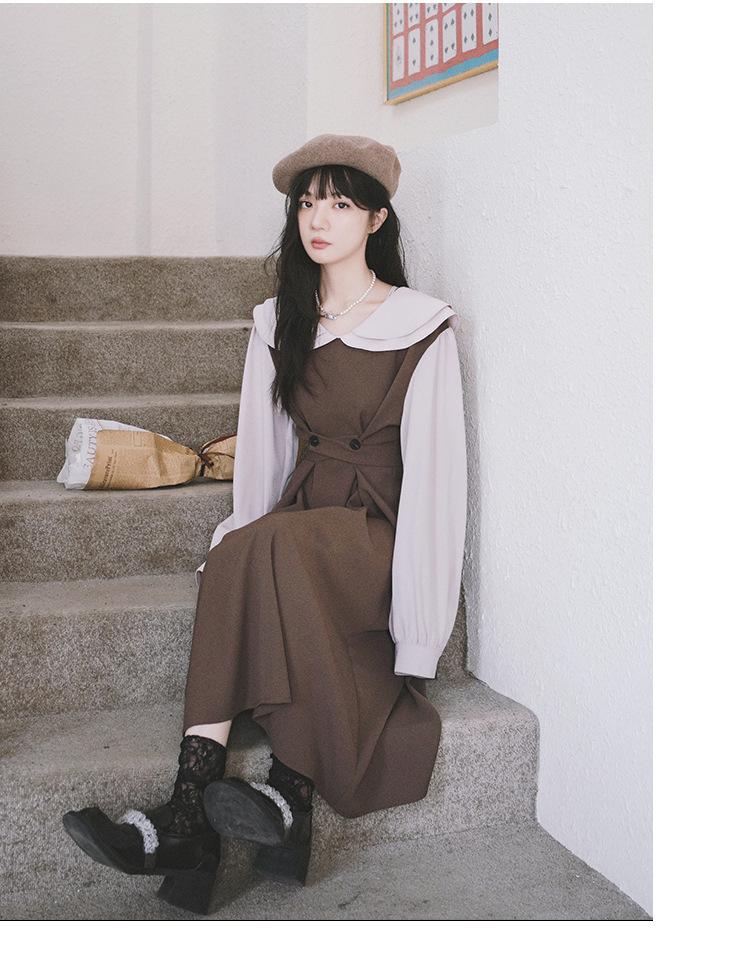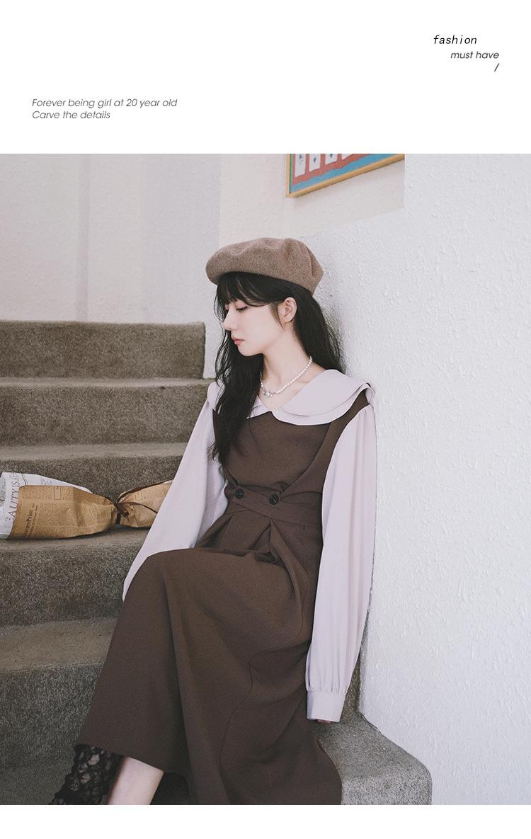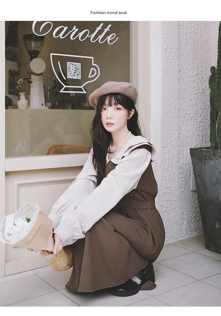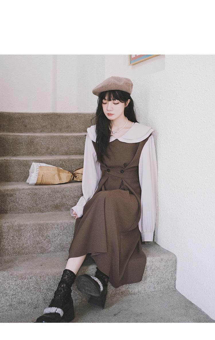 Papaya Milk Spring nueva ropa de mujer coreana casual costura manga larga doble solapa color contraste falso vestido de dos piezas moda