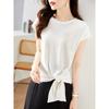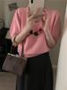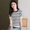 Suéter de punto de seda helada a rayas de estilo coreano, novedad de verano de 2023, cuello de mujer, manga corta, top informal que combina con todo