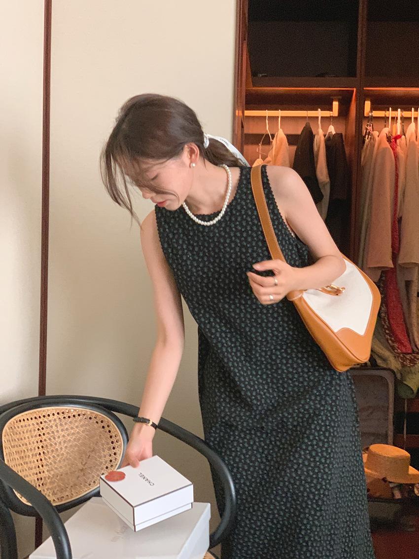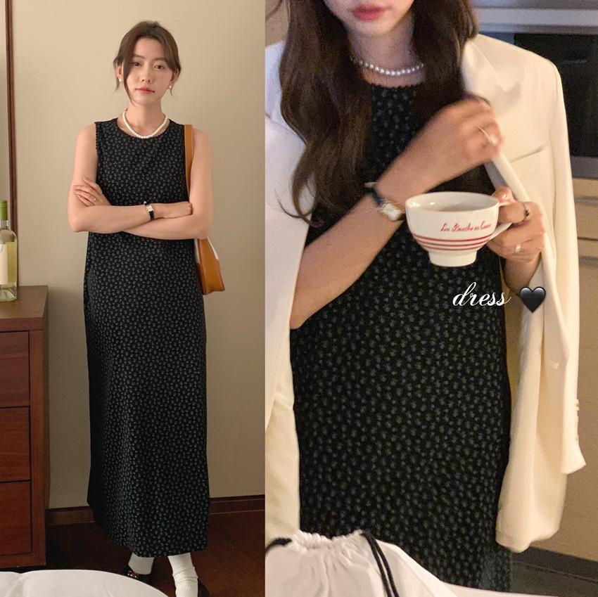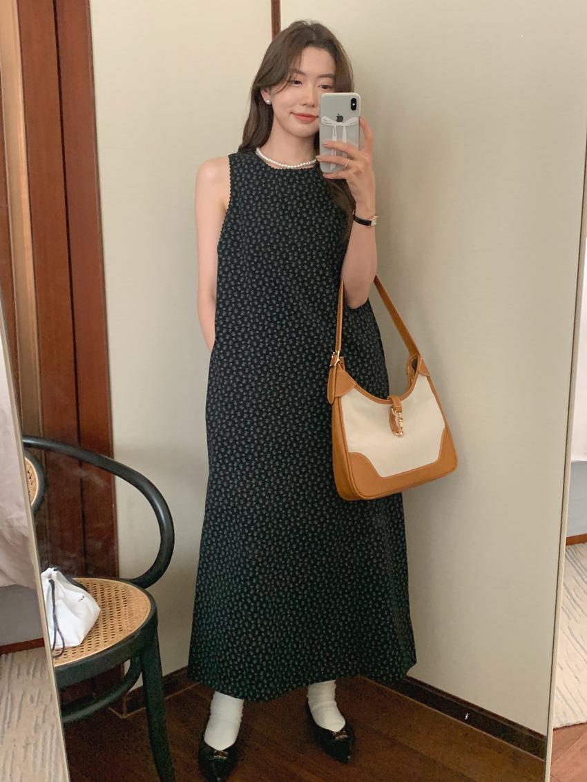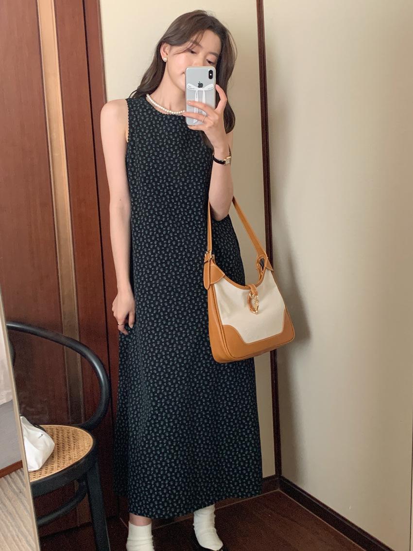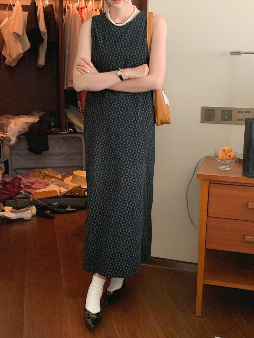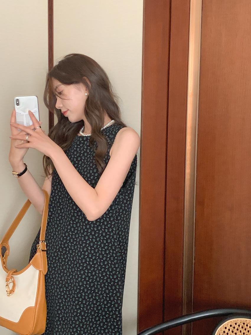 Foto real de la nueva moda coreana Ins de 2025 a juego ~ Vestido chaleco floral retro sin mangas para mujer