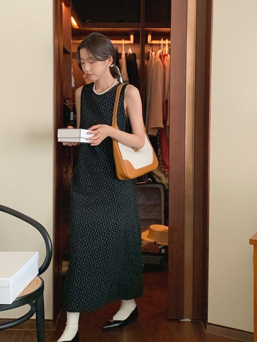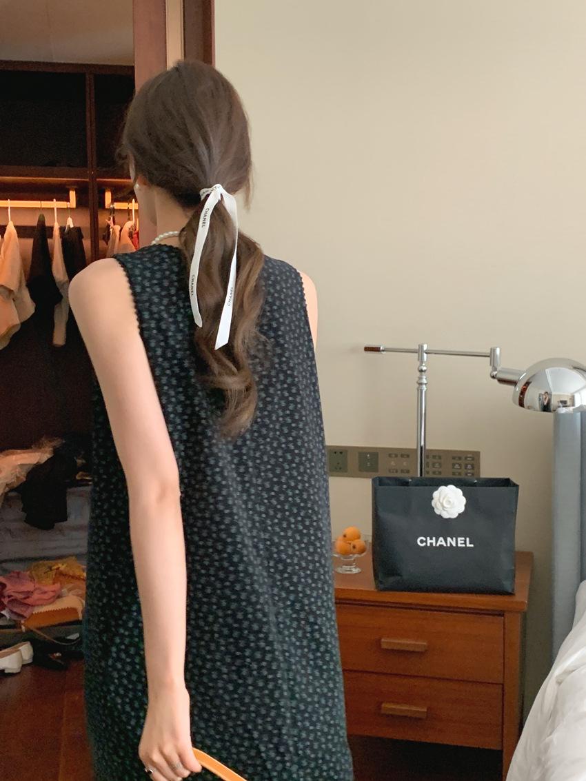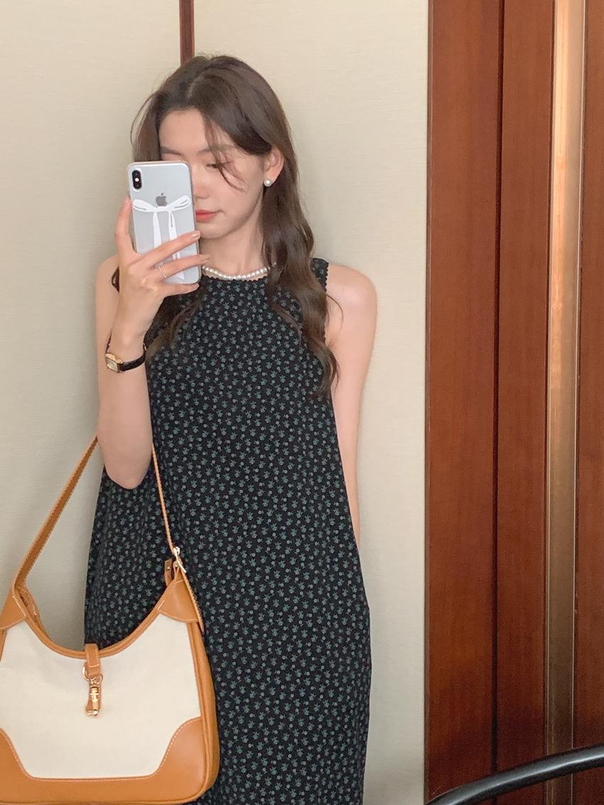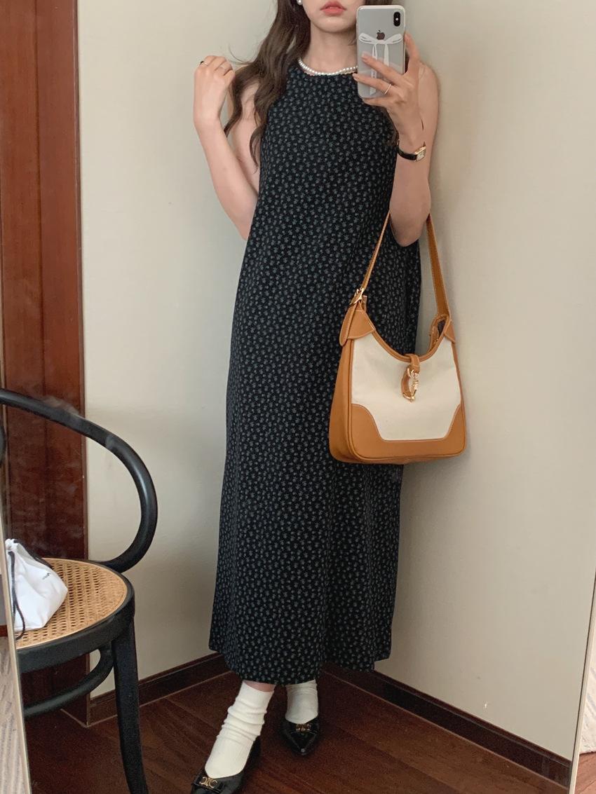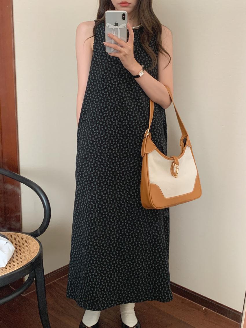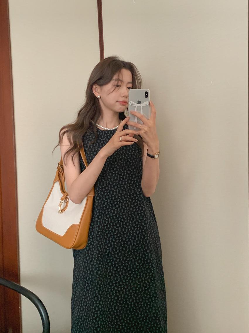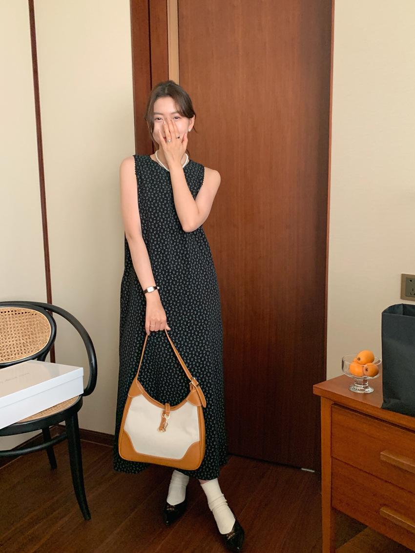 Foto real de la nueva moda coreana Ins de 2025 a juego ~ Vestido chaleco floral retro sin mangas para mujer
