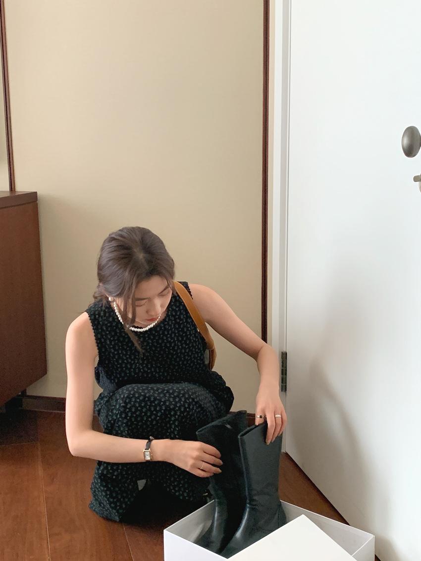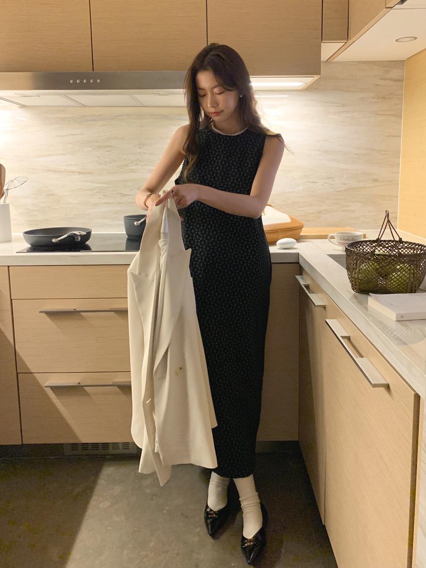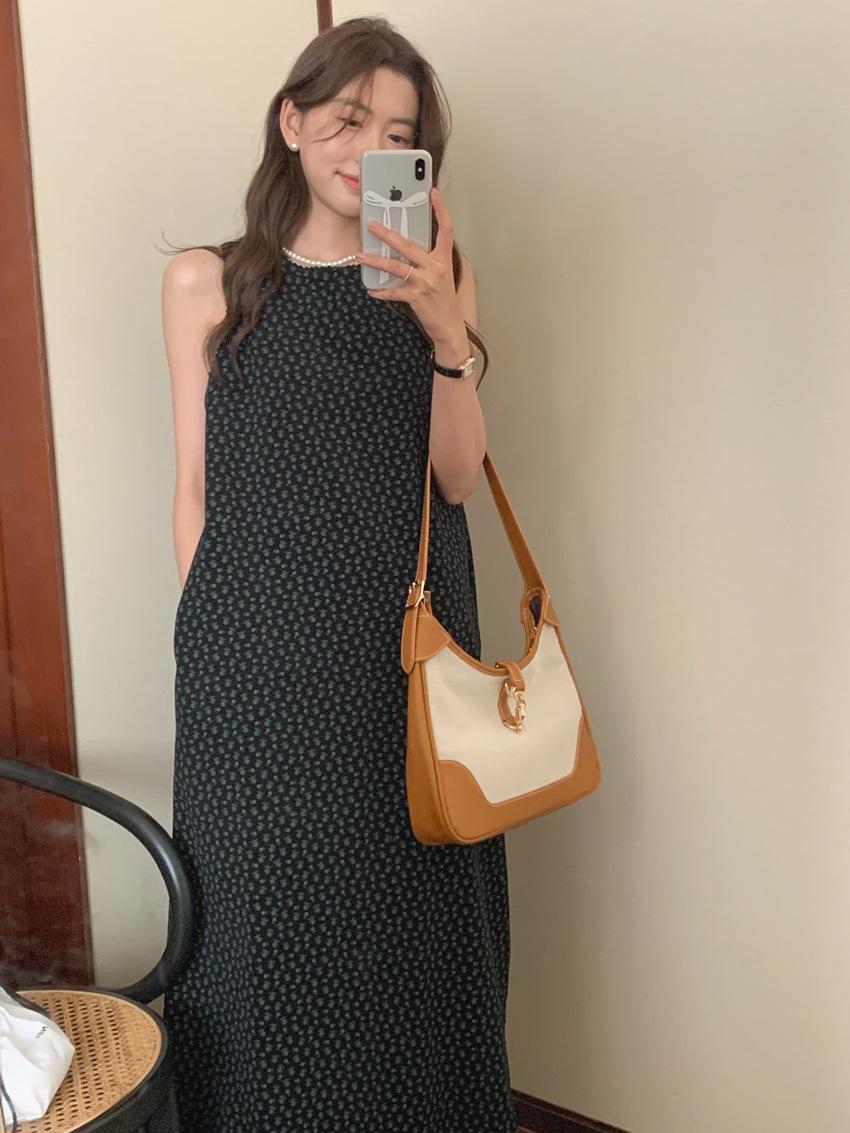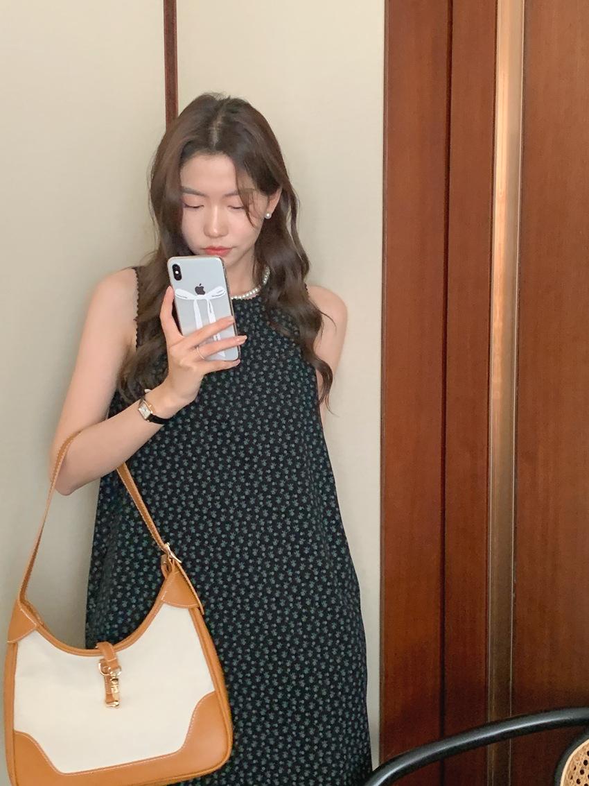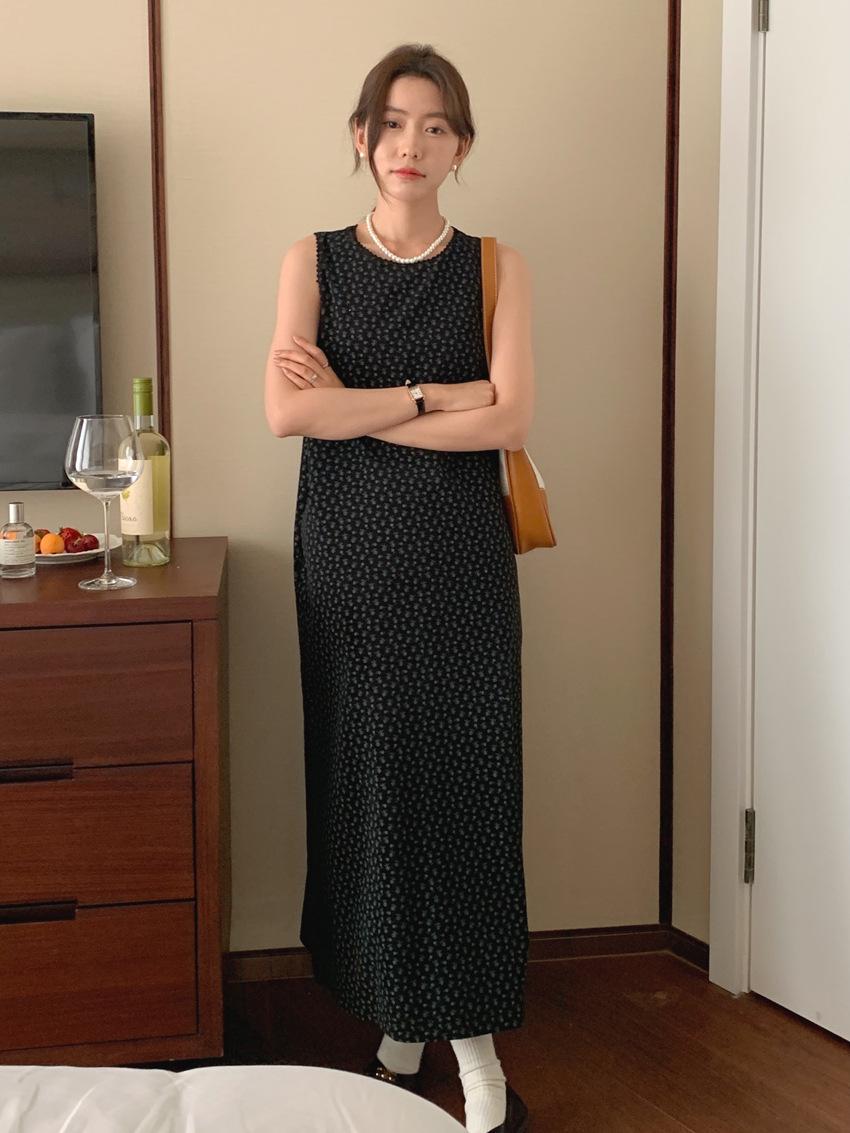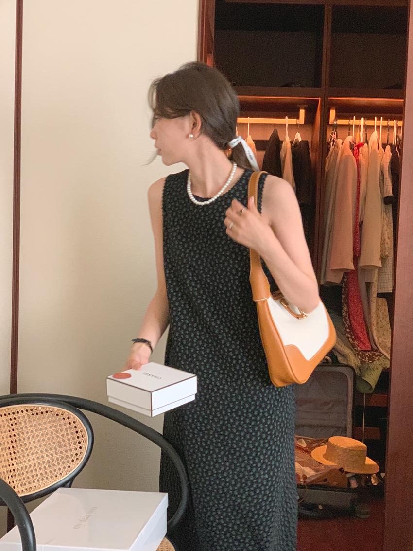 Foto real de la nueva moda coreana Ins de 2025 a juego ~ Vestido chaleco floral retro sin mangas para mujer
