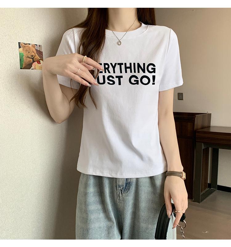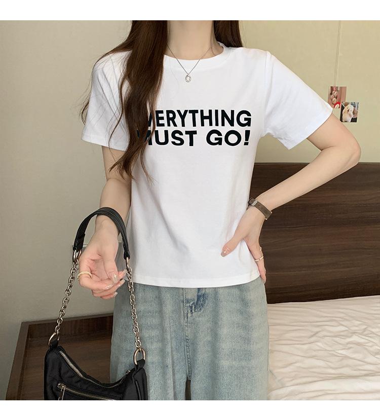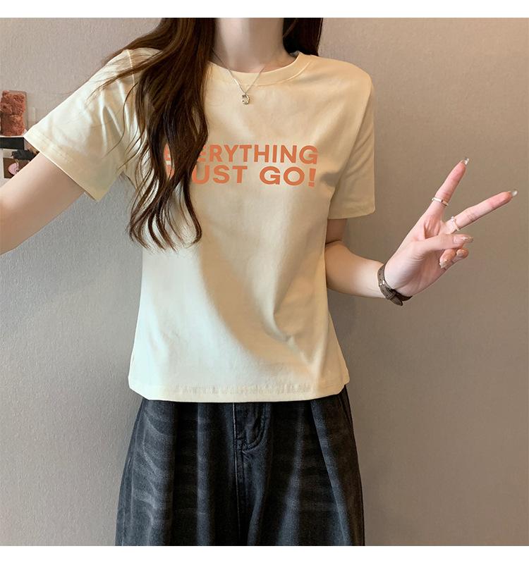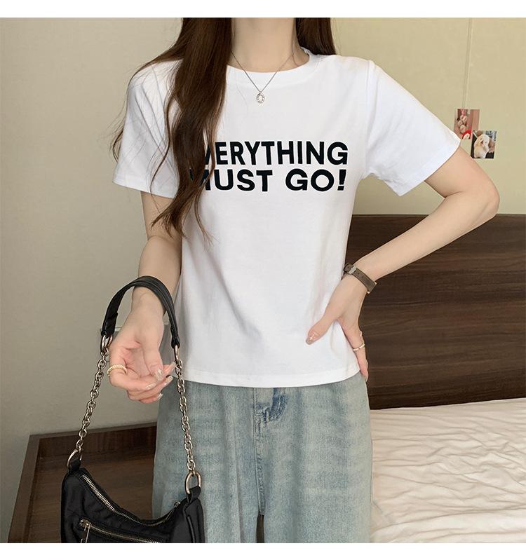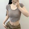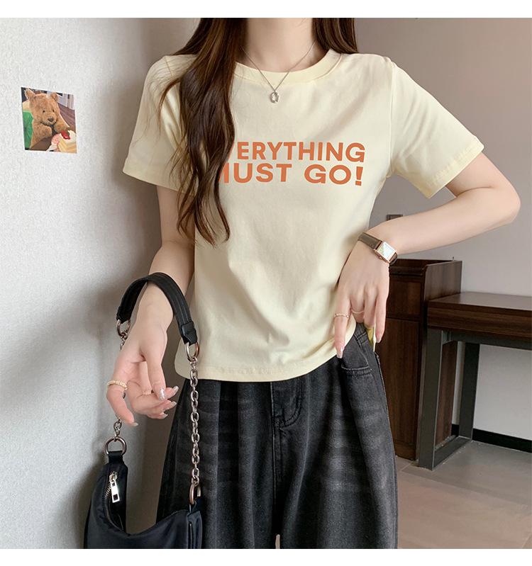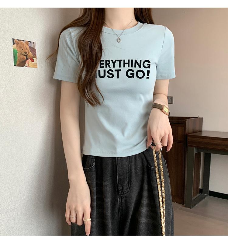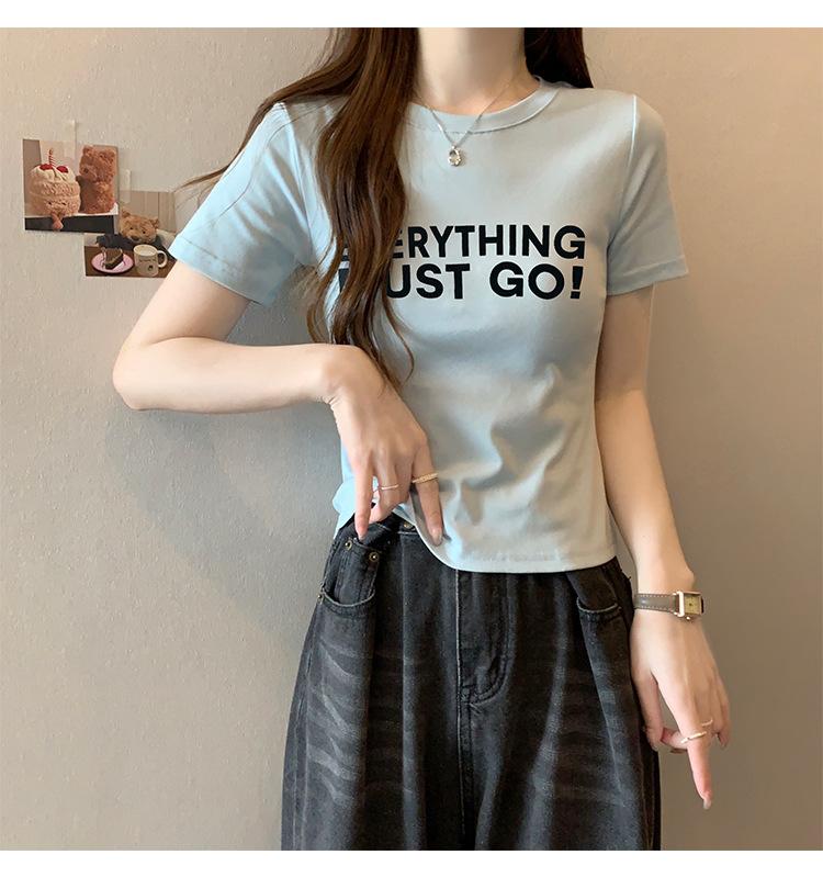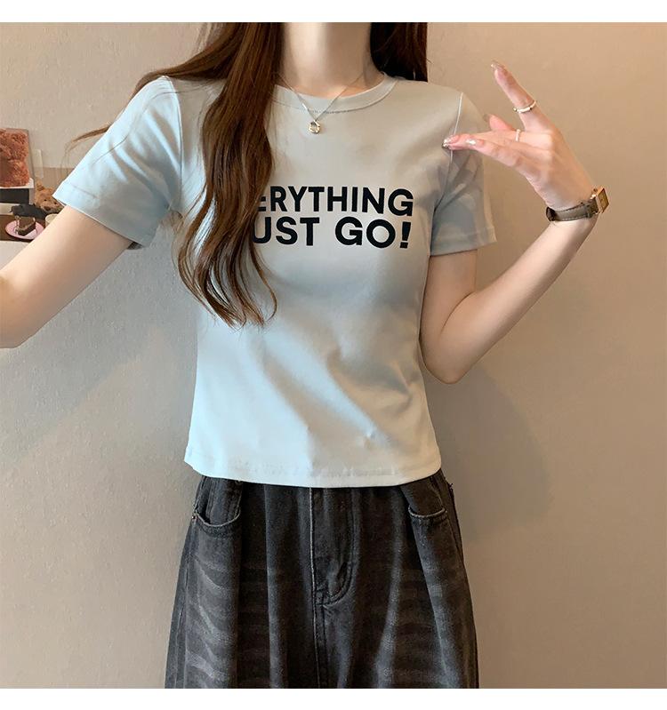 Top de Chica Caliente Ajustado Corto de Cintura Alta Camiseta Estampada de Manga Corta para Mujer Verano Manga Media Camiseta de Moda