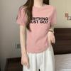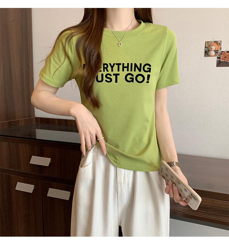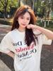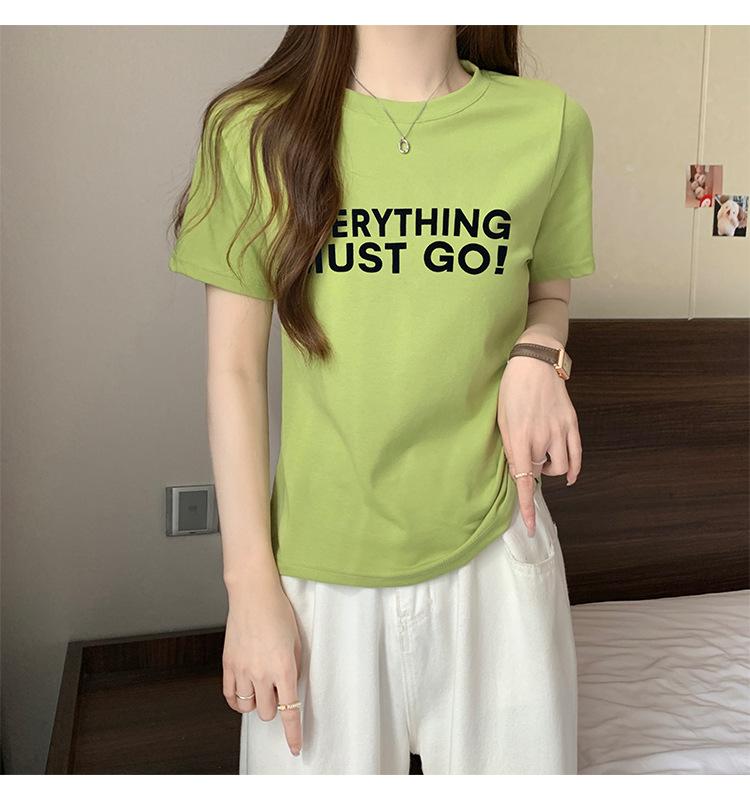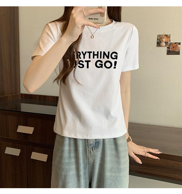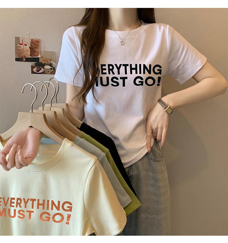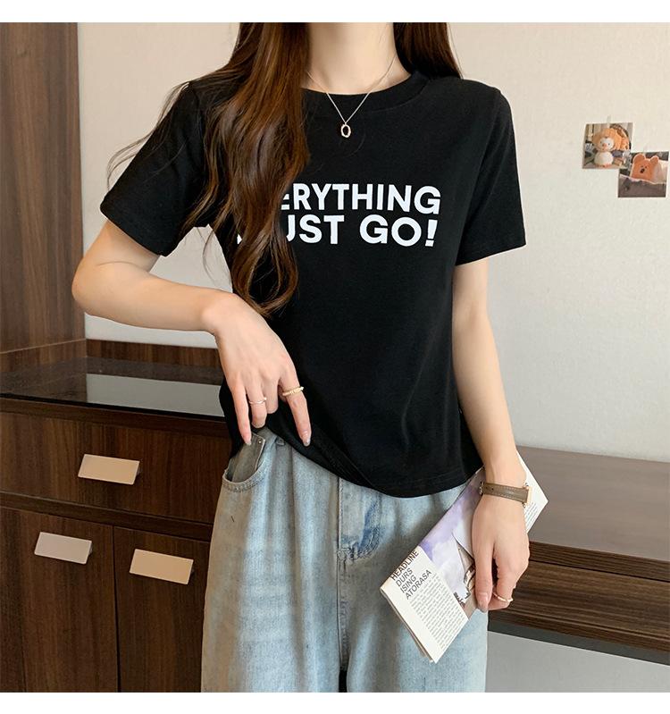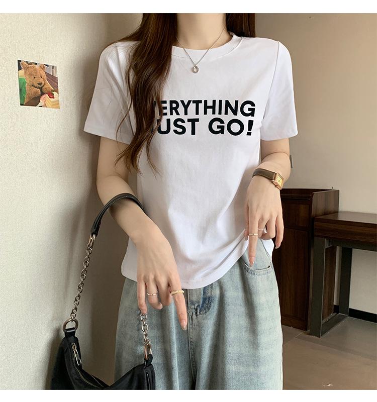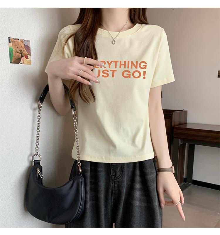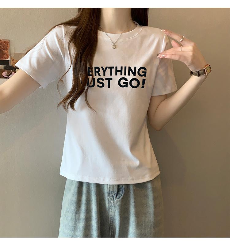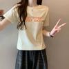 Top de Chica Caliente Ajustado Corto de Cintura Alta Camiseta Estampada de Manga Corta para Mujer Verano Manga Media Camiseta de Moda