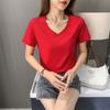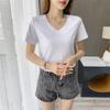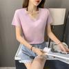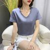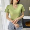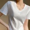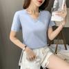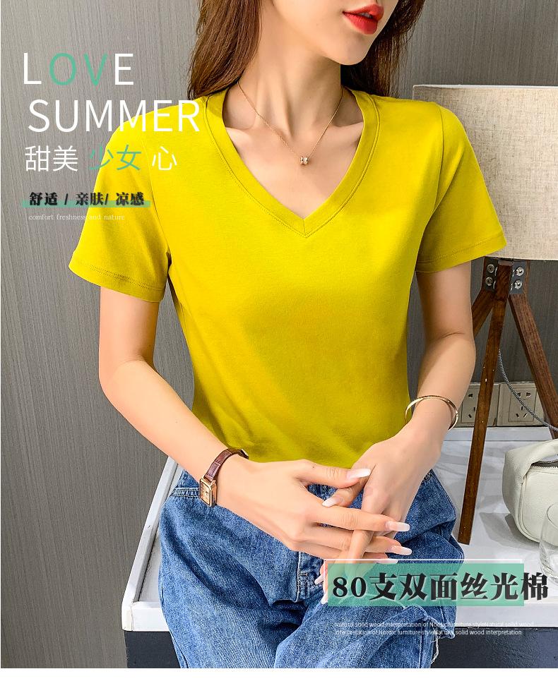 Camiseta de manga corta con cuello en V redondo de algodón mercerizado de 80 pts para mujer, nueva camiseta de verano 2023, camiseta holgada de algodón de seda de hielo