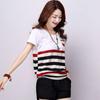 Camiseta Hermosa de Rayas Cosidas de Manga Corta para Mujer Verano 2025 Estilo Coreano Nueva Camiseta Básica Suelta Estilo Preppy para Mujer
