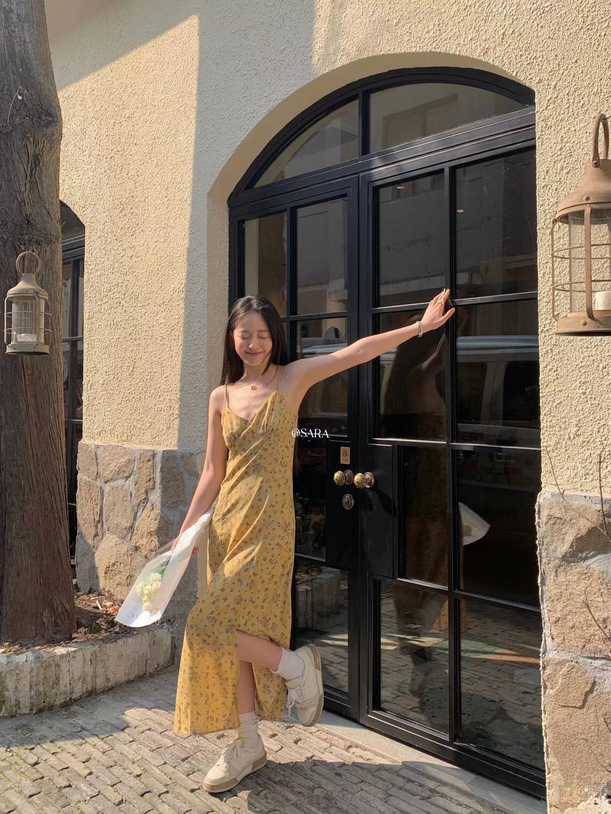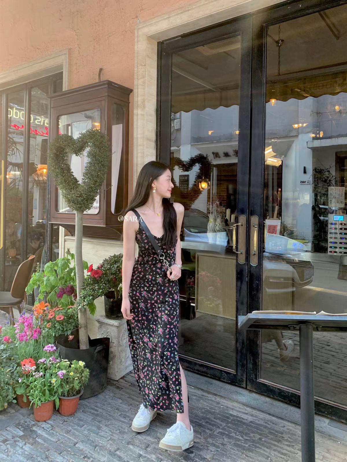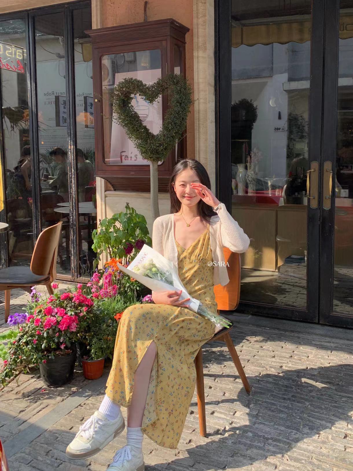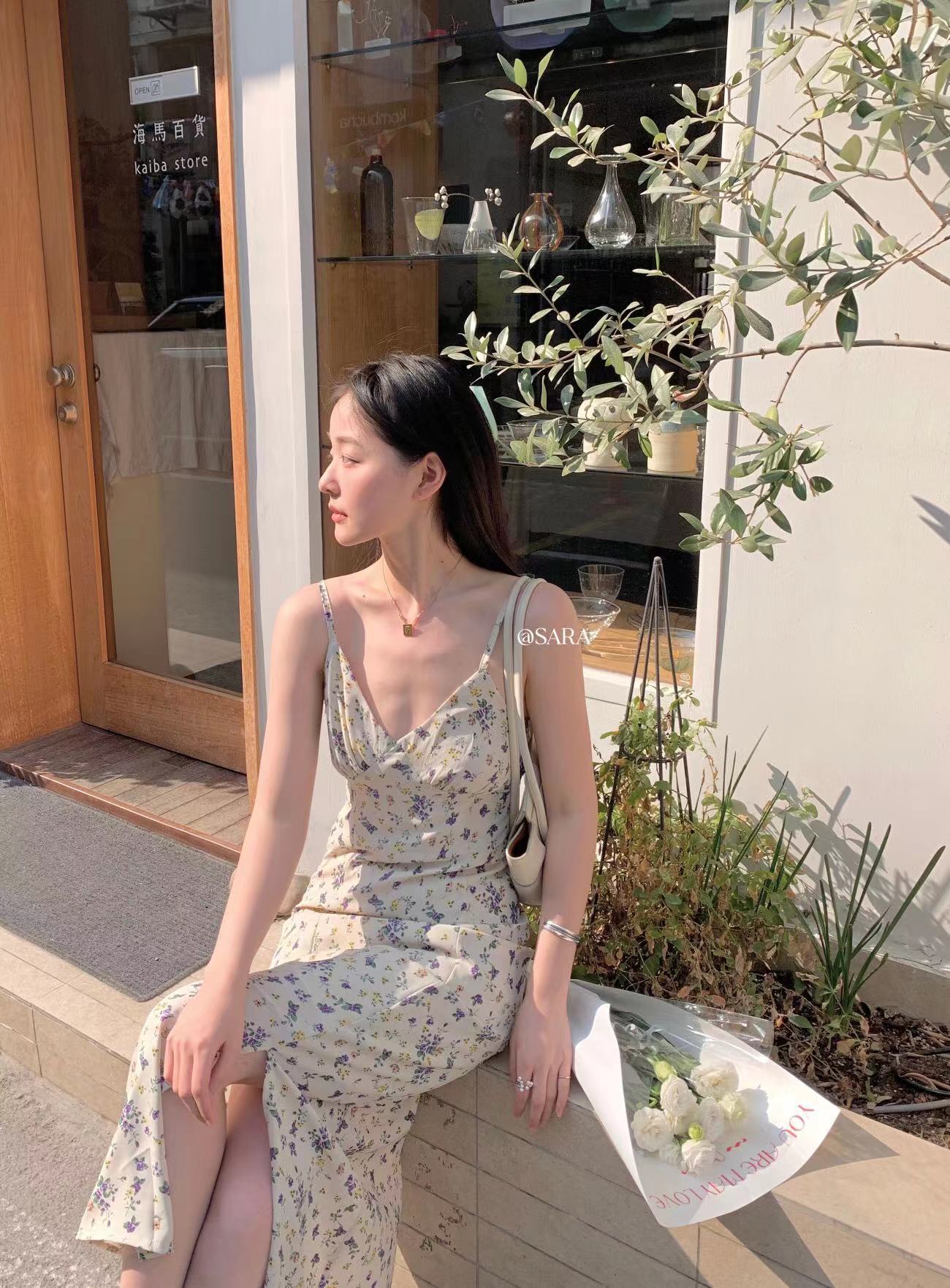 Kaiyushang Lsaraj Verano Francés Suave y Romántico Vestido Floral con Tirantes y Cuello en V