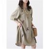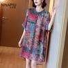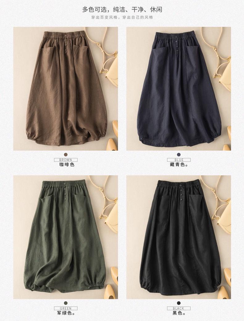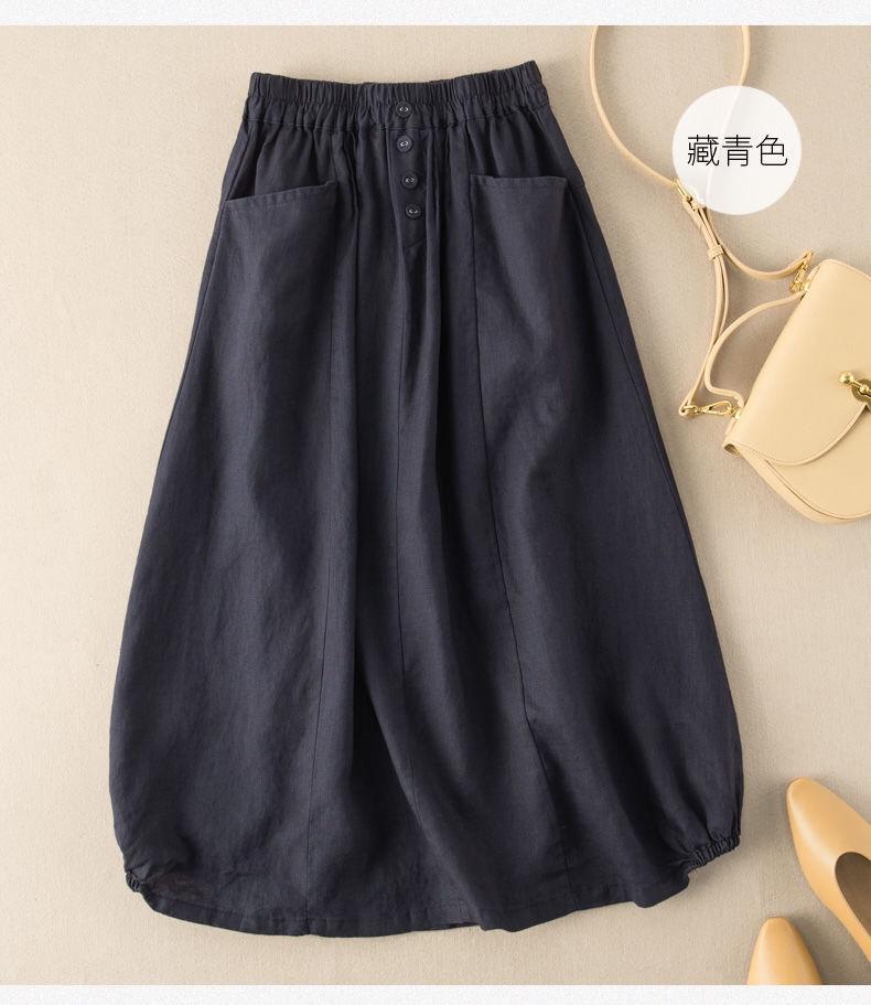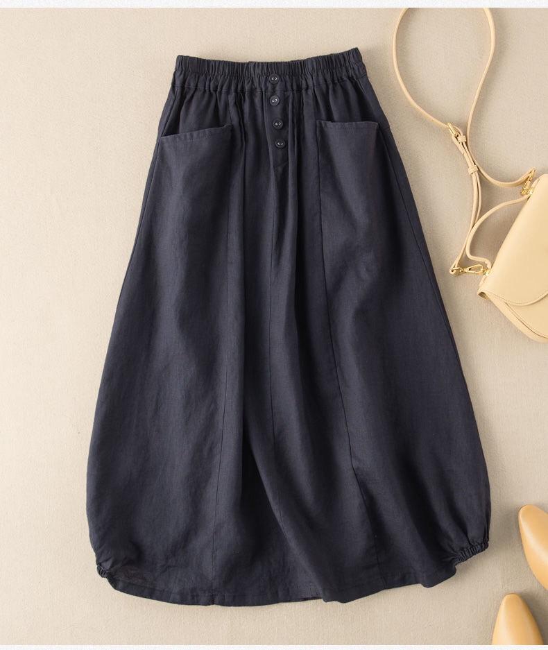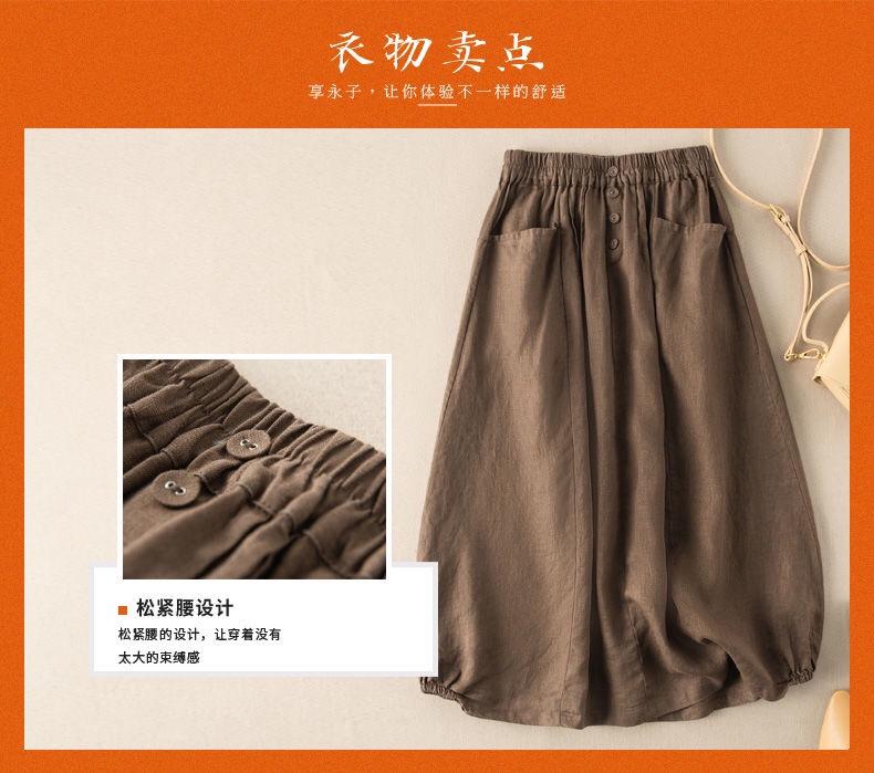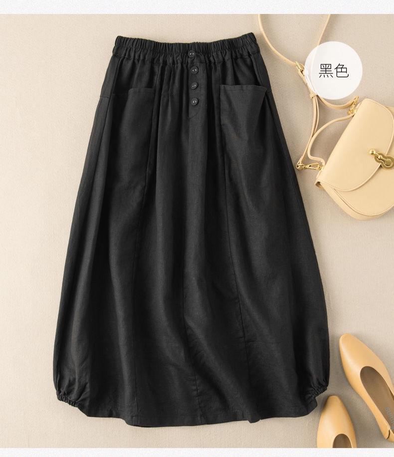 Falda retro de lino de estilo nuevo de verano para mujer de talla grande, falda de verano para mujer de cintura alta de longitud media, línea A, temperamento artístico adelgazante