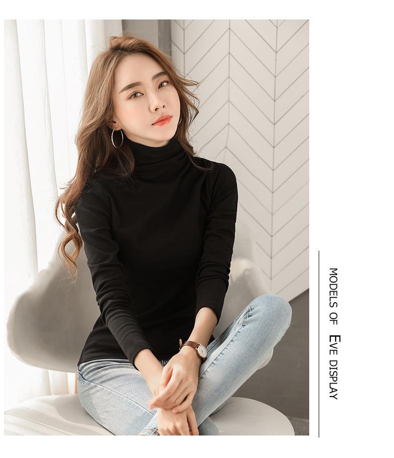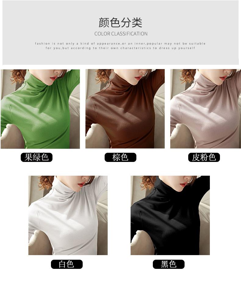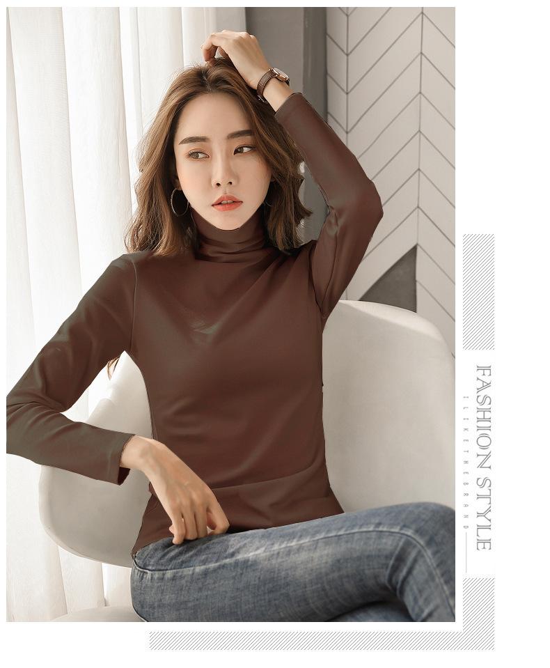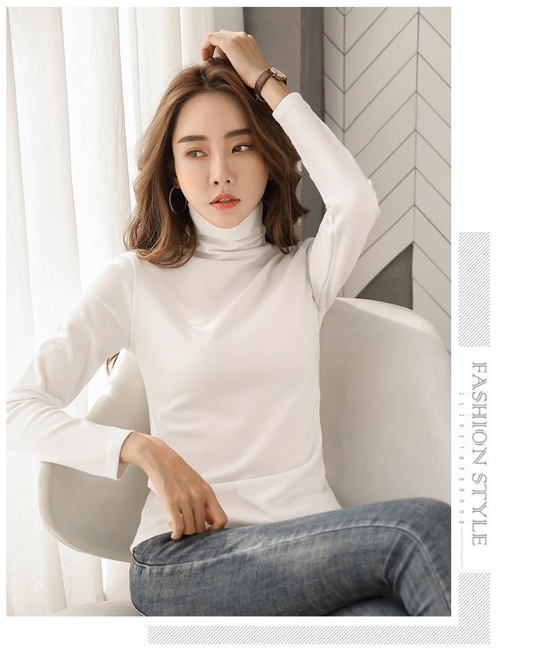 Camisa de cuello alto cálida para mujer, color liso, otoño 2020, nueva camiseta de manga larga ajustada y adelgazante para estudiantes, camisa de moda para mujer