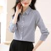 Foto Real de Camisa de Rayas Verticales para Mujer de Manga Larga 2024 Otoño Nueva Elegante Estilo Coreano Top Ajustado Ropa Profesional de Trabajo Camisa