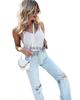 Camisola de algodón ajustada de Amazon, nueva, de primavera y verano, con agujeros, de color blanco liso, para mujer europea y americana.