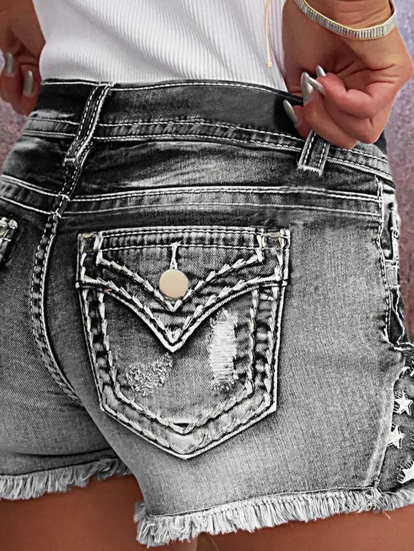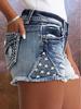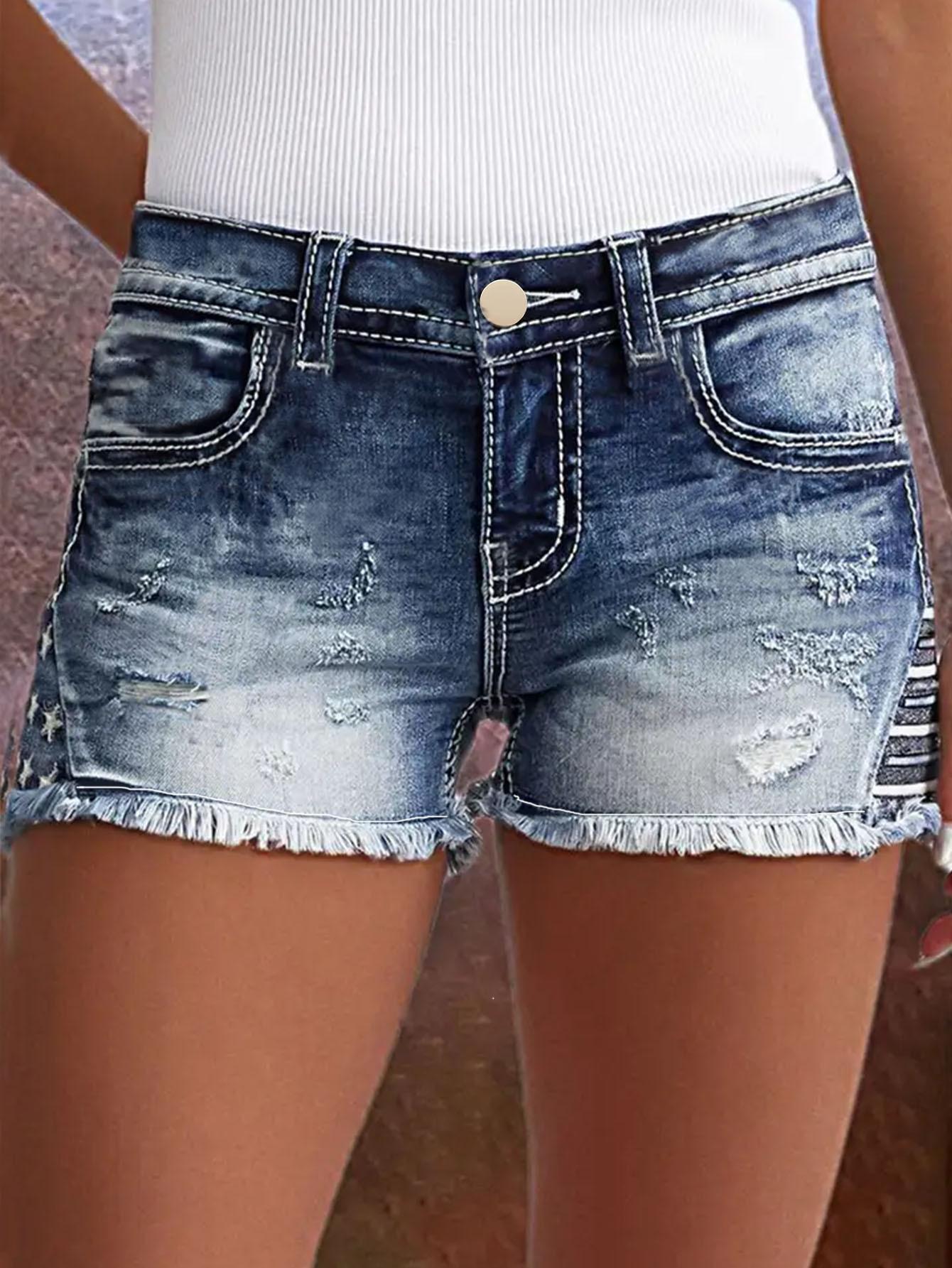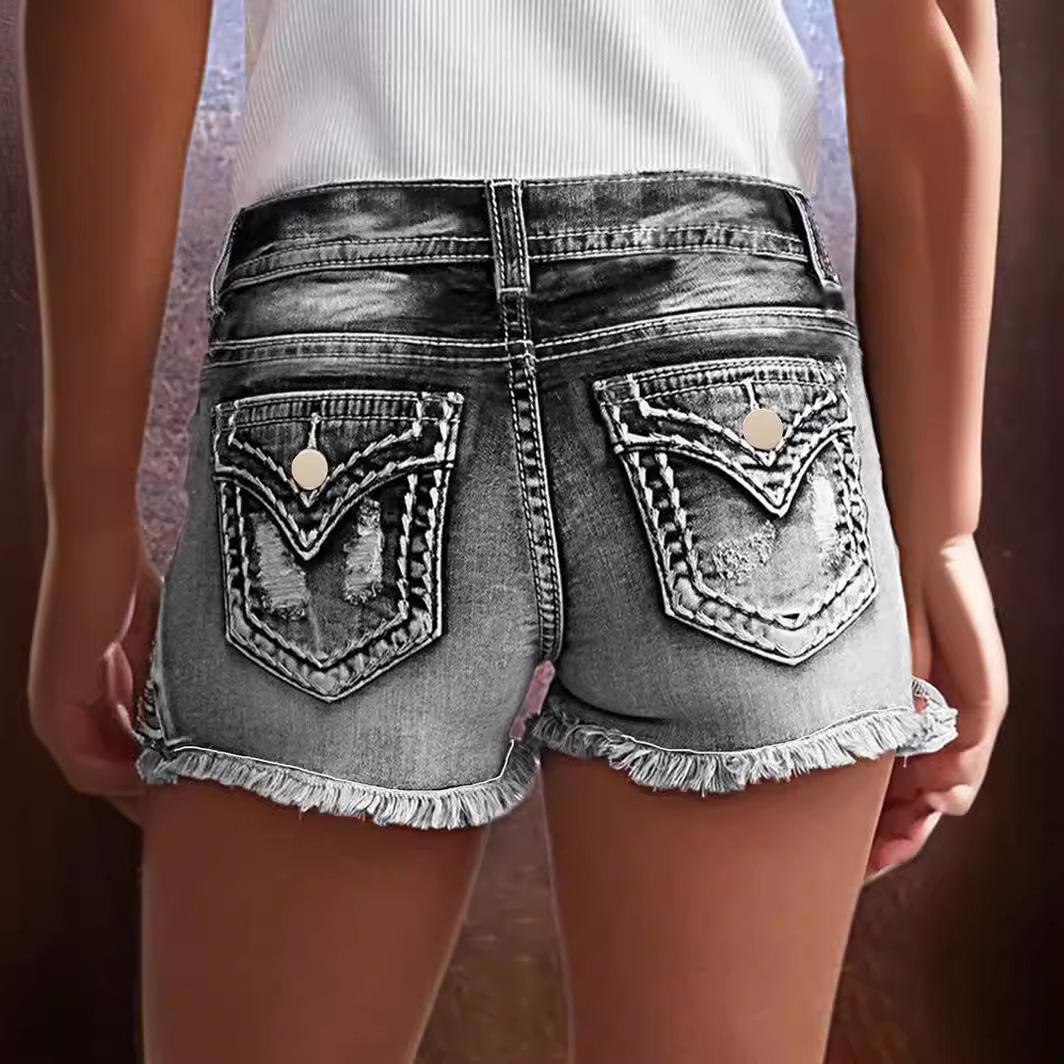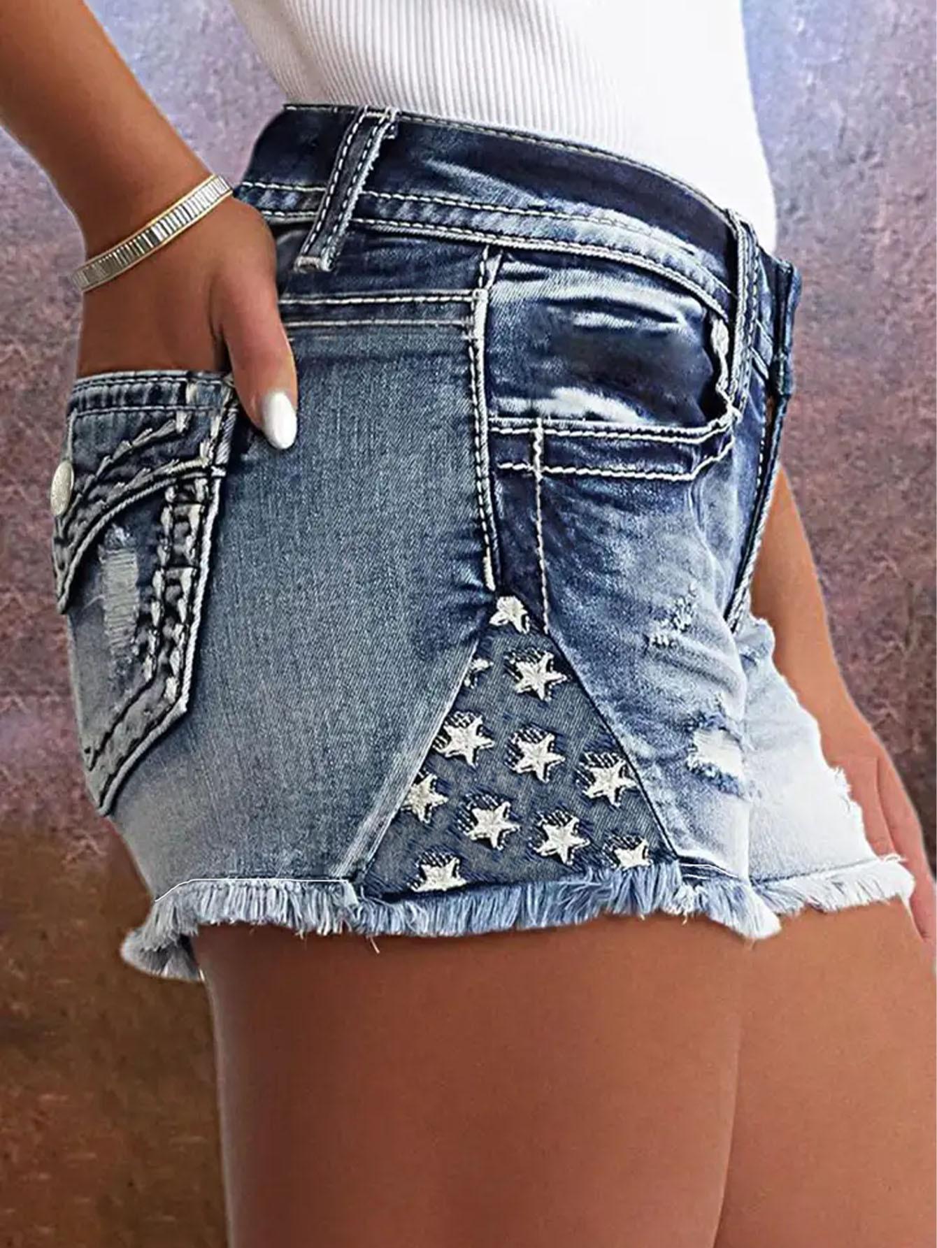 Shorts de mezclilla bordados para mujer Moda europea y americana ins explosión parche elástico Agujero bordado de mezclilla Shorts de mezclilla