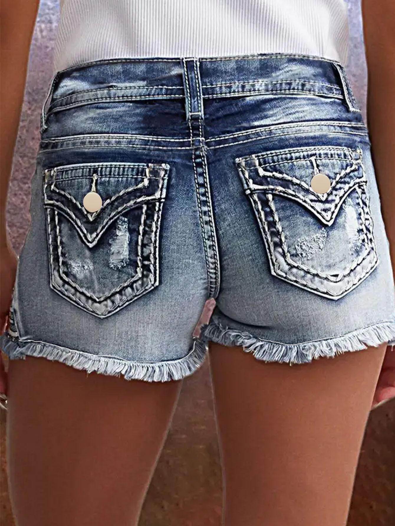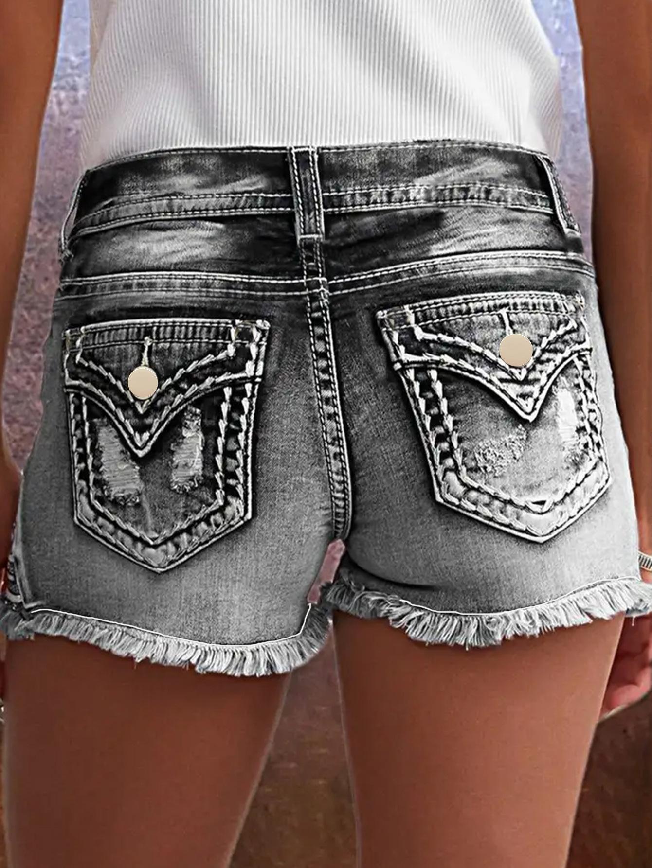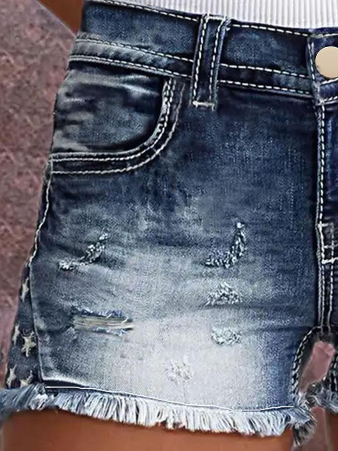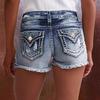 Shorts de mezclilla bordados para mujer Moda europea y americana ins explosión parche elástico Agujero bordado de mezclilla Shorts de mezclilla
