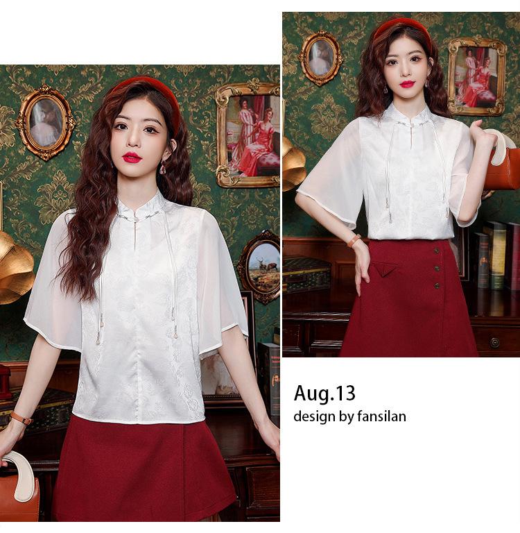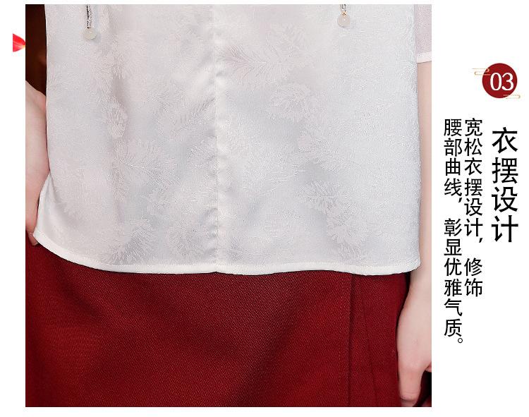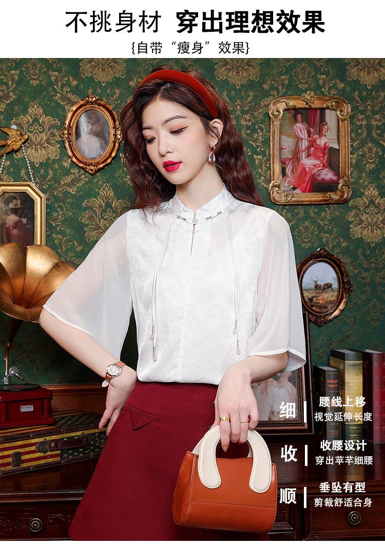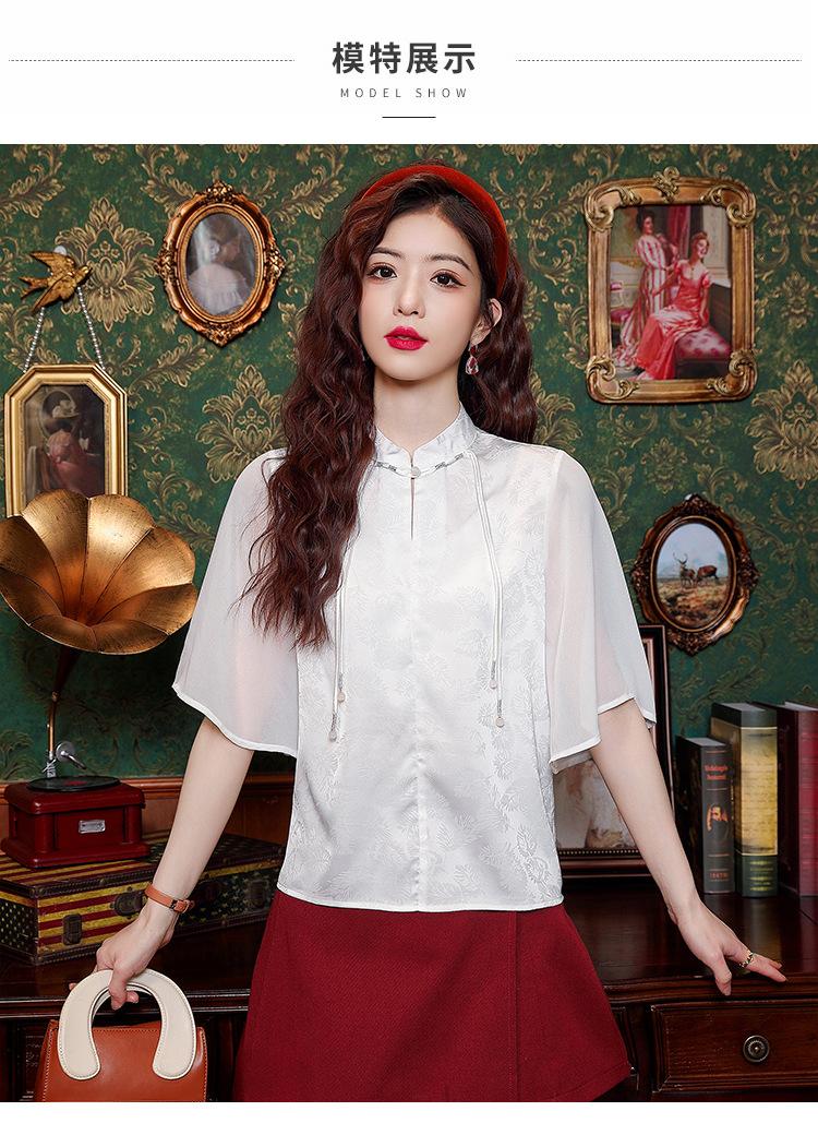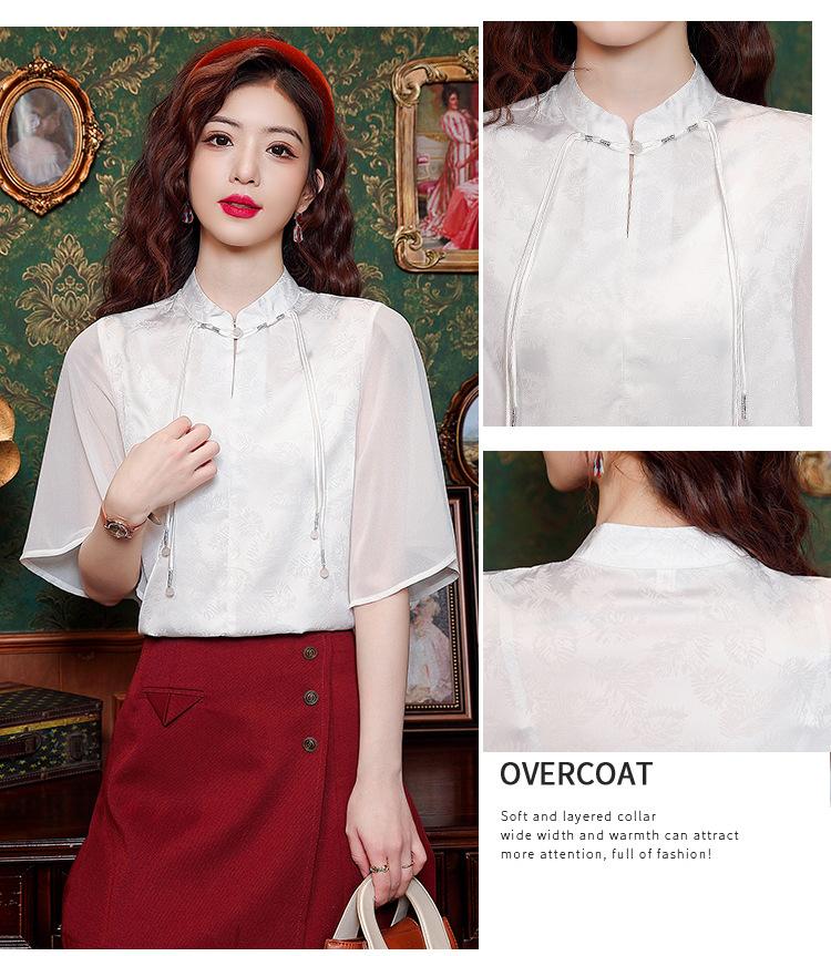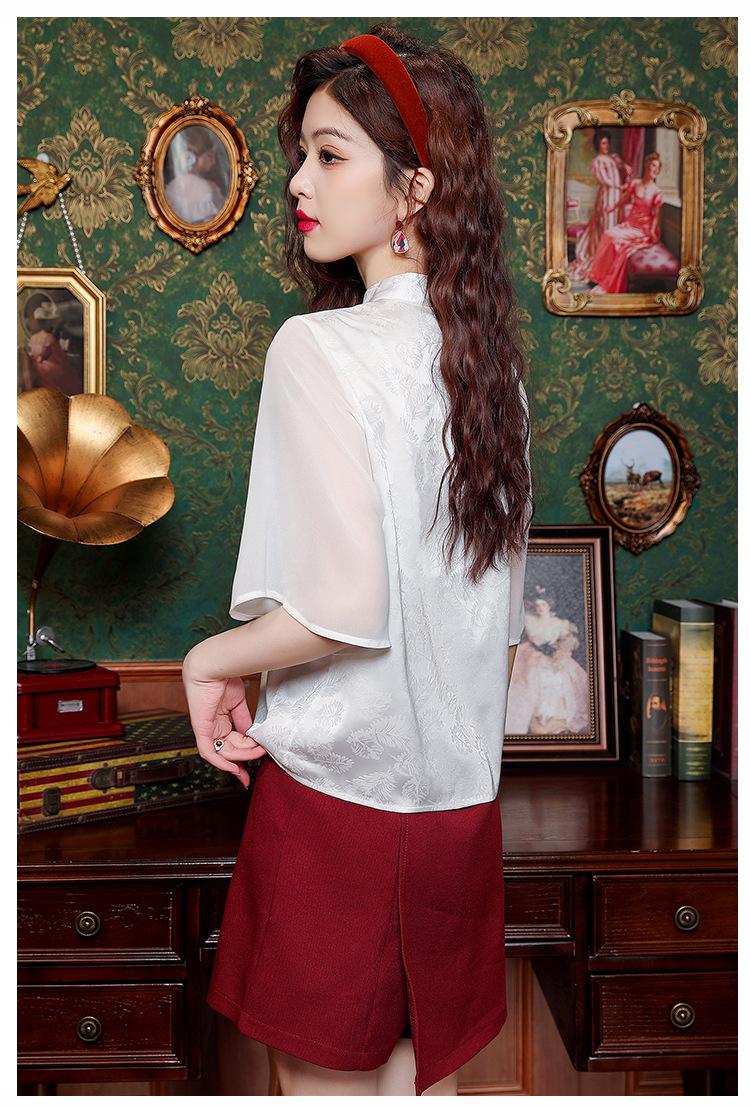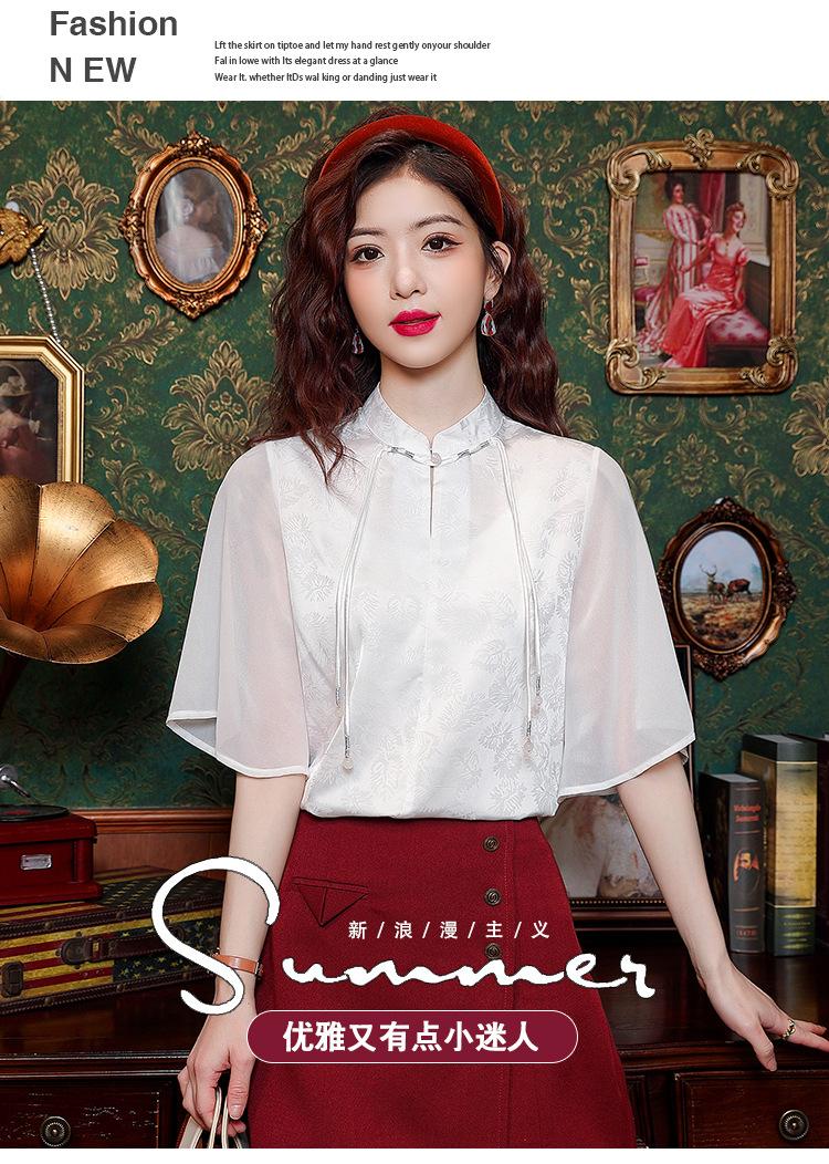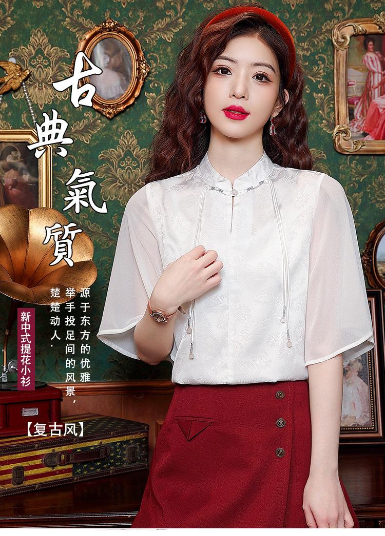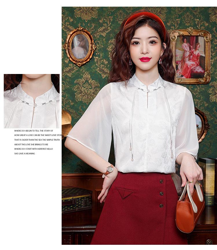 Camisa Blanca de Manga Corta Jacquard Estilo Nacional Estilo Chino Nuevo para Mujer Verano 2024 Nuevo Diseño Top de Media Manga Suelto y Versátil