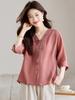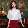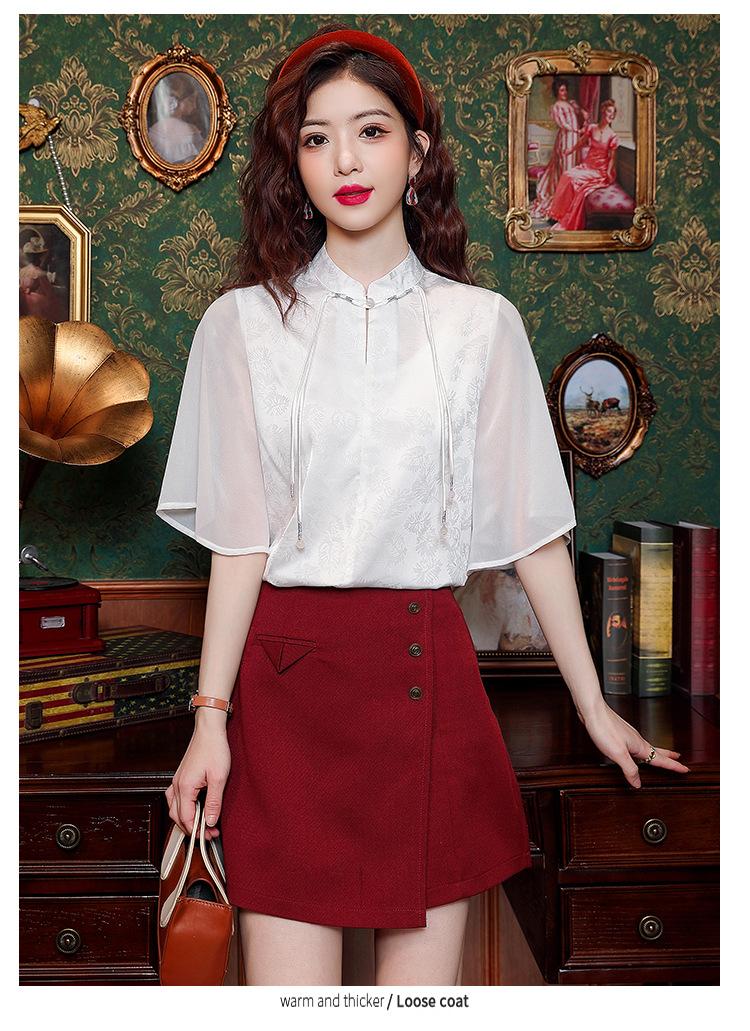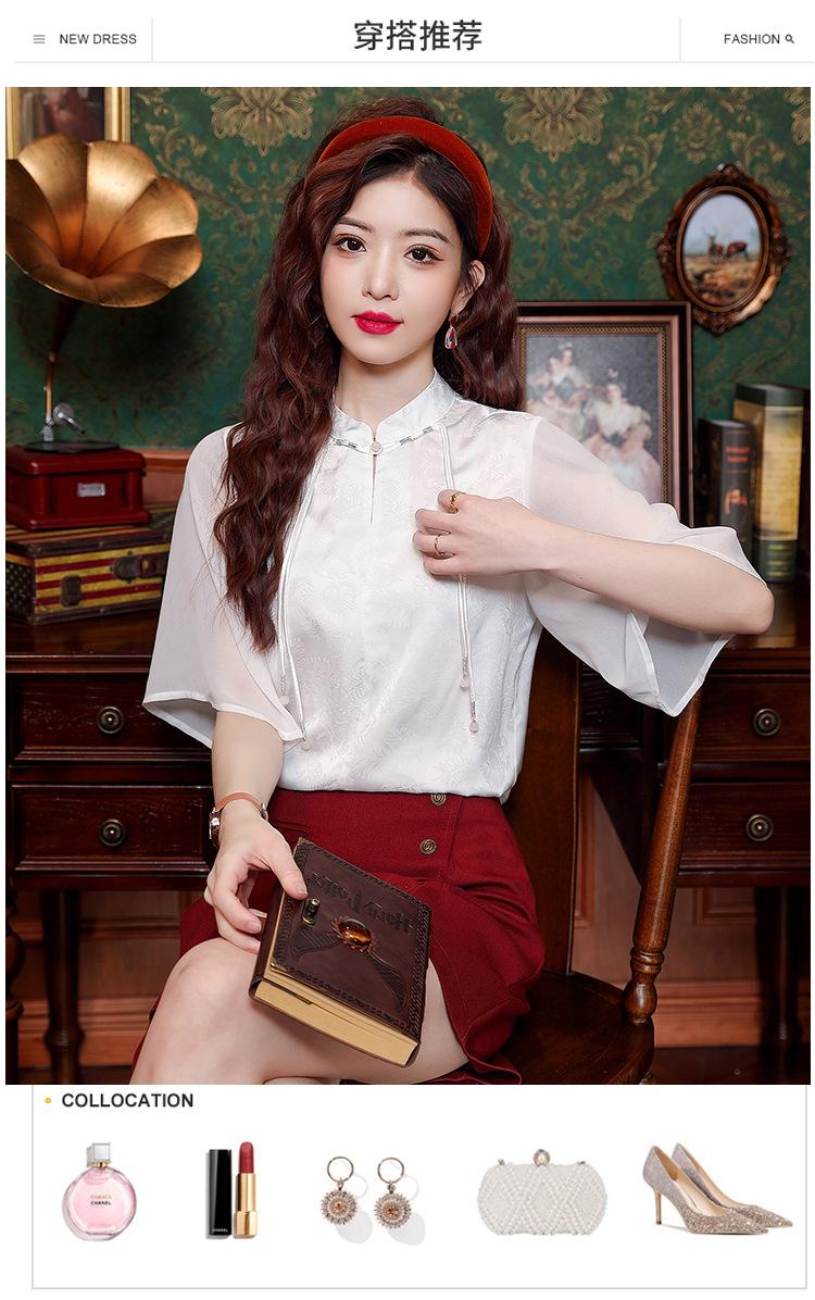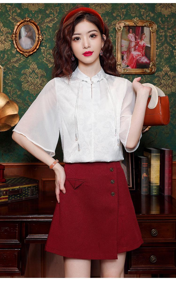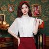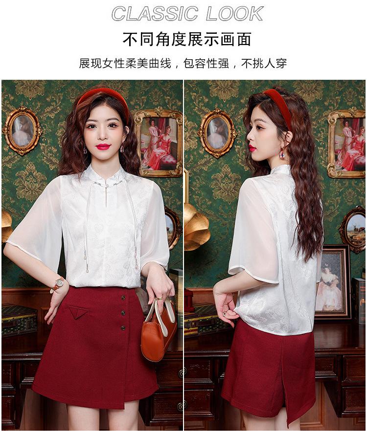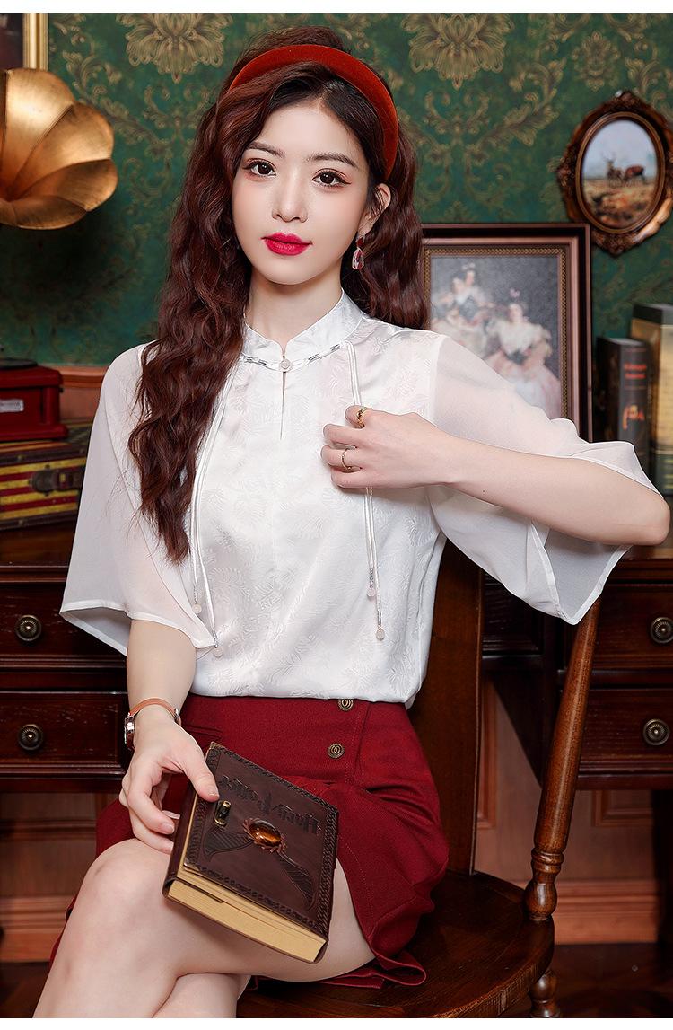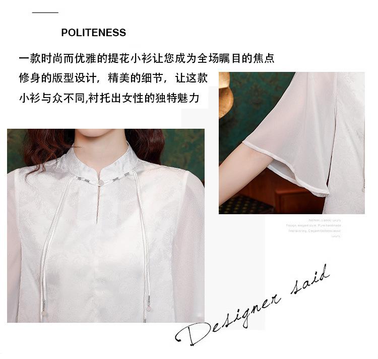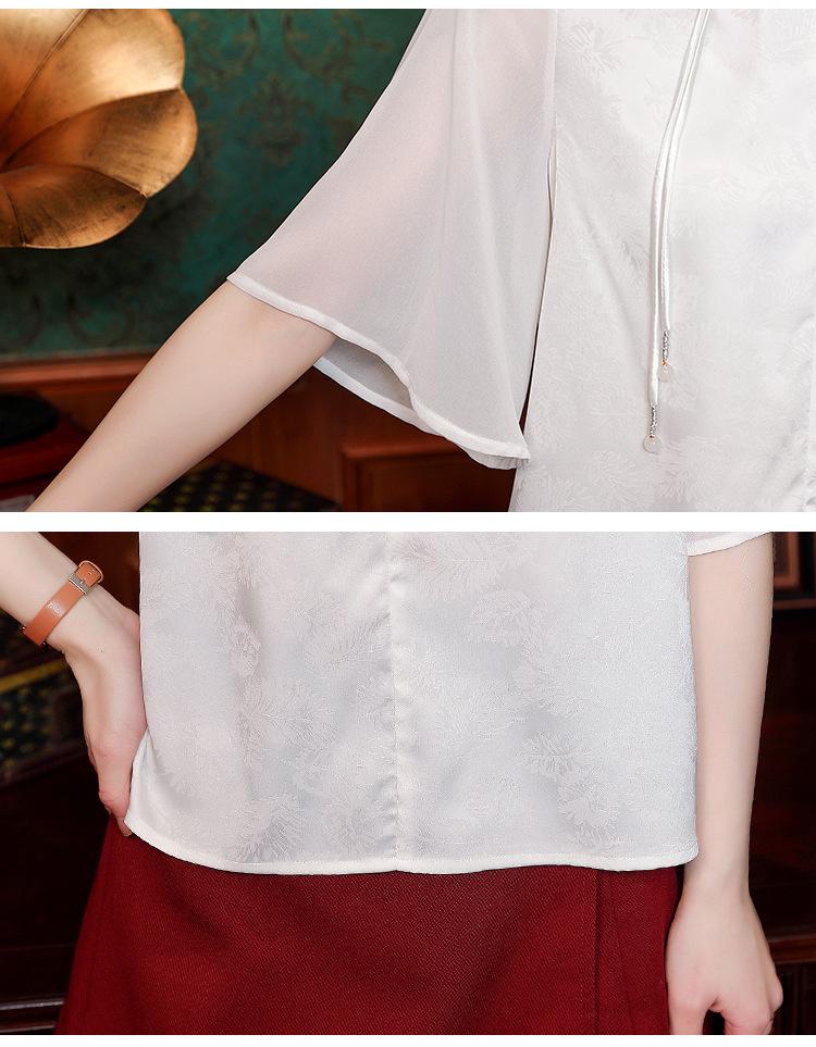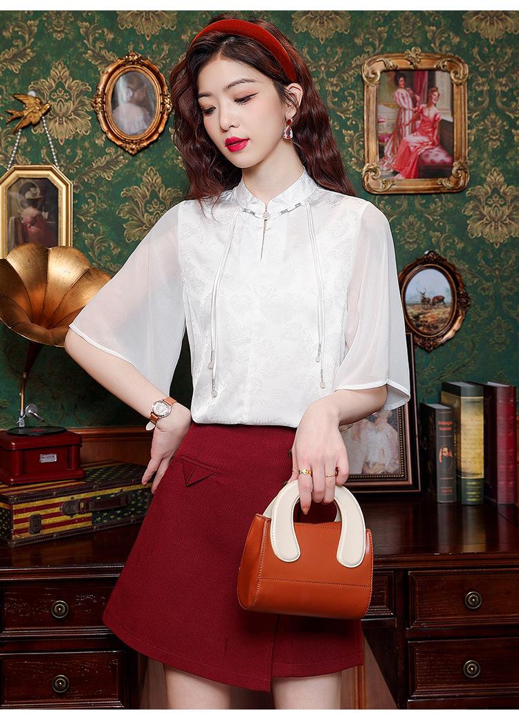 Camisa Blanca de Manga Corta Jacquard Estilo Nacional Estilo Chino Nuevo para Mujer Verano 2024 Nuevo Diseño Top de Media Manga Suelto y Versátil