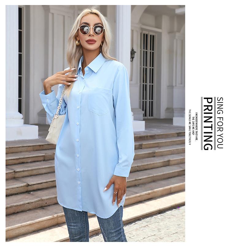 2026 Comercio Exterior Transfronterizo Europeo y Americano Ropa de Mujer Otoño Nuevo Estilo Amazon Camisa de Manga Larga Casual Elegante de Color Sólido para Mujer