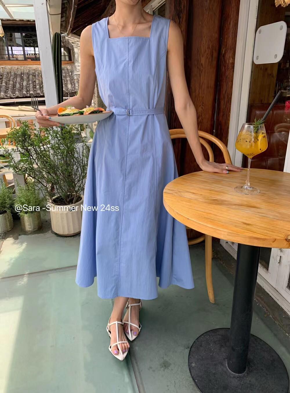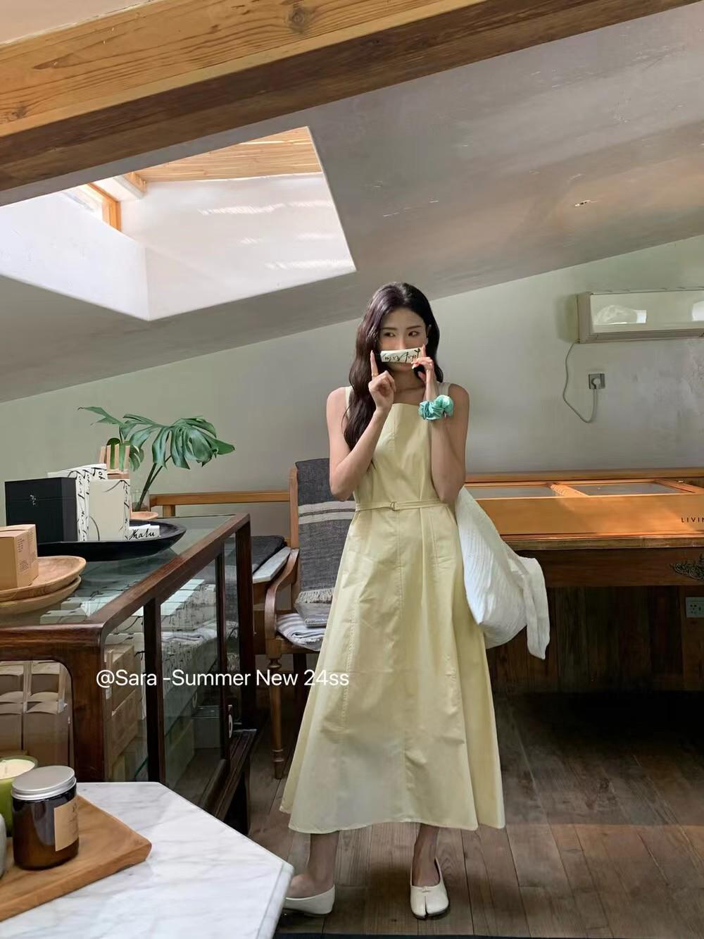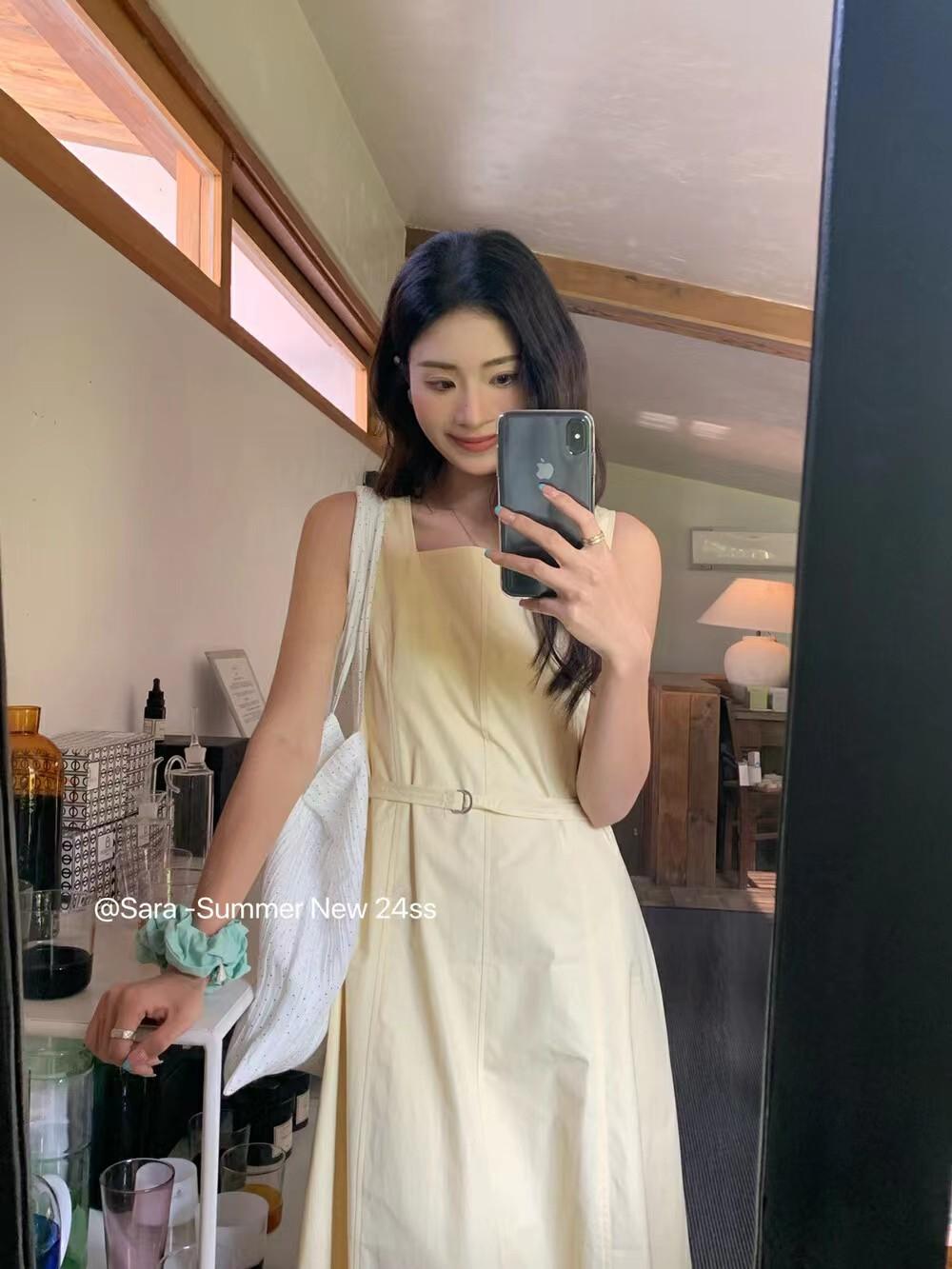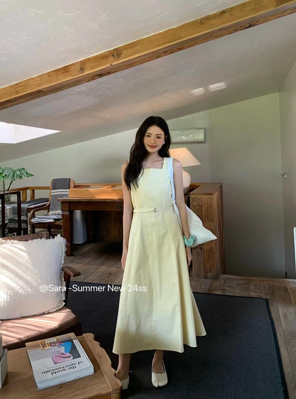 Sin Devoluciones ni Cambios) Kaiyushang Lsaraj Verano Francés Simple y Elegante Vestido Chaleco con Cuello Cuadrado (con cuerda para la cintura