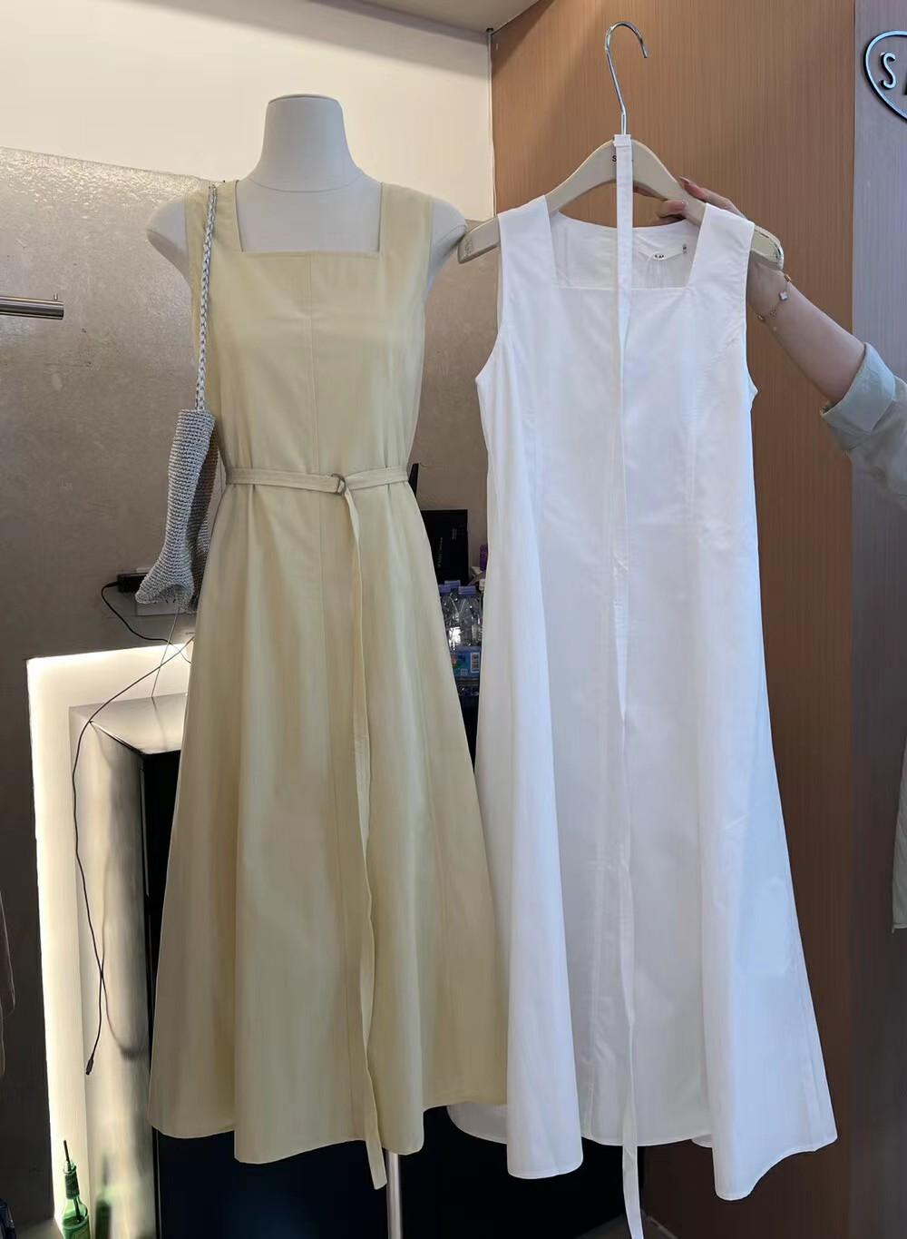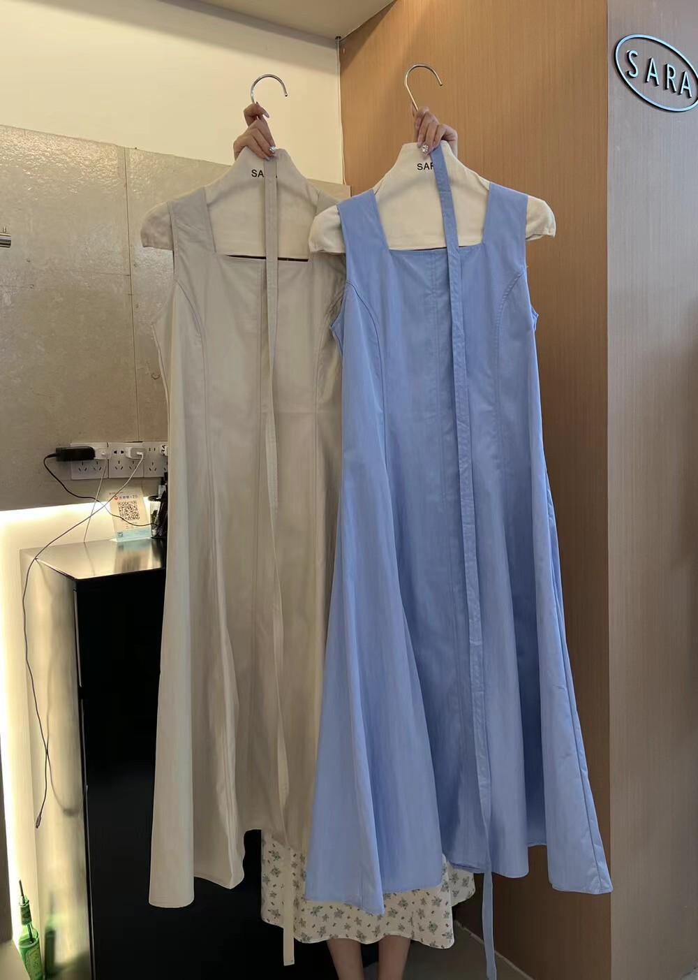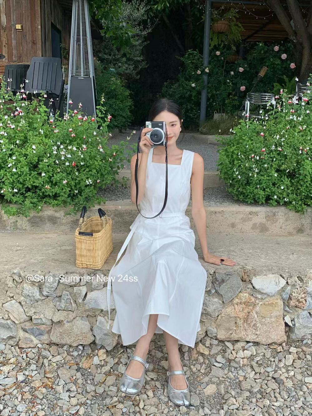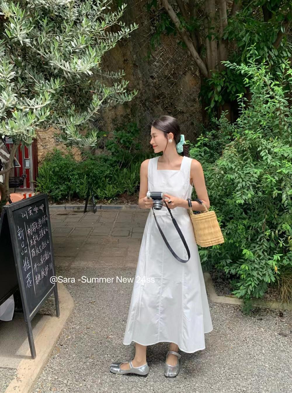 Sin Devoluciones ni Cambios) Kaiyushang Lsaraj Verano Francés Simple y Elegante Vestido Chaleco con Cuello Cuadrado (con cuerda para la cintura