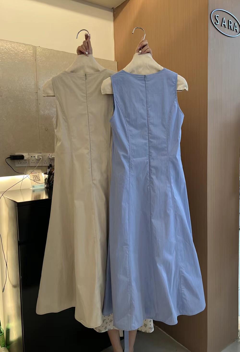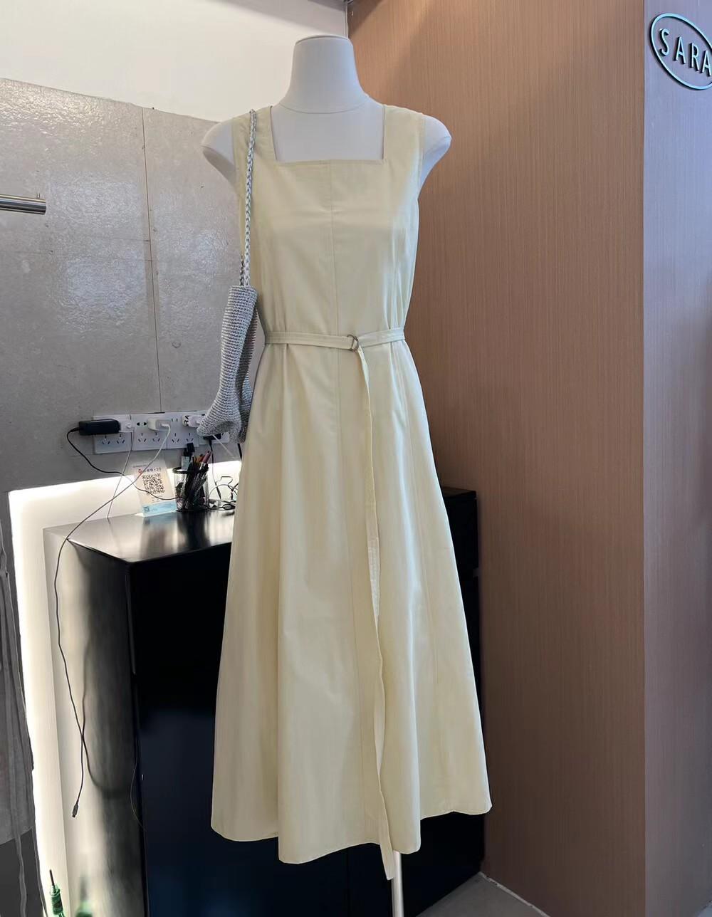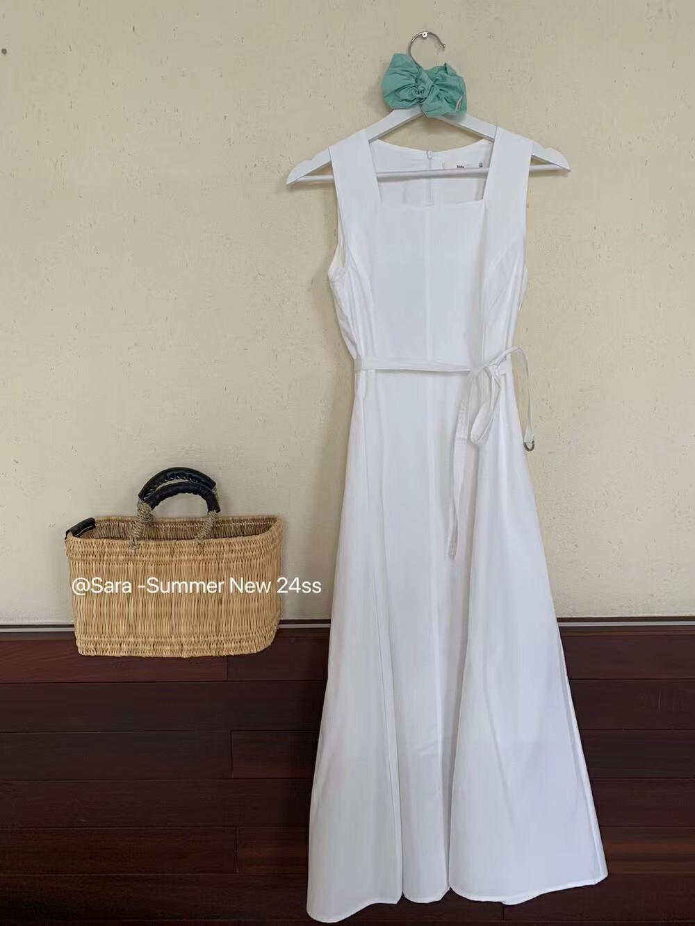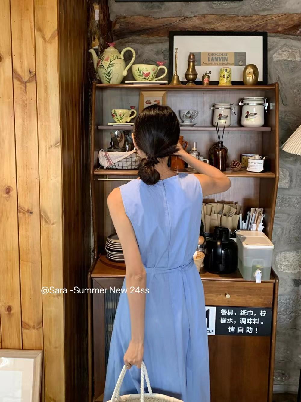 Sin Devoluciones ni Cambios) Kaiyushang Lsaraj Verano Francés Simple y Elegante Vestido Chaleco con Cuello Cuadrado (con cuerda para la cintura