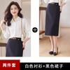 White long sleeve shirt +7015 black skirt