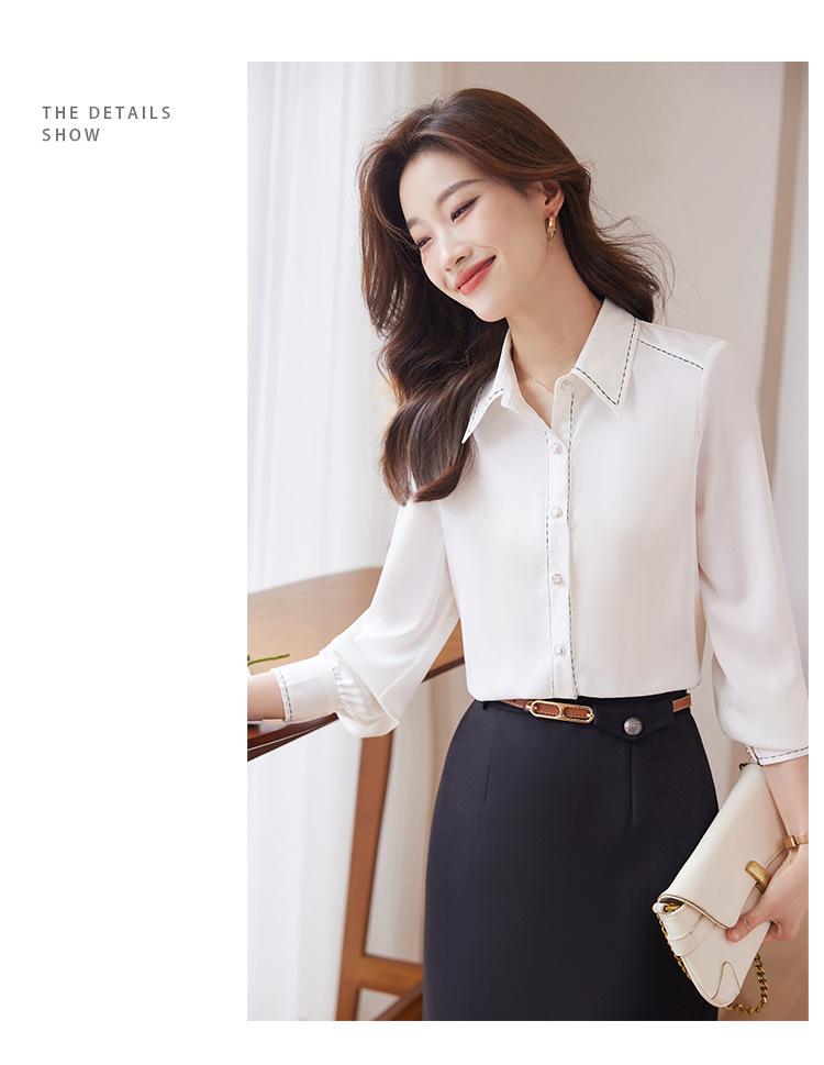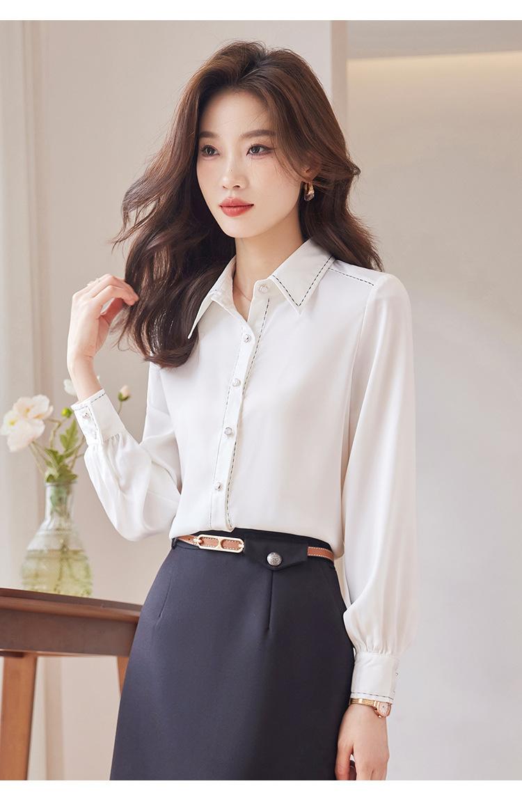 Camisa blanca de mujer Sense 2023 Primavera y otoño Nueva gasa de manga larga Top Camisa profesional de mujer Pequeña antiarrugas