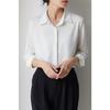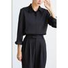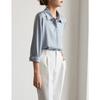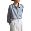 Camisa de Manga Larga de Satén Azul Niebla Nueva de Principios de Otoño 2024 Diseño para Desplazamientos de Mujer Nicho Ligero Maduro Caída Camisa