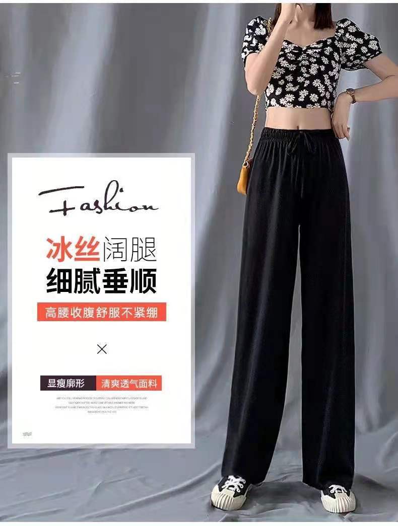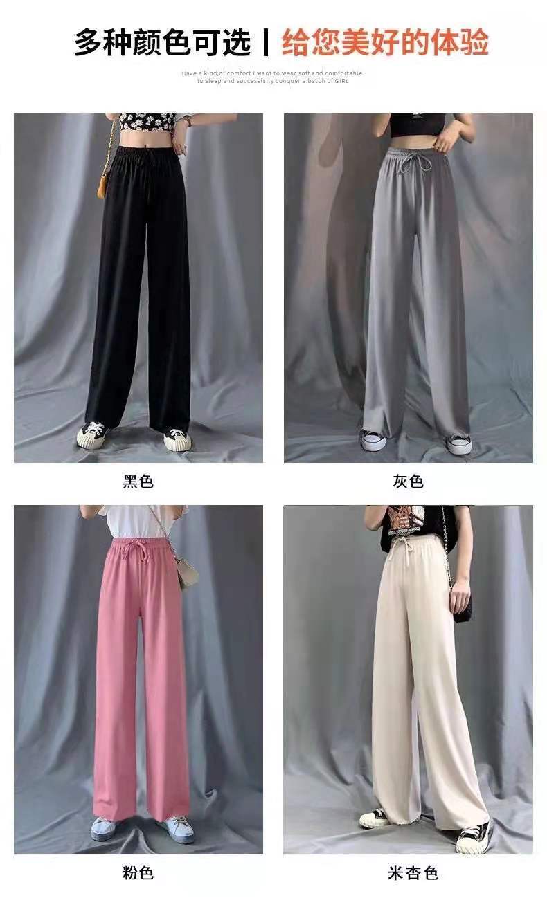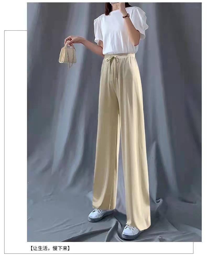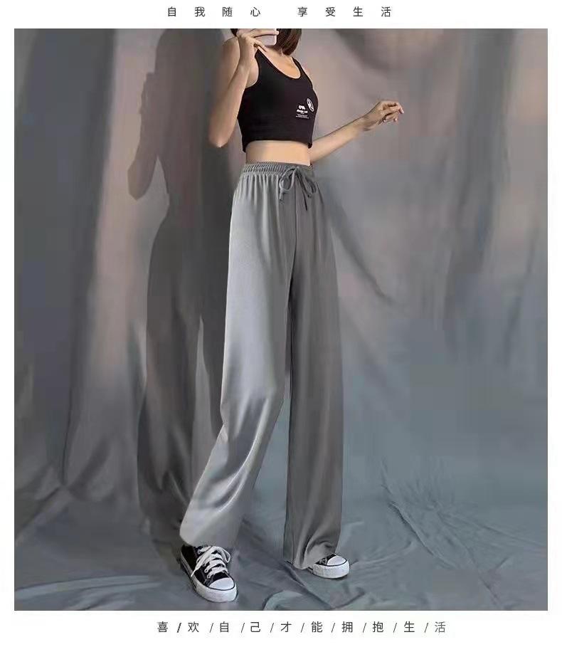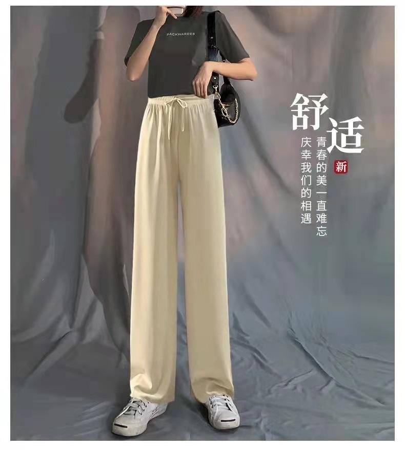 Pantalones anchos con colgante de seda de hielo para mujer, primavera y verano, nuevos pantalones casuales adelgazantes de cintura alta, pantalones rectos sueltos para estudiantes.
