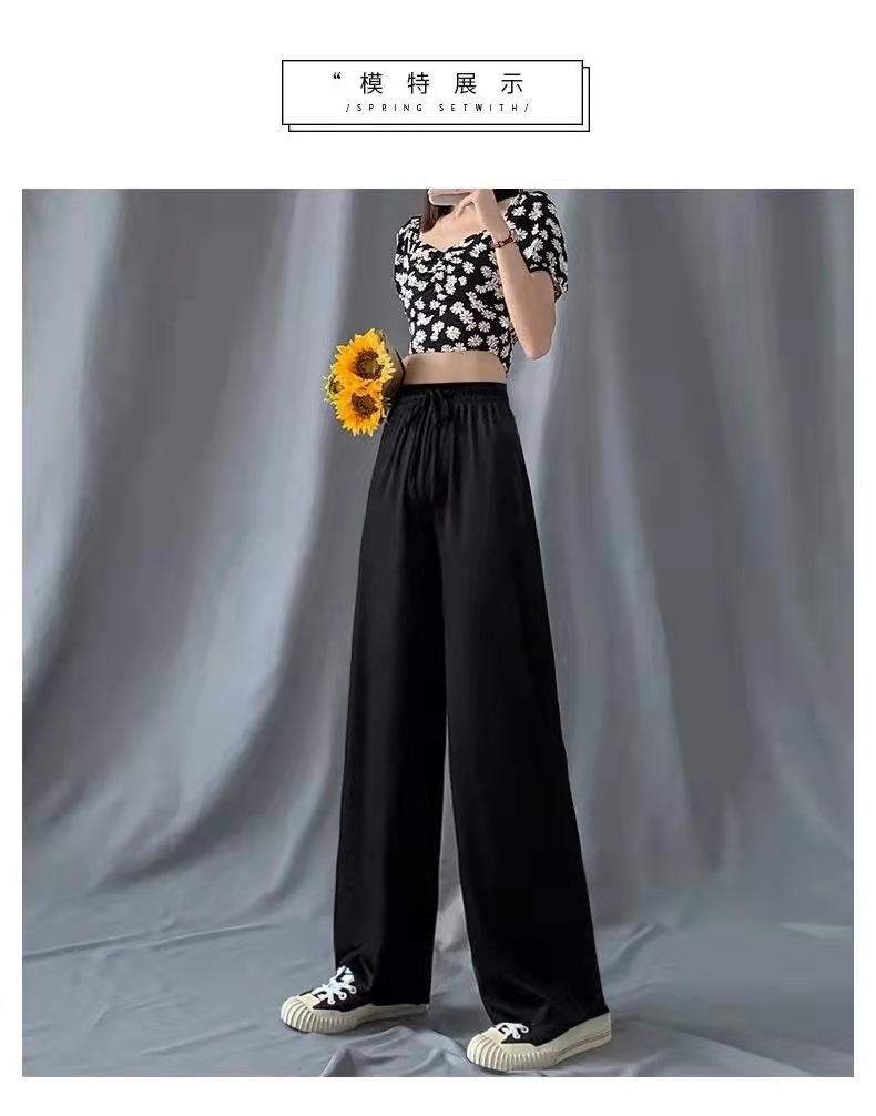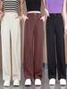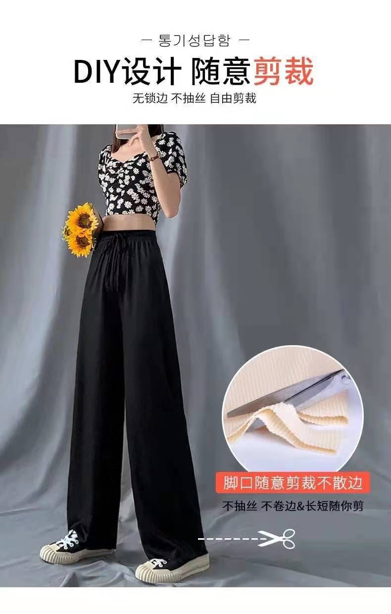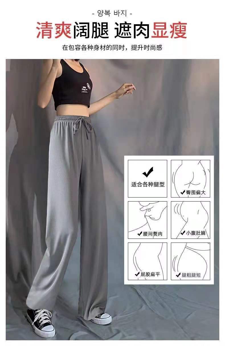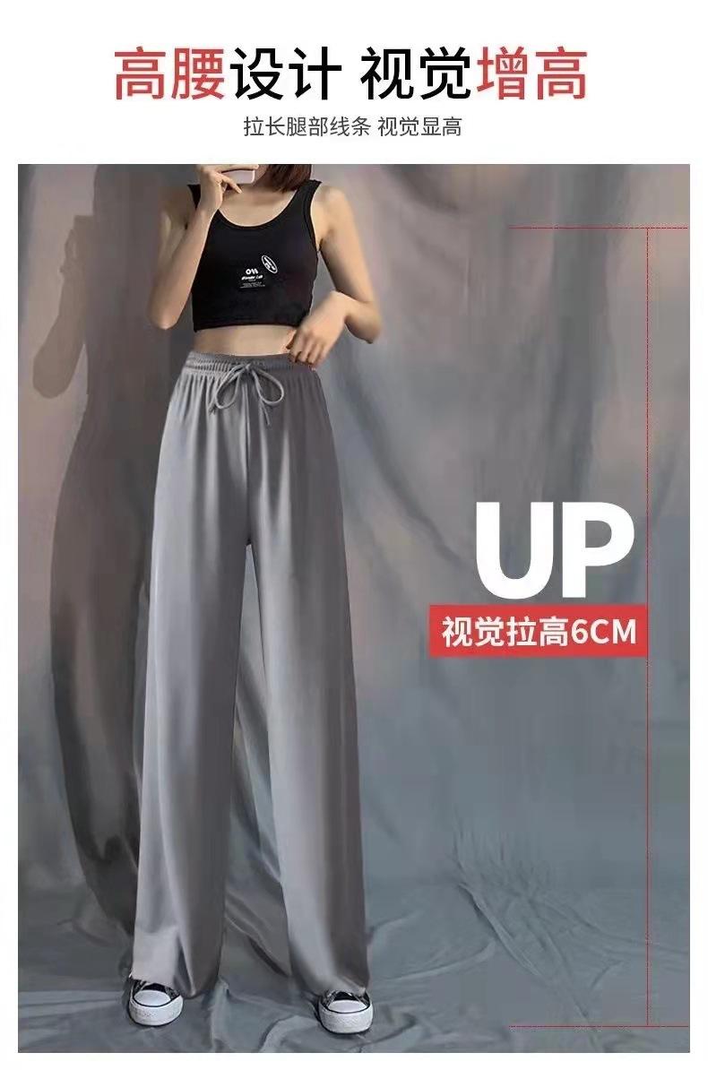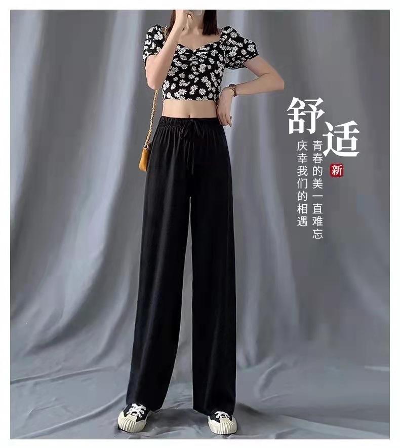 Pantalones anchos con colgante de seda de hielo para mujer, primavera y verano, nuevos pantalones casuales adelgazantes de cintura alta, pantalones rectos sueltos para estudiantes.