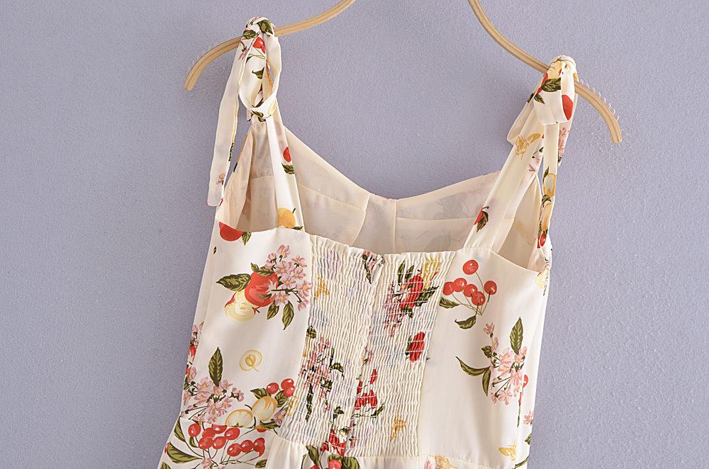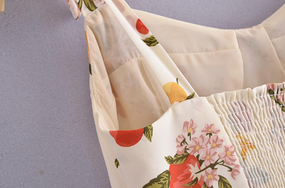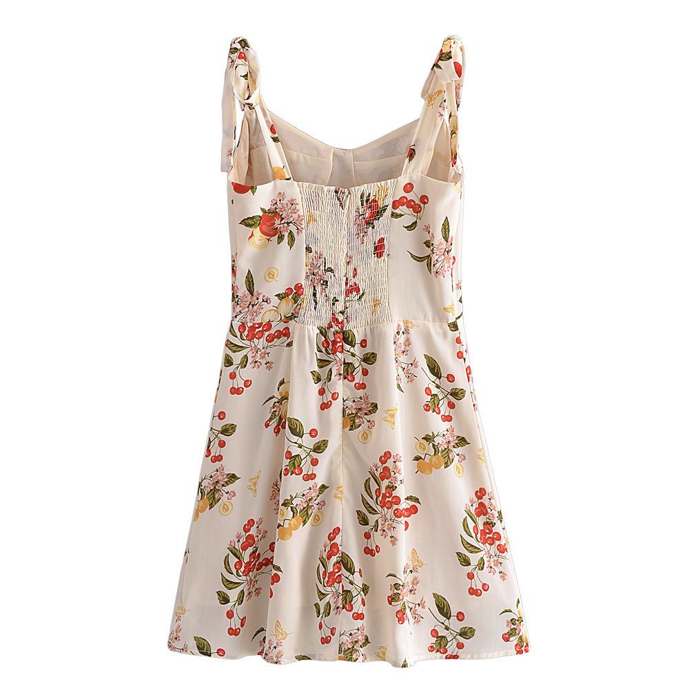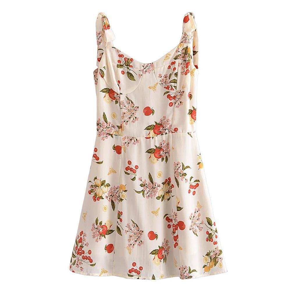 Vestido ajustado con estampado floral estilo francés, sexy, con tirantes finos y lazo, novedad de verano de 2023.