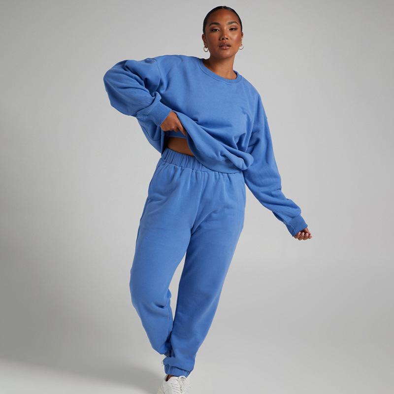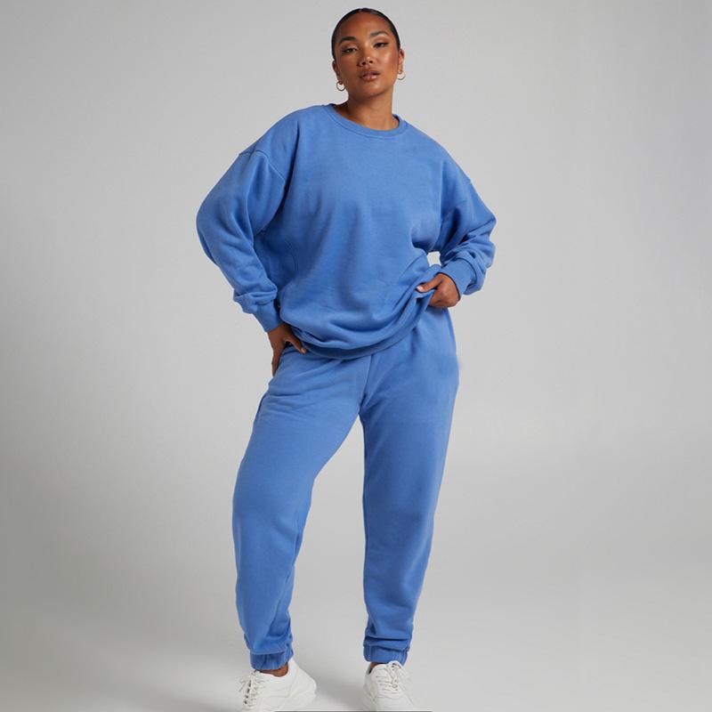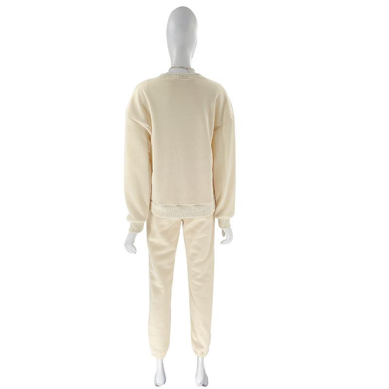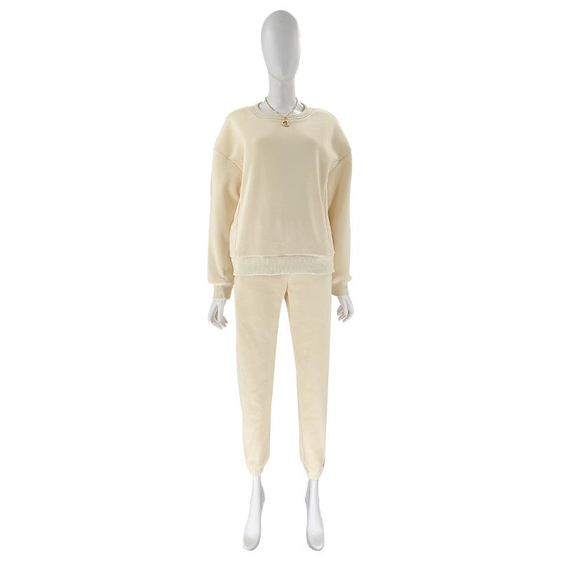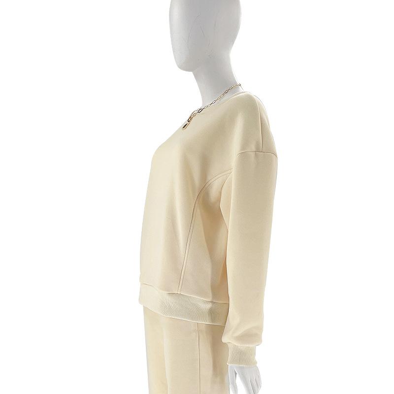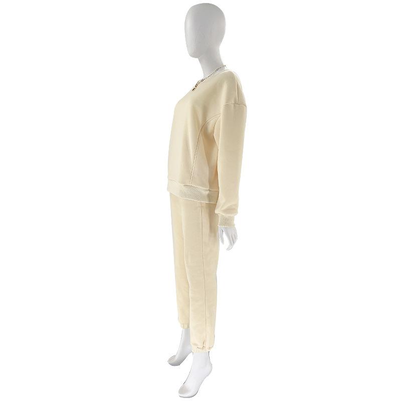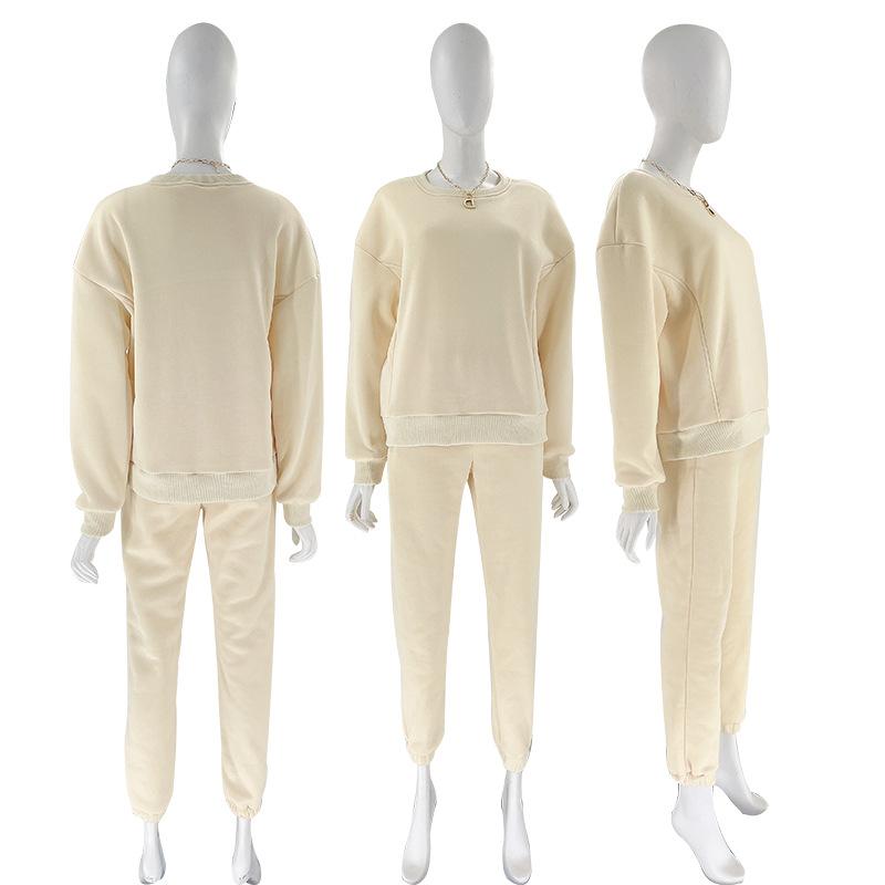 Suéter de manga larga de color sólido nuevo de otoño e invierno transfronterizo europeo y americano, ropa de mujer, traje de dos piezas, traje de pantalón informal de moda |