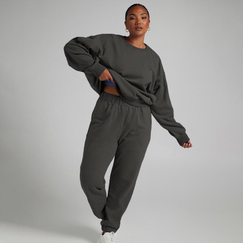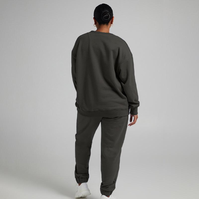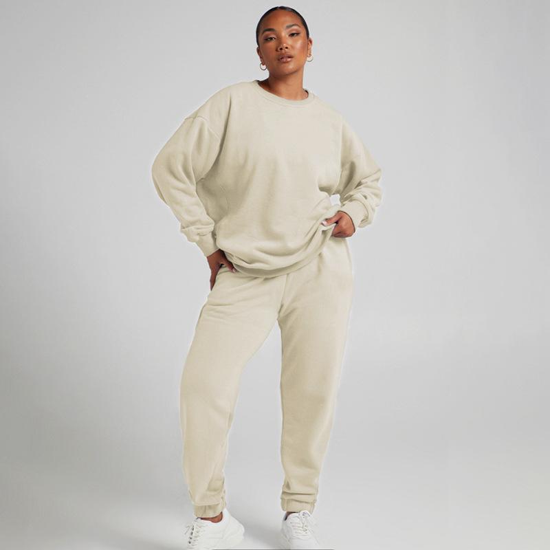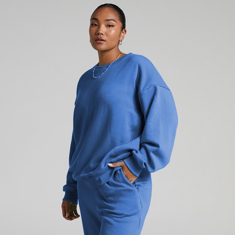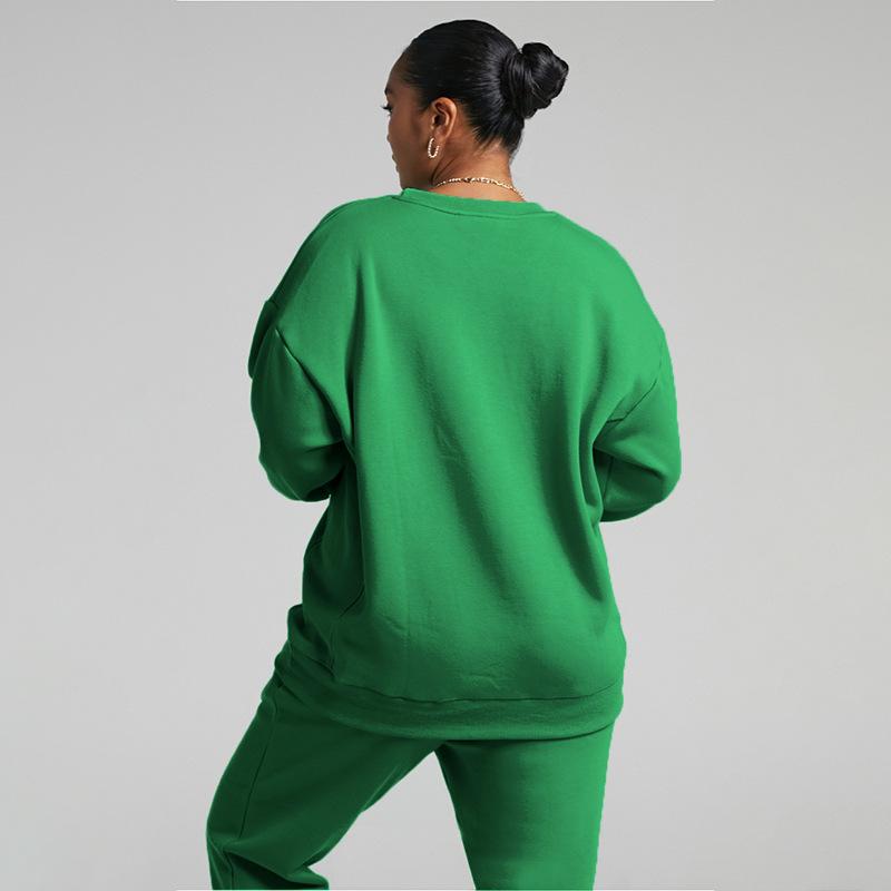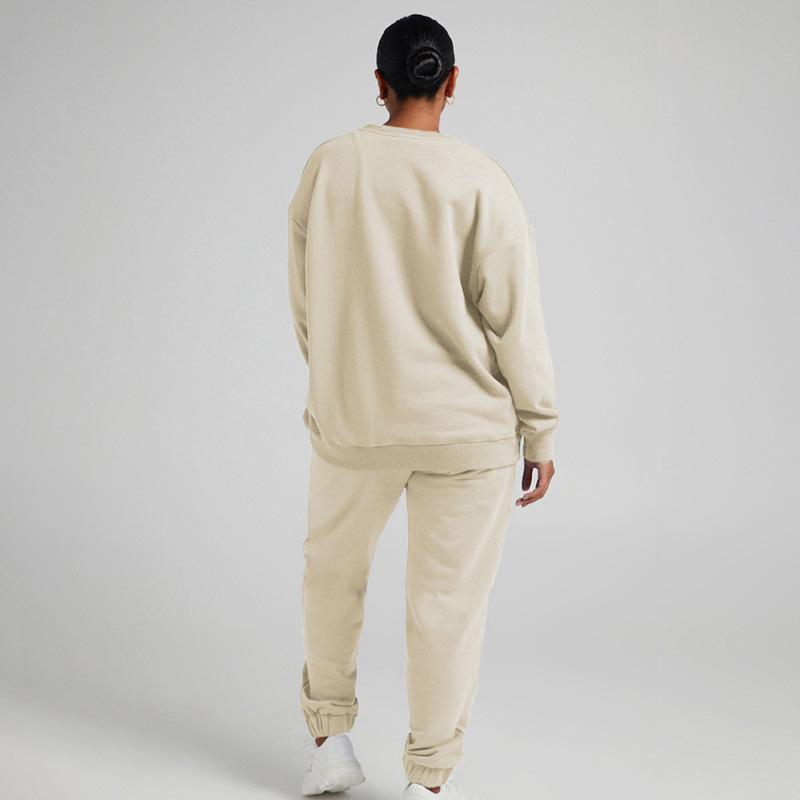 Suéter de manga larga de color sólido nuevo de otoño e invierno transfronterizo europeo y americano, ropa de mujer, traje de dos piezas, traje de pantalón informal de moda |