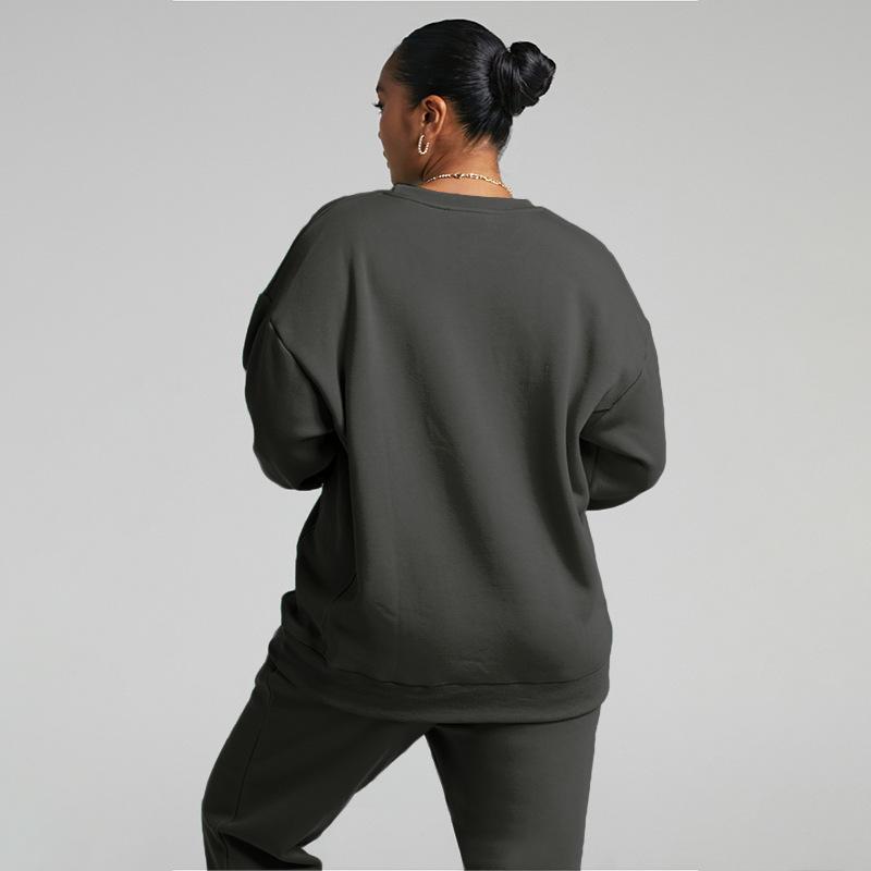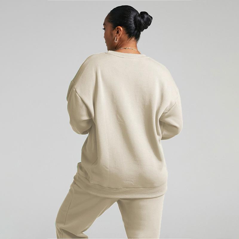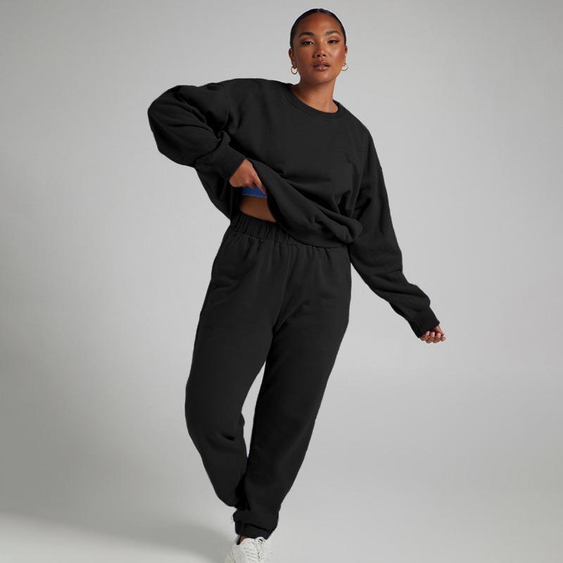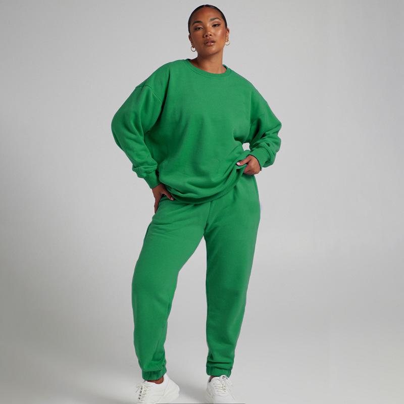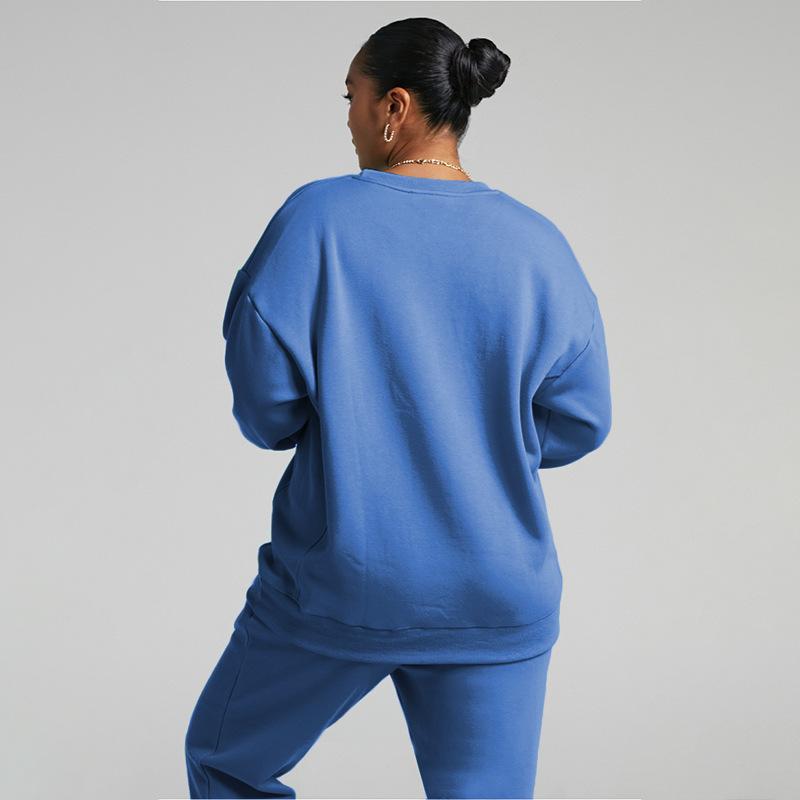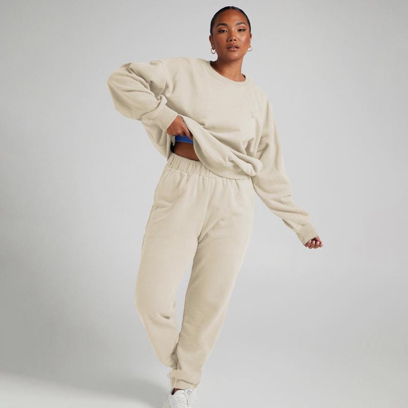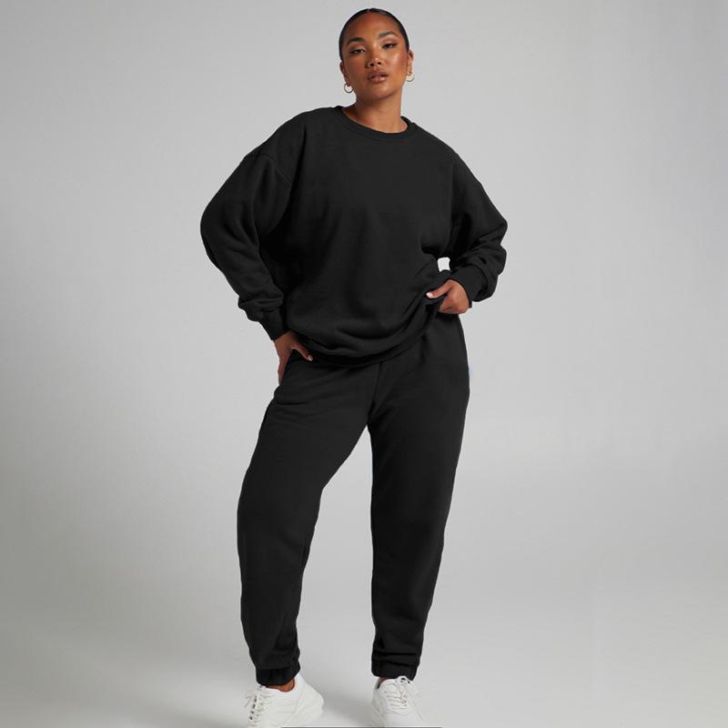 Suéter de manga larga de color sólido nuevo de otoño e invierno transfronterizo europeo y americano, ropa de mujer, traje de dos piezas, traje de pantalón informal de moda |