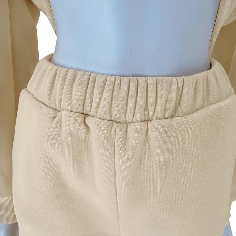 Sudadera de manga larga de color sólido para mujer, traje corto de dos piezas, pantalones cortos casuales de moda, otoño e invierno, transfronterizos, europeos y americanos |