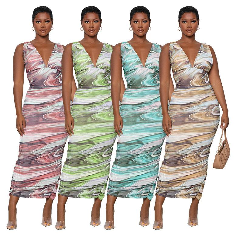 Vestido holgado estilo jersey urbano de verano para mujer, sin mangas, con cuello en V y estampado de rayas de Amazon, estilo europeo y americano transfronterizo |