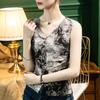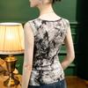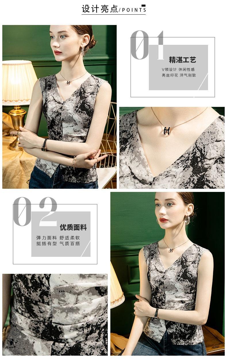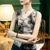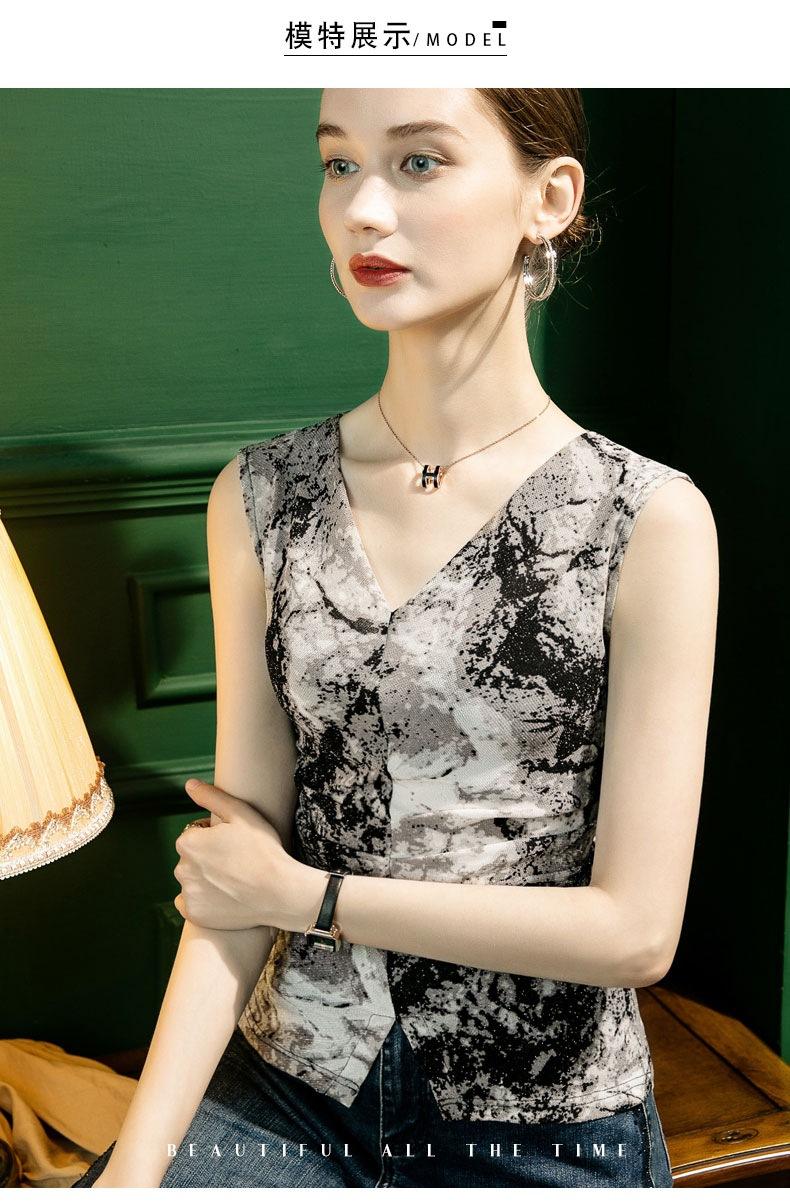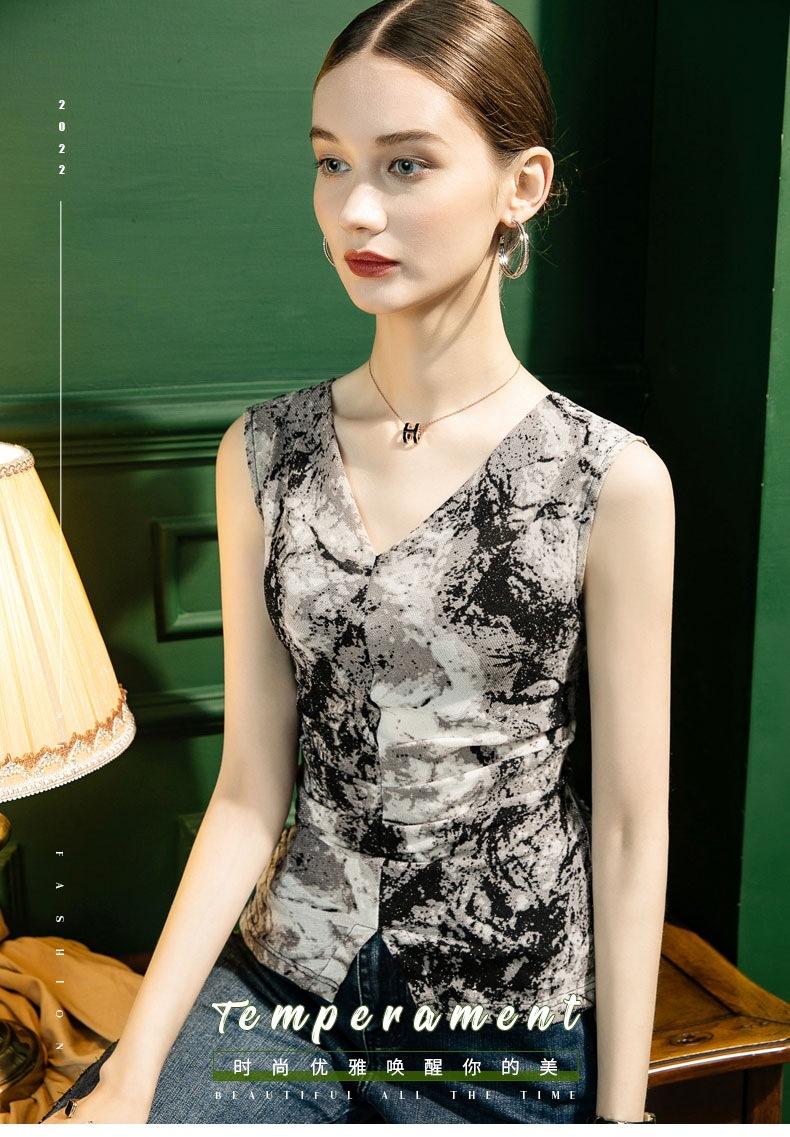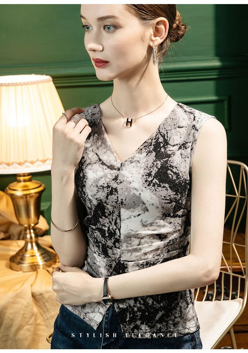 Compra Camiseta de cuello en V con estampado de seda brillante para mujer, sin mangas, ajustada, con diseño interior de nicho, nueva camiseta de otoño 2022 al por mayor en Joom.pro