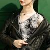 Camiseta de cuello en V con estampado de seda brillante para mujer, sin mangas, ajustada, con diseño interior de nicho, nueva camiseta de otoño 2022